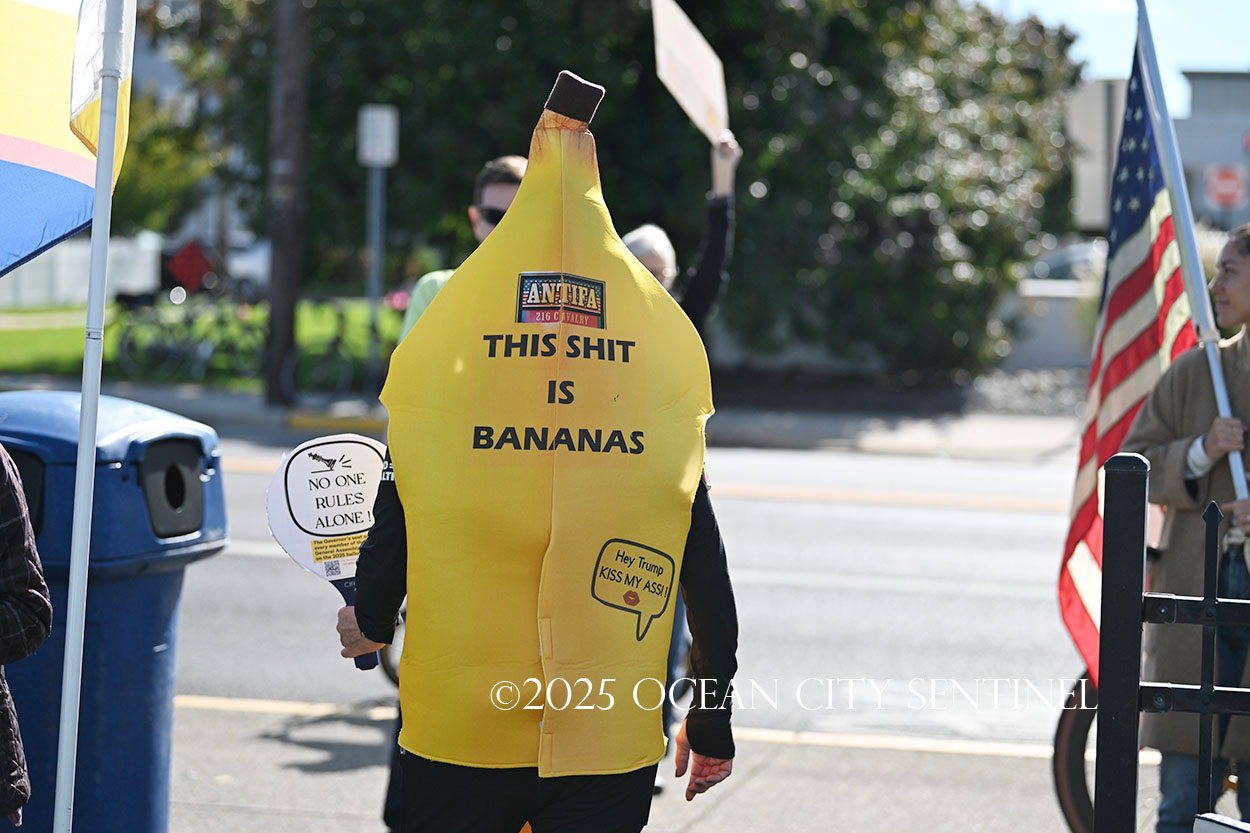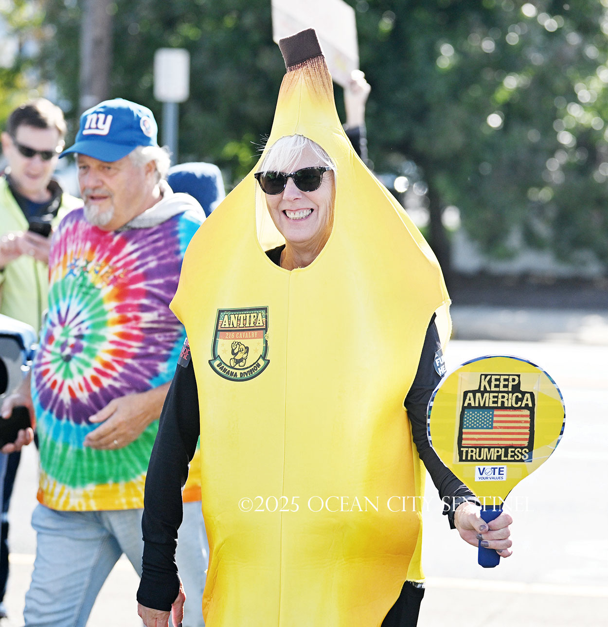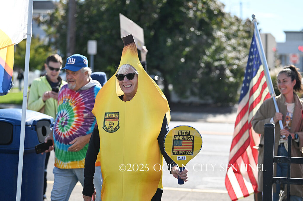 Joanne Leahy from Lanoka Harbor was dressed as a banana, motivated to attend the protest by “everything that Trump is doing, every word, every lie out of his mouth.”