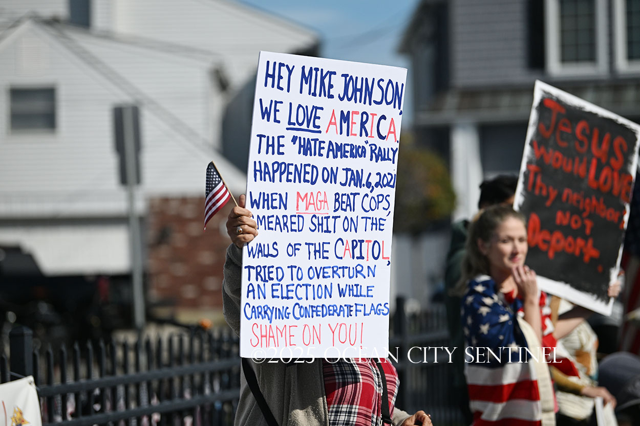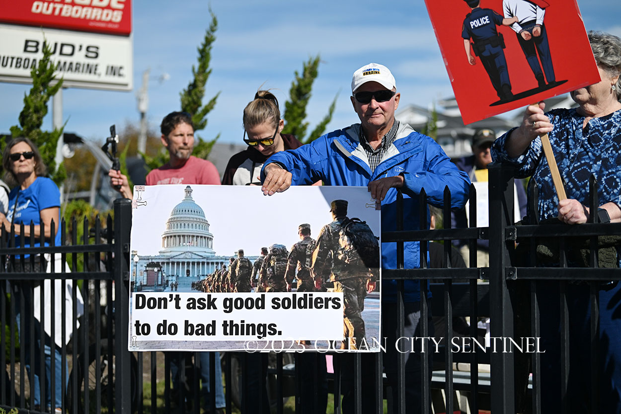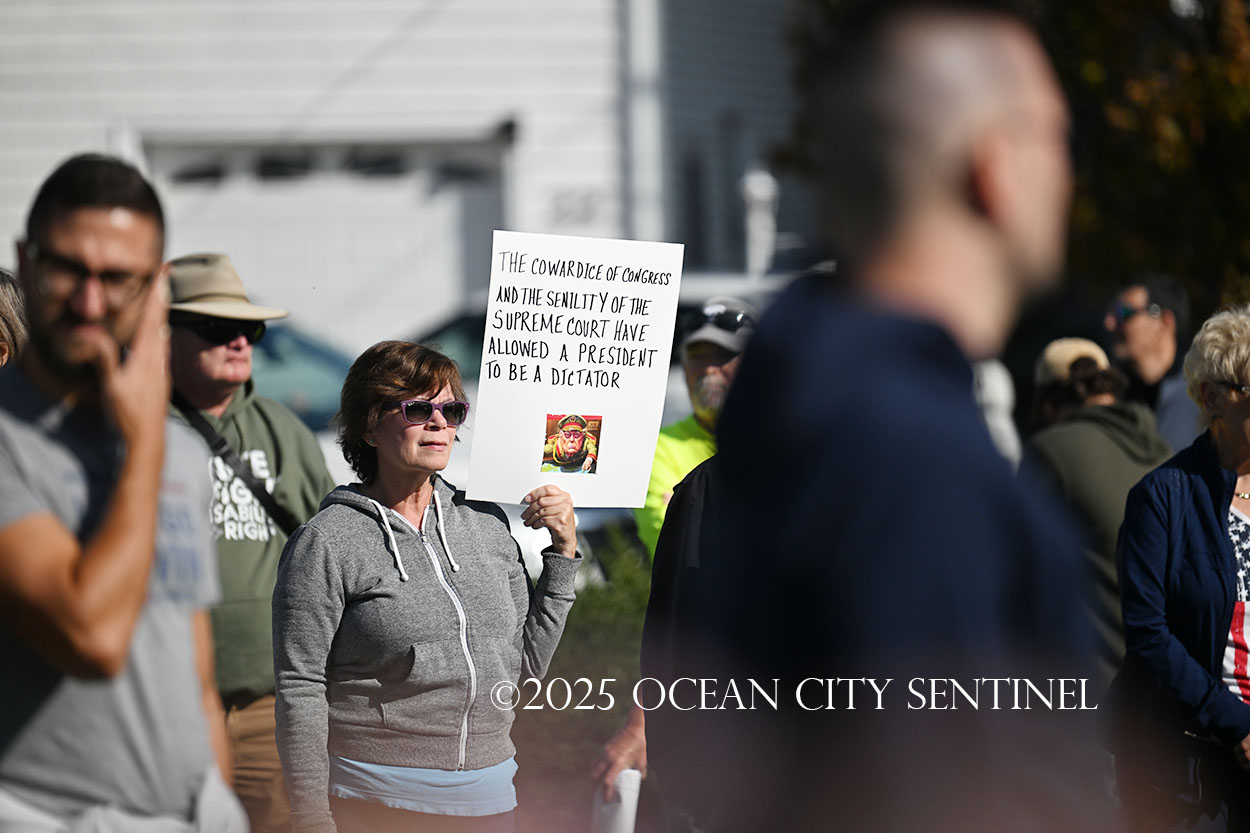 Carrying a placard that read “We have a Constitution not a king,” Dorothy Gadboisn, a second-home owner in Ocean City from Bucks County, Pa., said the president is ignoring the Constitution.