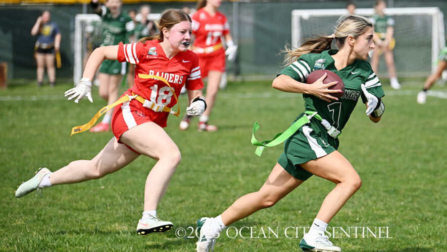 OCEAN CITY – The Ocean City High School girls flag football team hosted rival Mainland Regional May 12 at the Sixth Street field. The Red Raiders (5-7) beat the visiting Mustangs (4-7-1). It was a close game to the end, with big pass plays and runs to touchdowns. Ocean City prevailed, 26-20. See recent feature […]