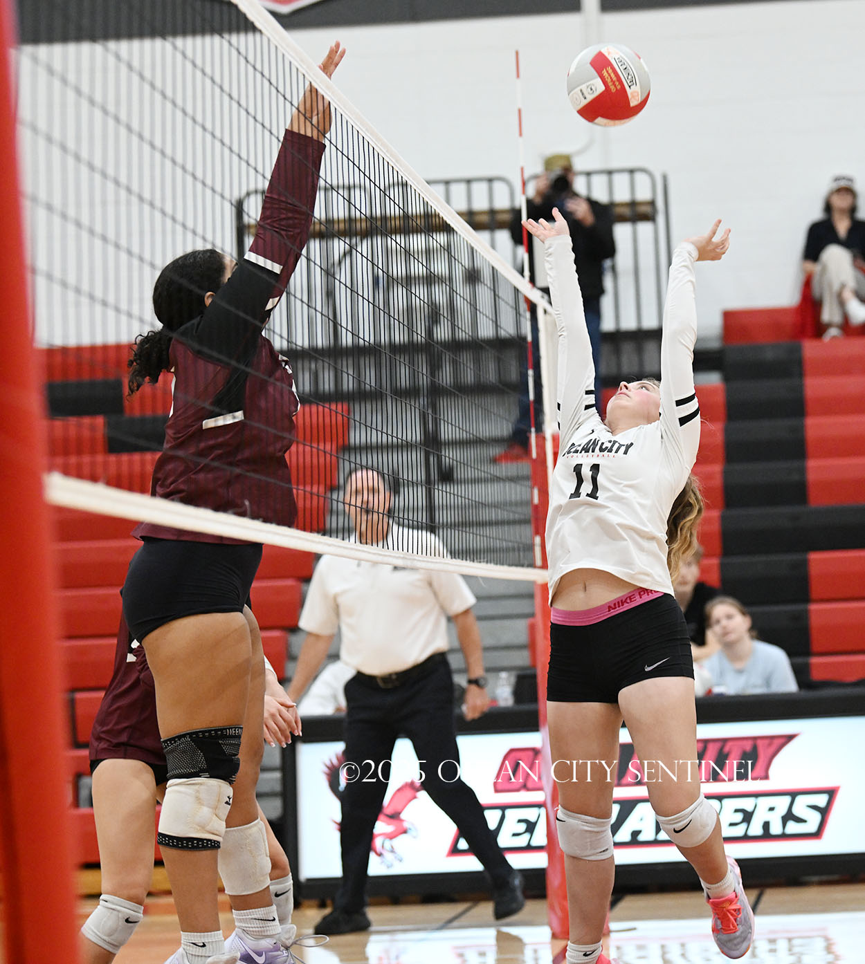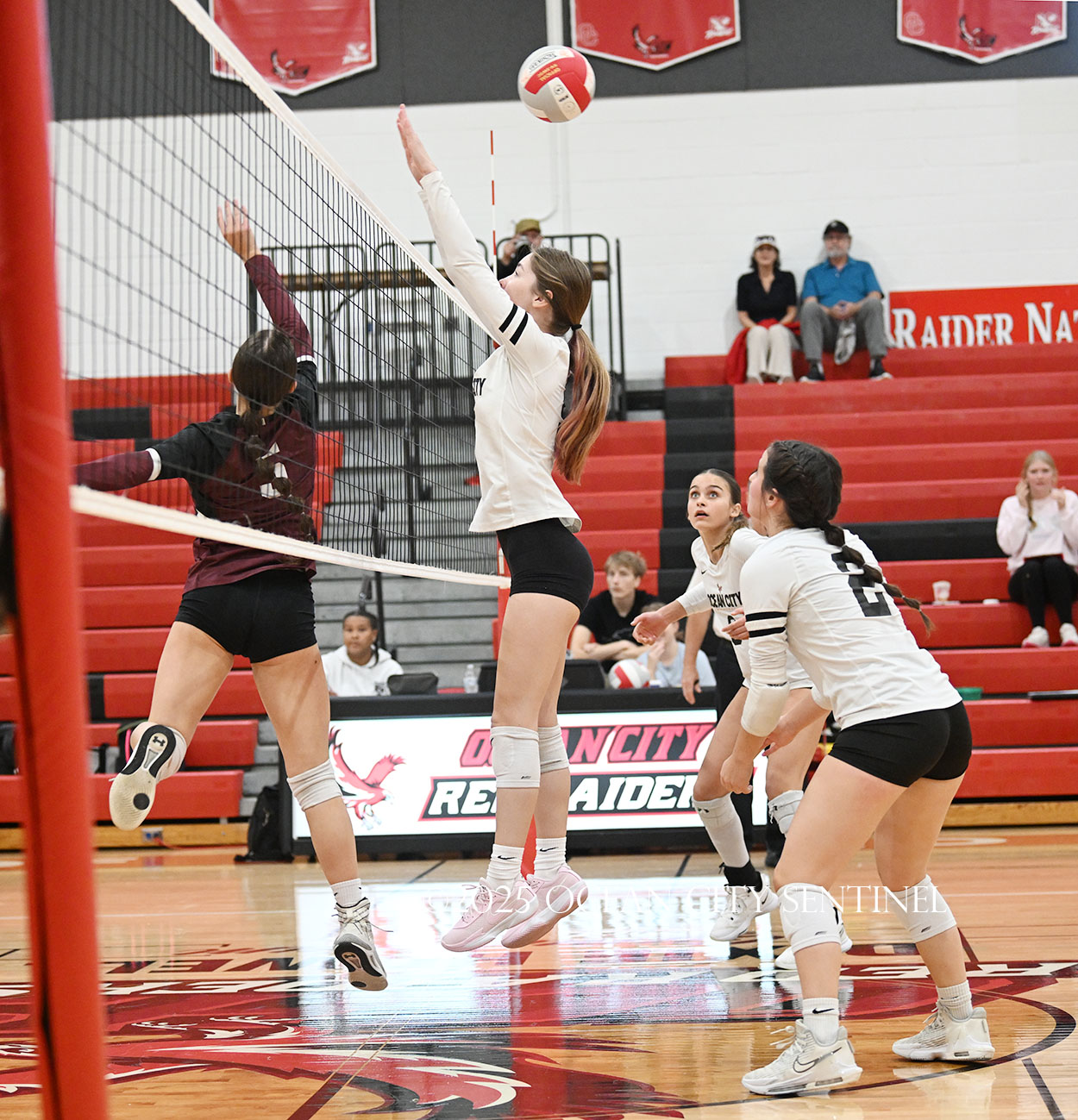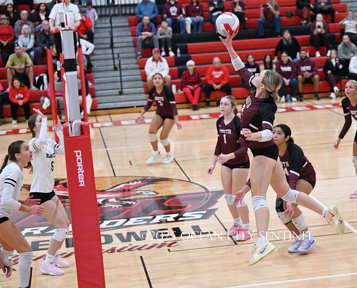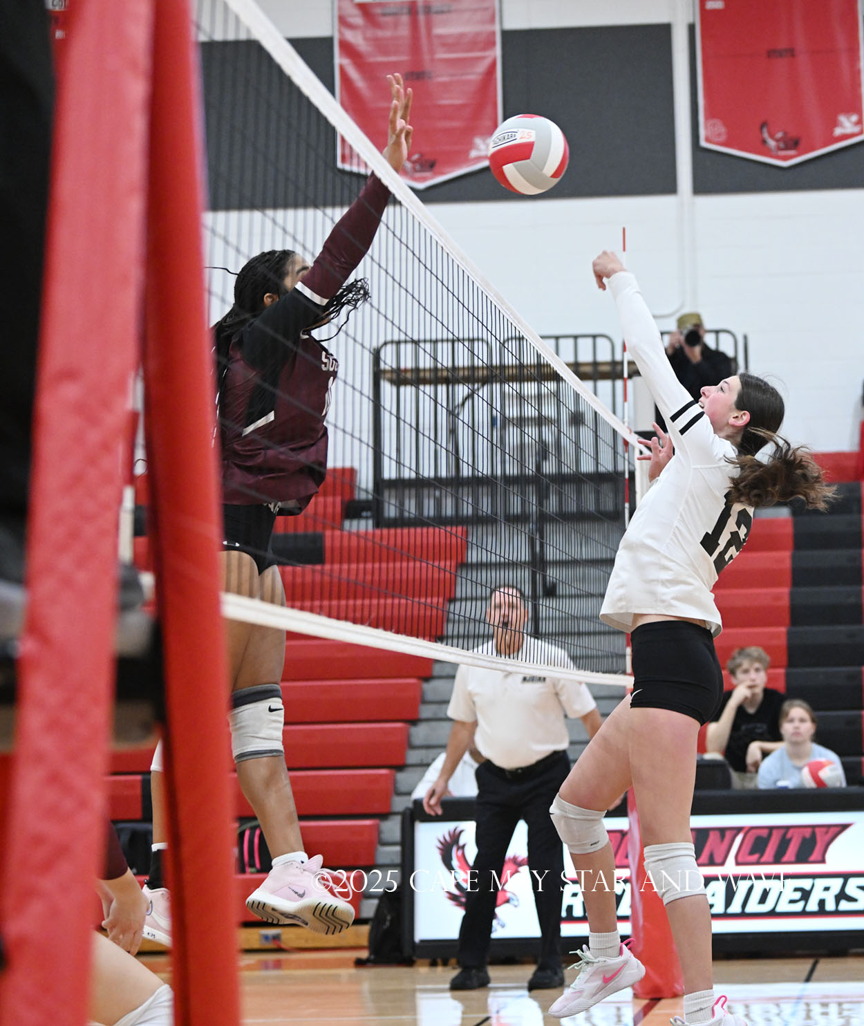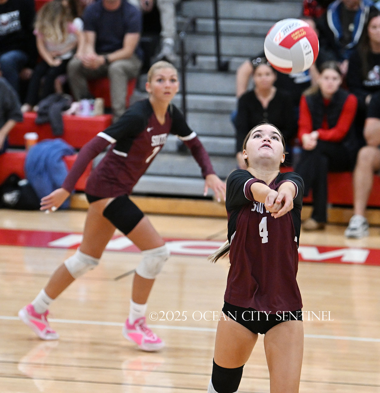 Toms River South started strong in the third set, leading early 6-2 before the Red Raiders tied at 6-6. Ocean City took the lead for good at 12-11. TRS got within a point later, 14-13, but Ocean City held at 22-18 and then got five set points at 24-19 before winning 25-19.