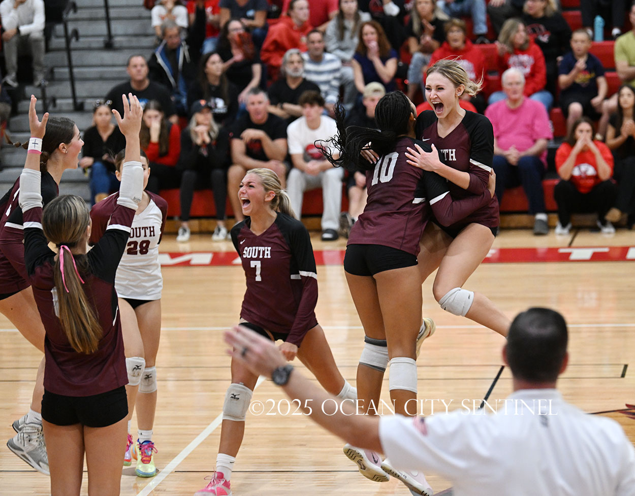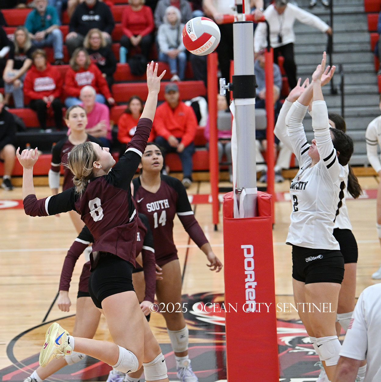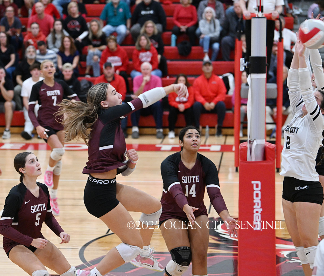 OCEAN CITY — In an intense, back-and-forth match that went the distance, Toms River South High School’s girls volleyball team ended Ocean City’s magical season in the South Jersey Group III semifinals Saturday afternoon.