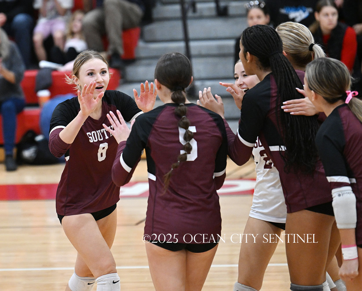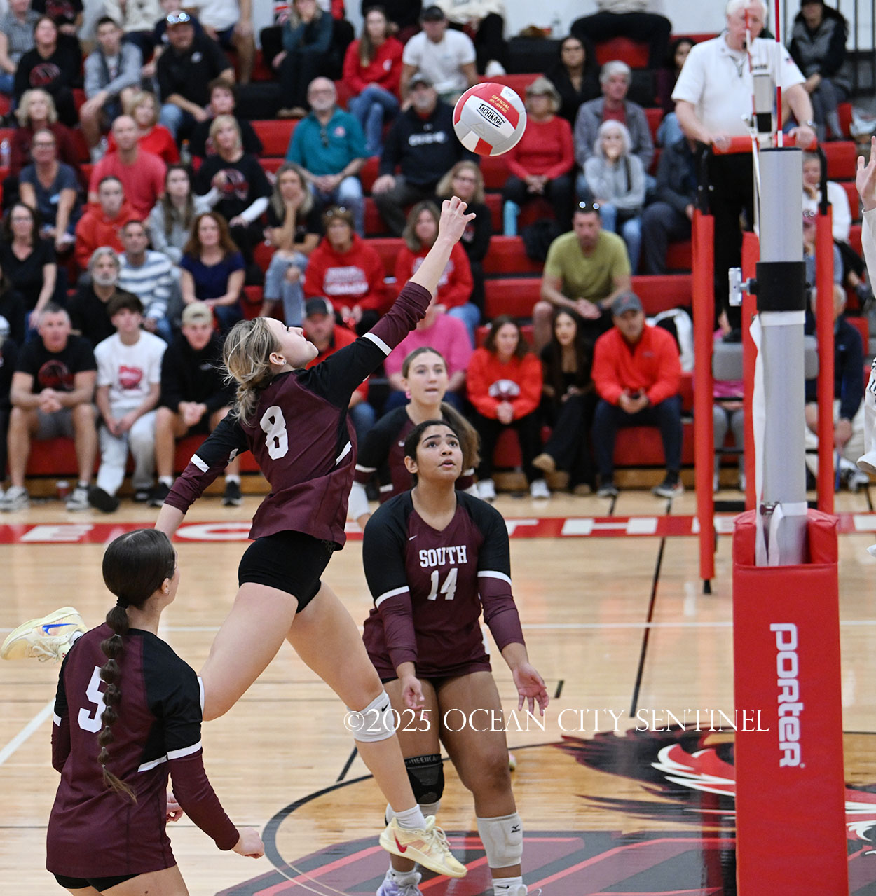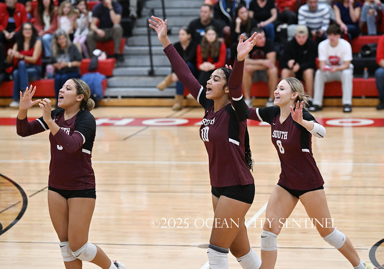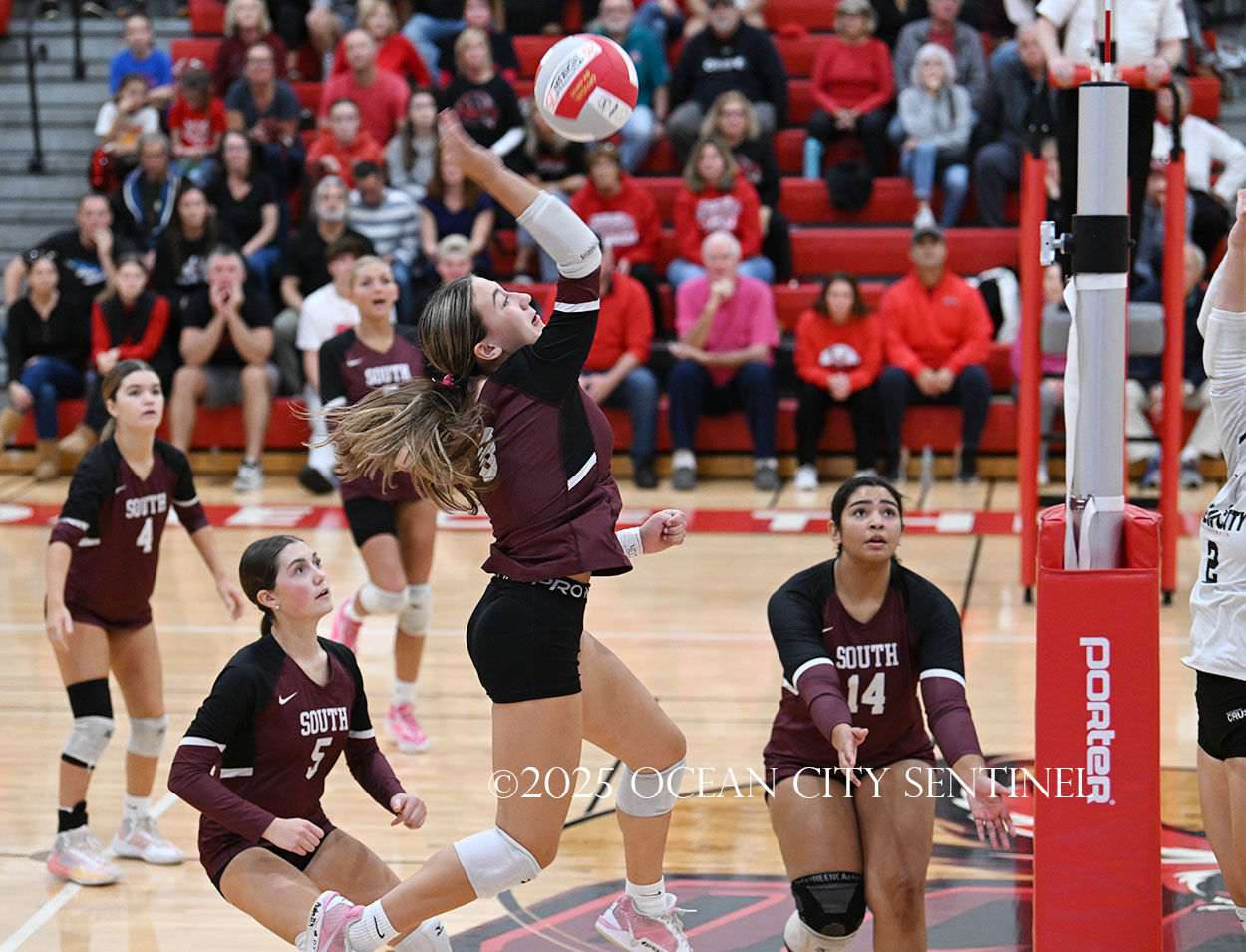 OCEAN CITY — In an intense, back-and-forth match that went the distance, Toms River South High School’s girls volleyball team ended Ocean City’s magical season in the South Jersey Group III semifinals Saturday afternoon.