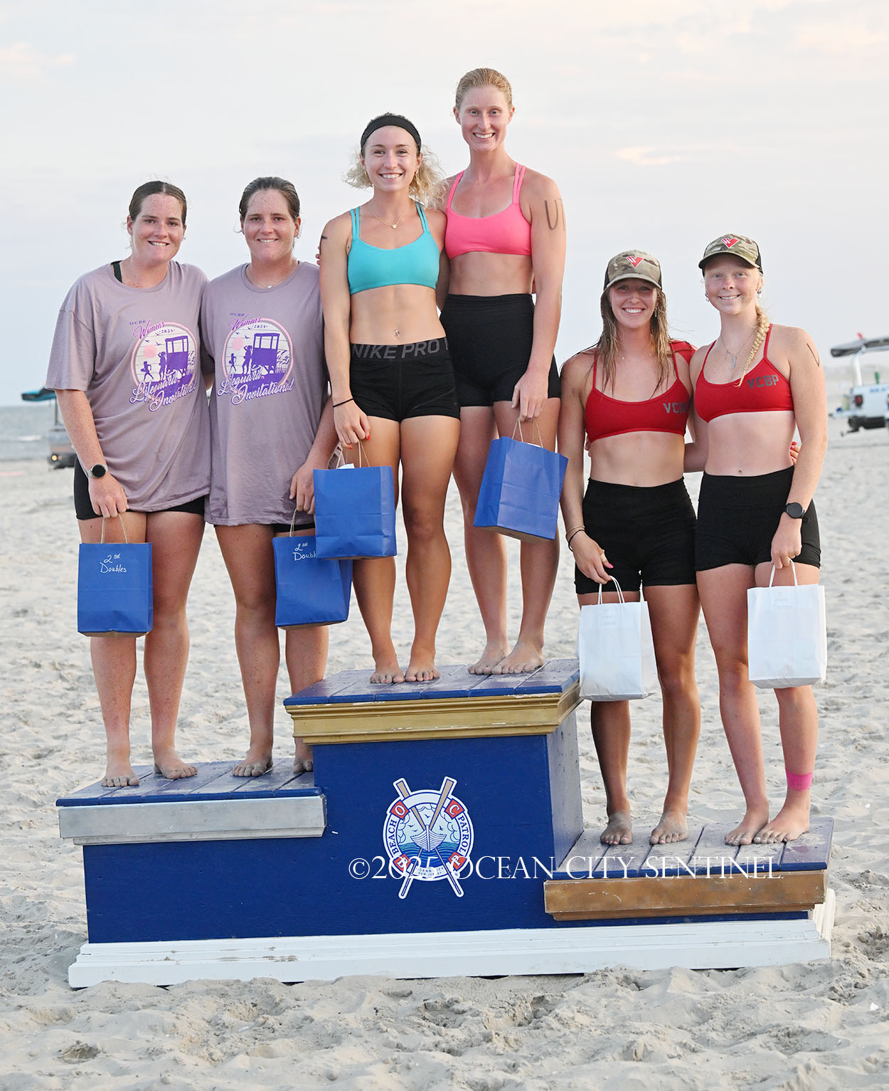 The Gallaghers finished in 5:45, followed by Sea Girt’s Sydney VandeBoe and Ivy Slavinski in 5:54 and Diamond Beach Patrol’s Kelsey Cummings and Kennedy Campbell in 5:57.