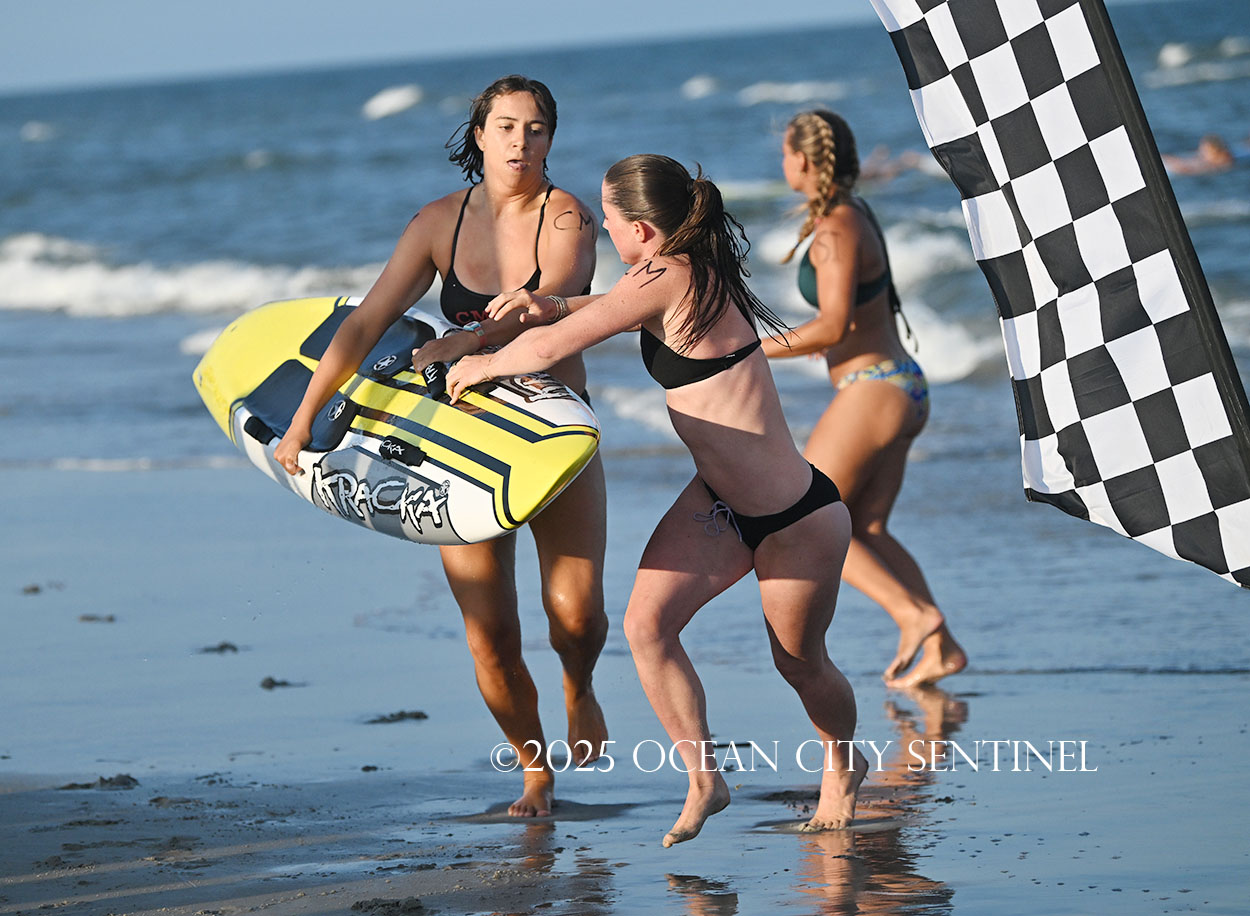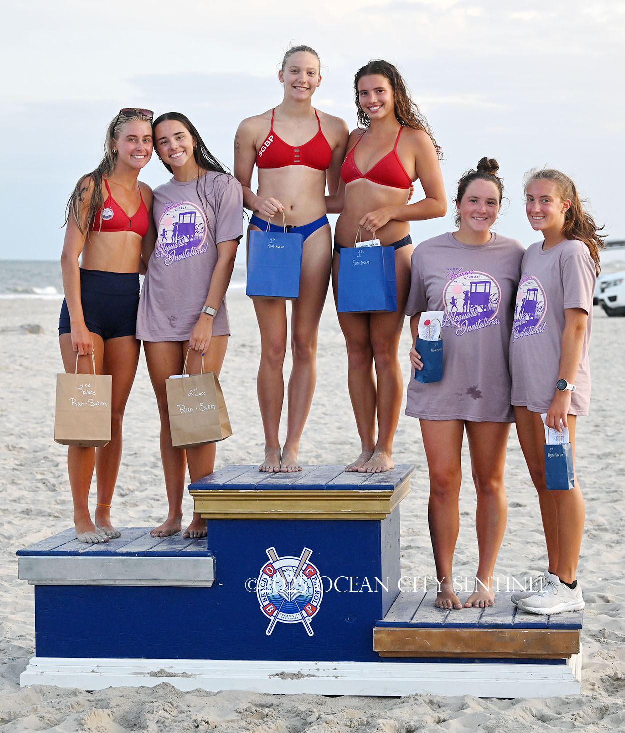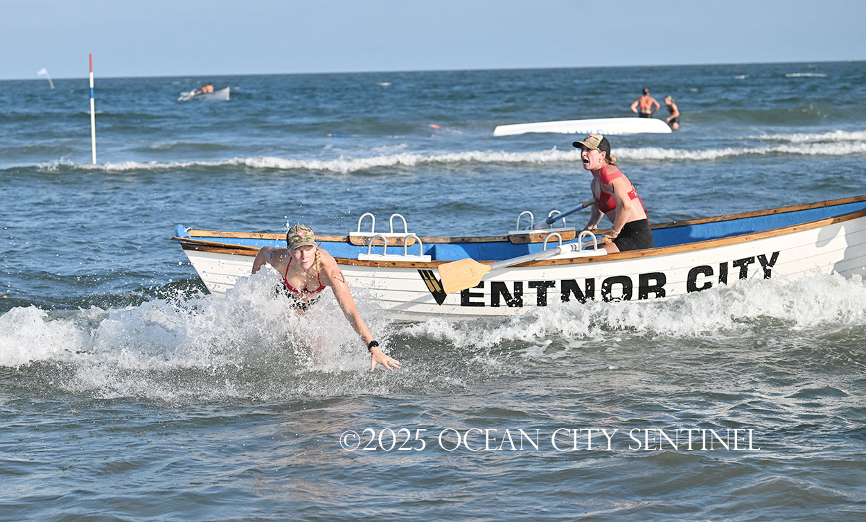 The Longport Beach Patrol’s Jordyn Ricciotti and Alivia Wainwright, both products of the Mainland Regional High School swim team, won the swim relay in 8:12. Sea Girt’s Maddie Brennan and Emily Sudol were second in 8:17 and Ocean City’s Summer DeWitt and Rhylee Cornell were third in 8:34.