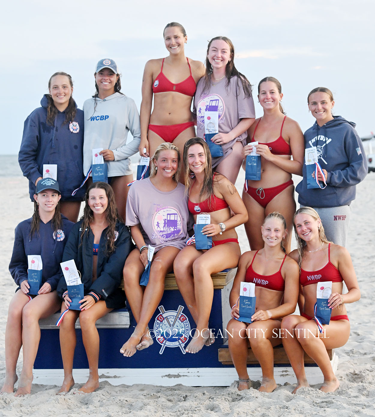 The Sea Isle City Beach Patrol was third with 8 points, the Upper Township Beach Patrol was fourth with 7 and the Wildwood Crest Beach Patrol was fifth with 6. Scoring was 5 points for first place, 4 for second, 3 for third, 2 for fourth and 1 for fifth place.