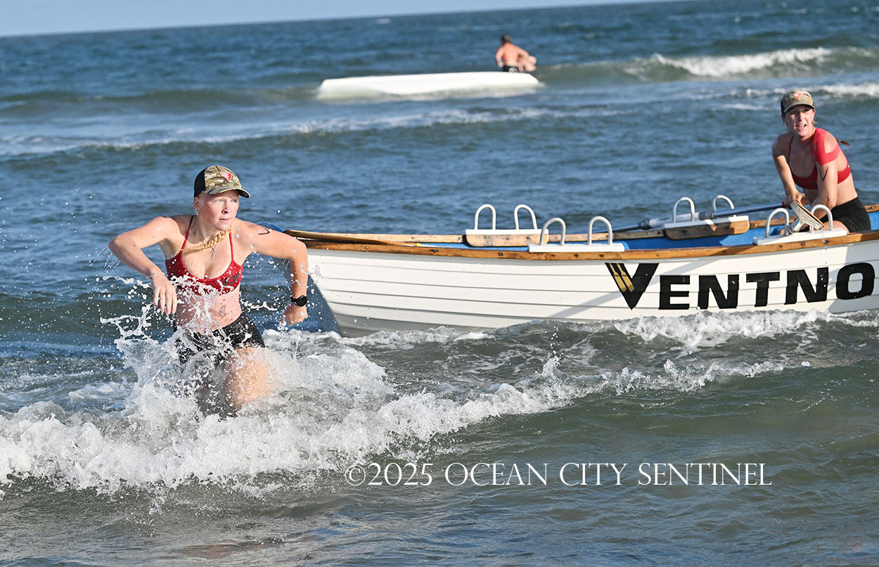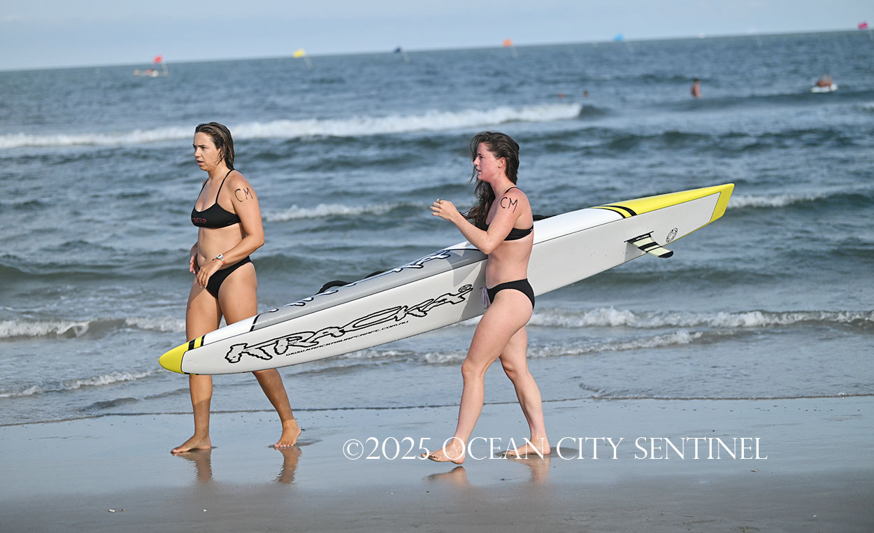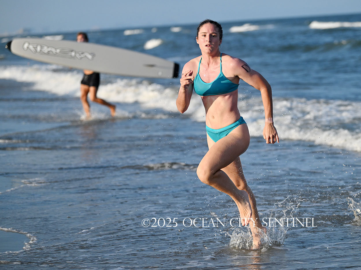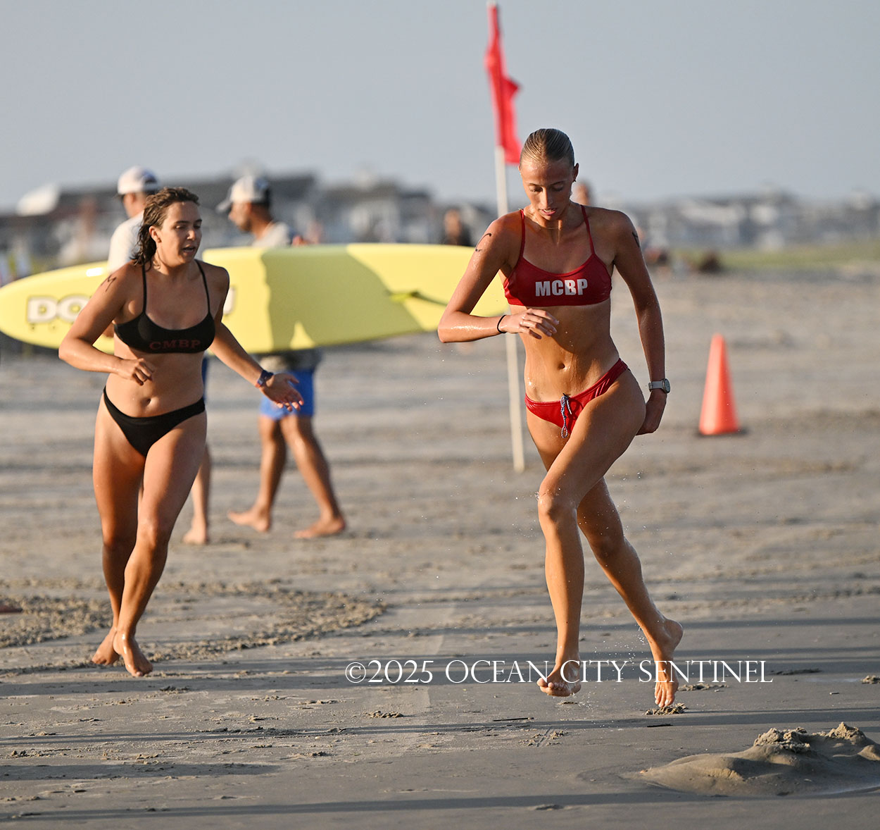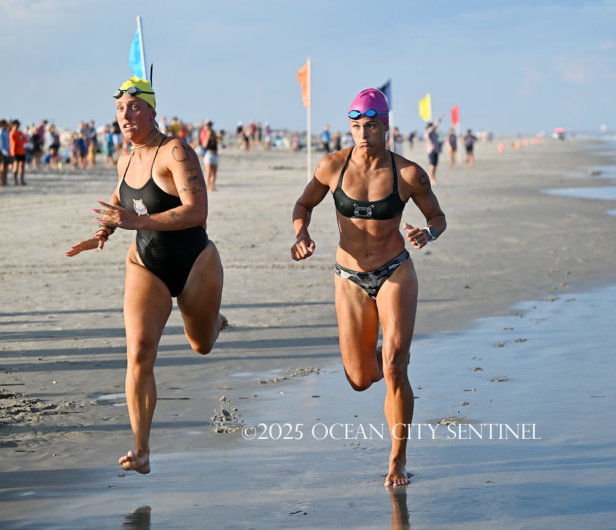 The Upper Township Beach Patrol duo of Lorna Connell and Kailey Grimley were first in 4:54, followed by Sea Isle City sisters Molly and Maura Quinn in 4:57 and the Ventnor City Beach Patrol’s Sam Keough and Charlotte Thomas in 5:01.