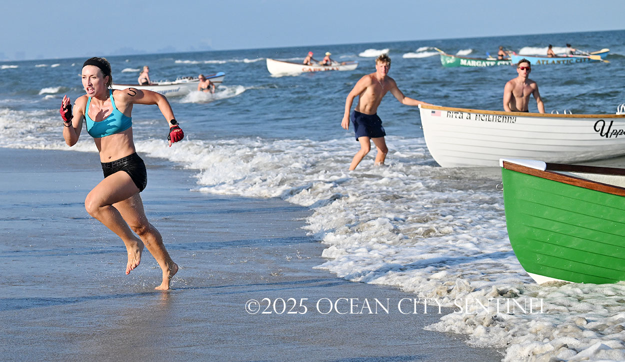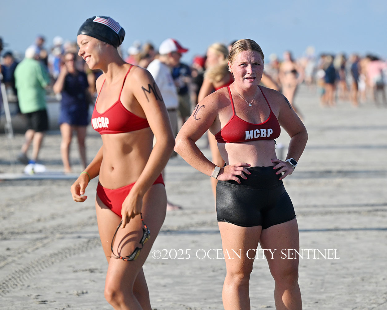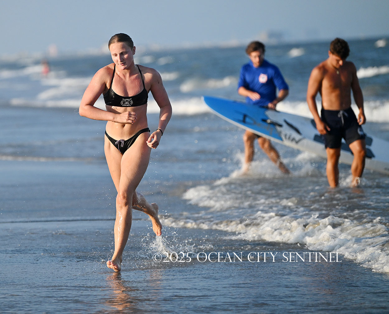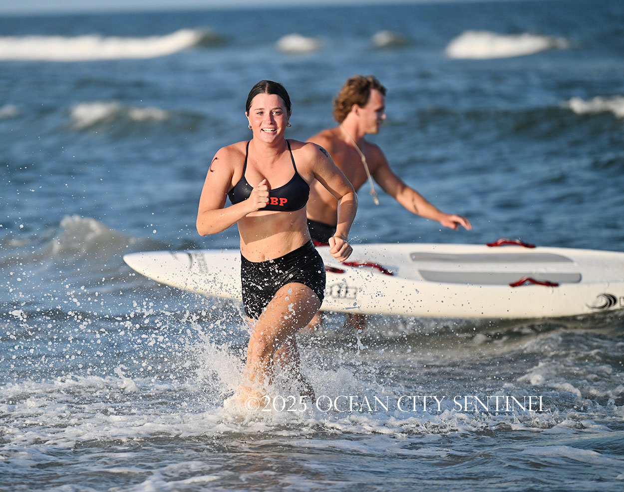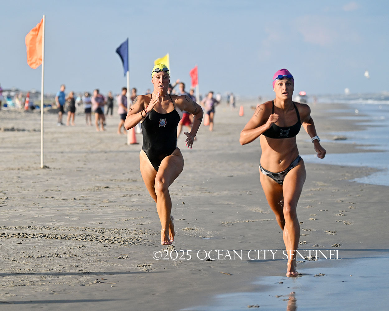 The Upper Township Beach Patrol duo of Lorna Connell and Kailey Grimley were first in 4:54, followed by Sea Isle City sisters Molly and Maura Quinn in 4:57 and the Ventnor City Beach Patrol’s Sam Keough and Charlotte Thomas in 5:01.