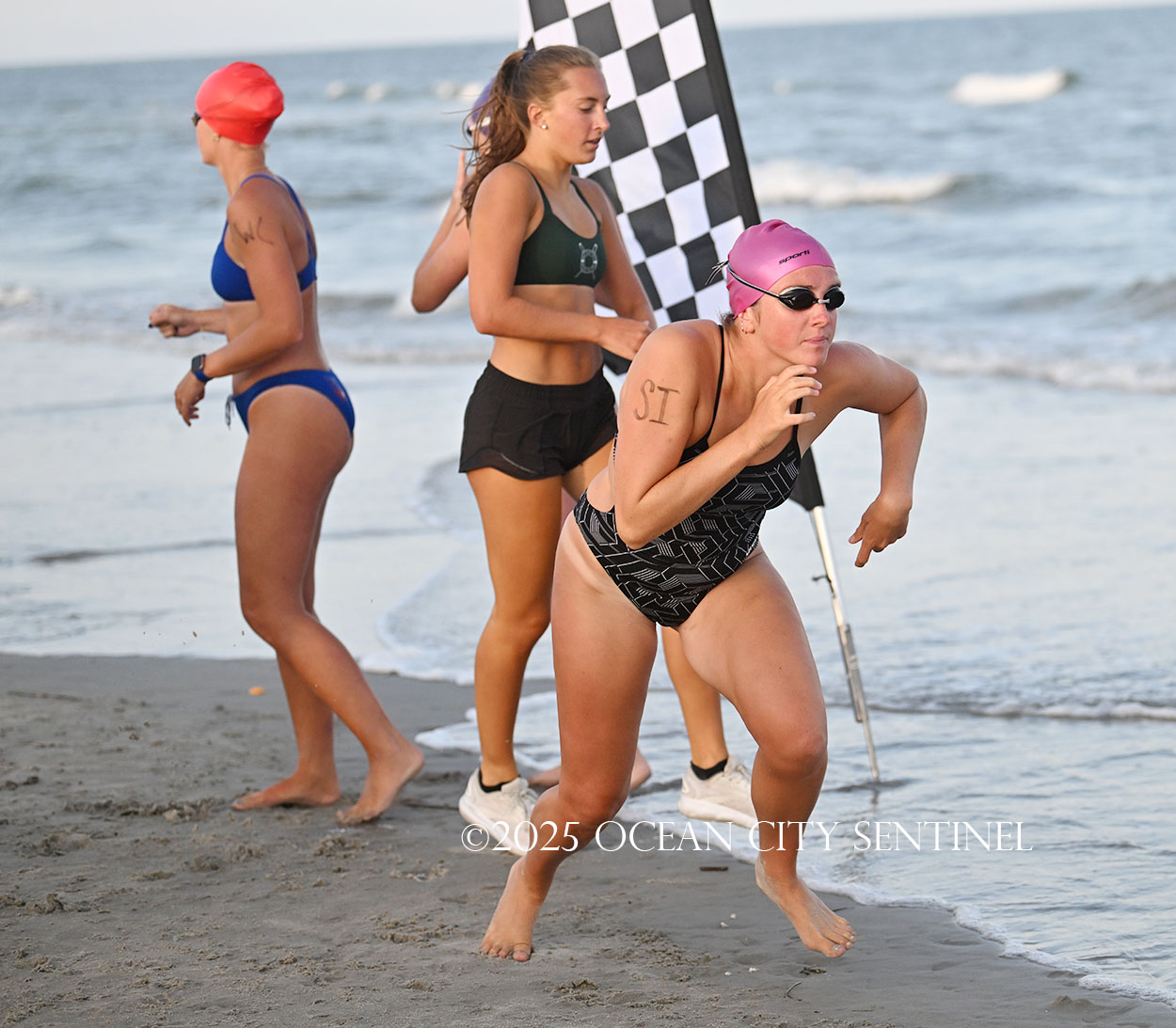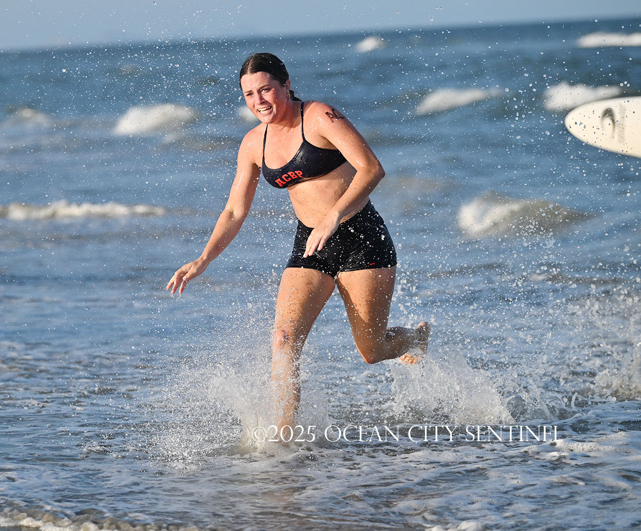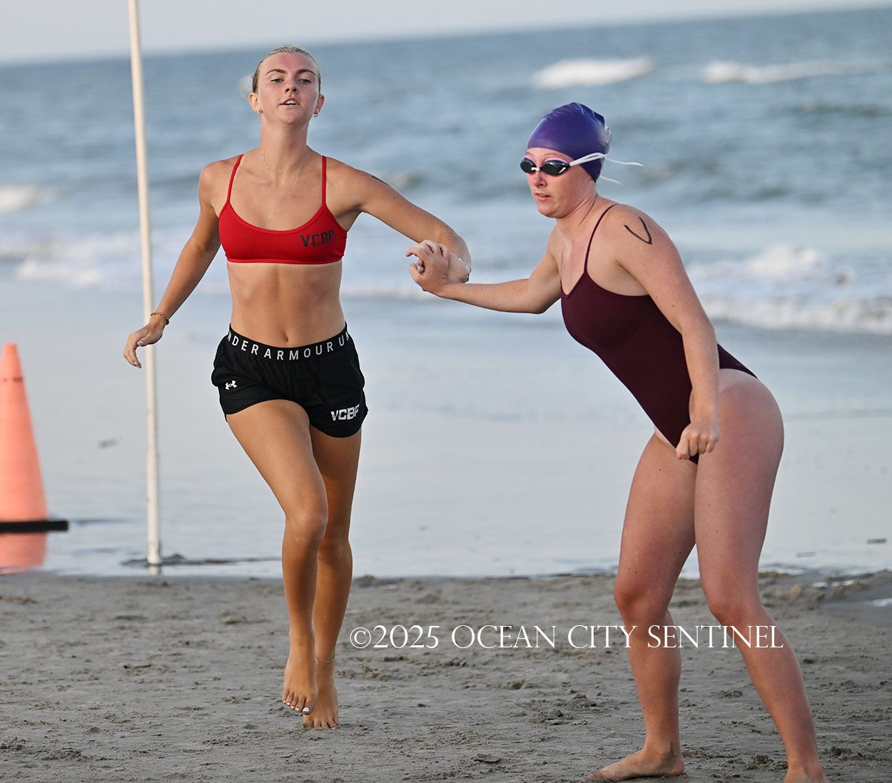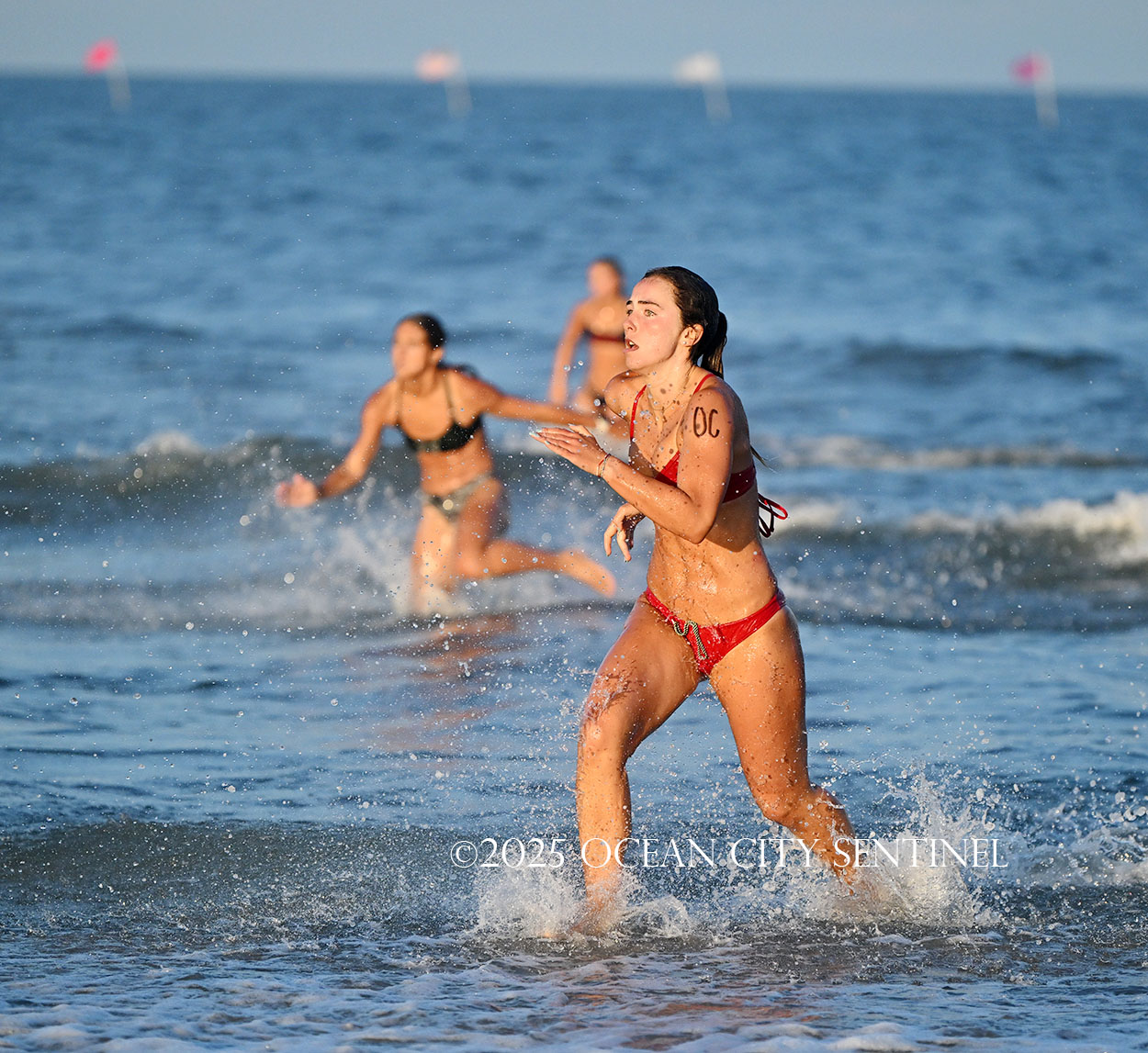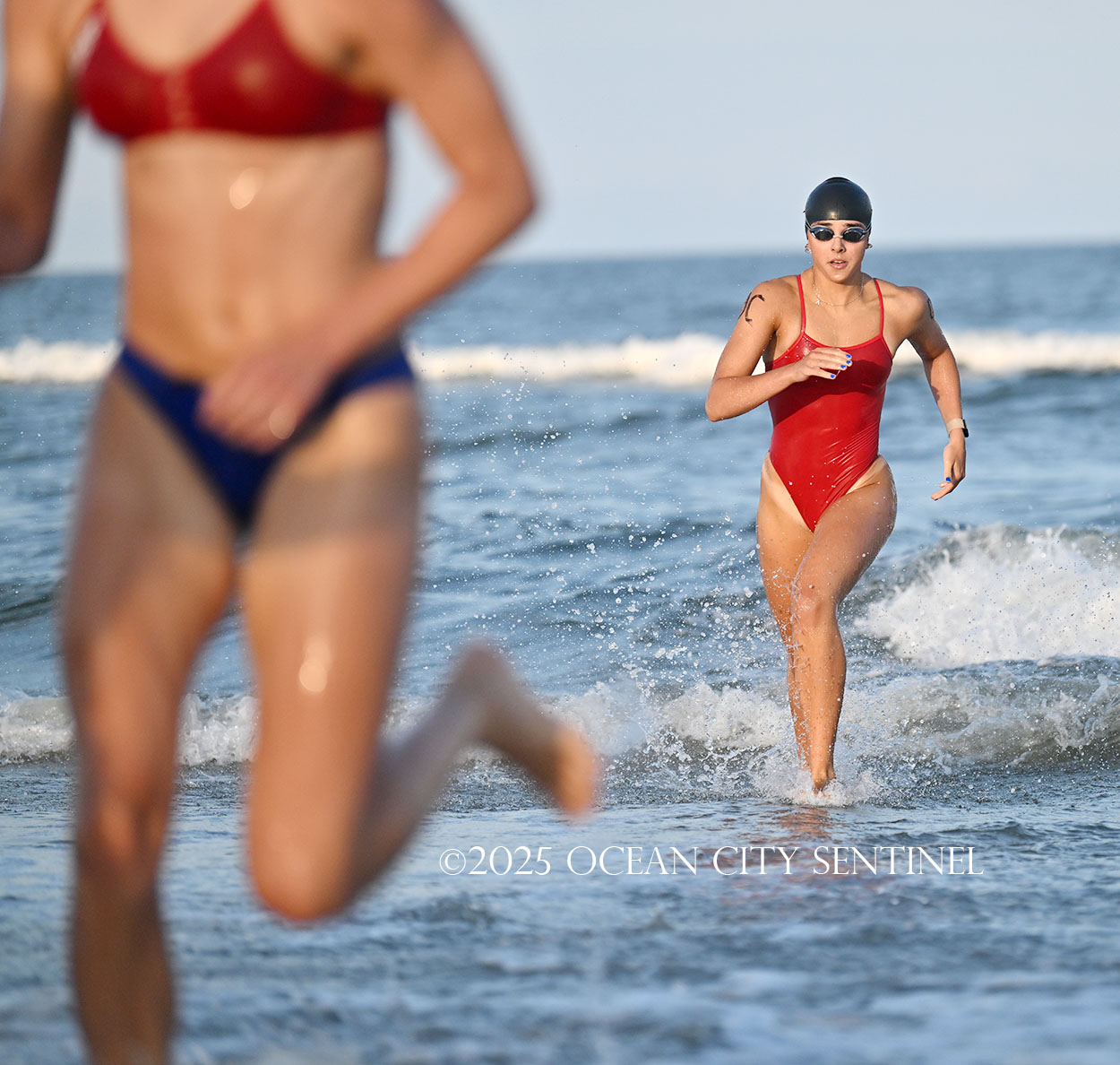 Care, a former champion runner with Ocean City High School, took the lead for Ocean City in the beach run, tagging fellow Red Raider Hays for the swim.