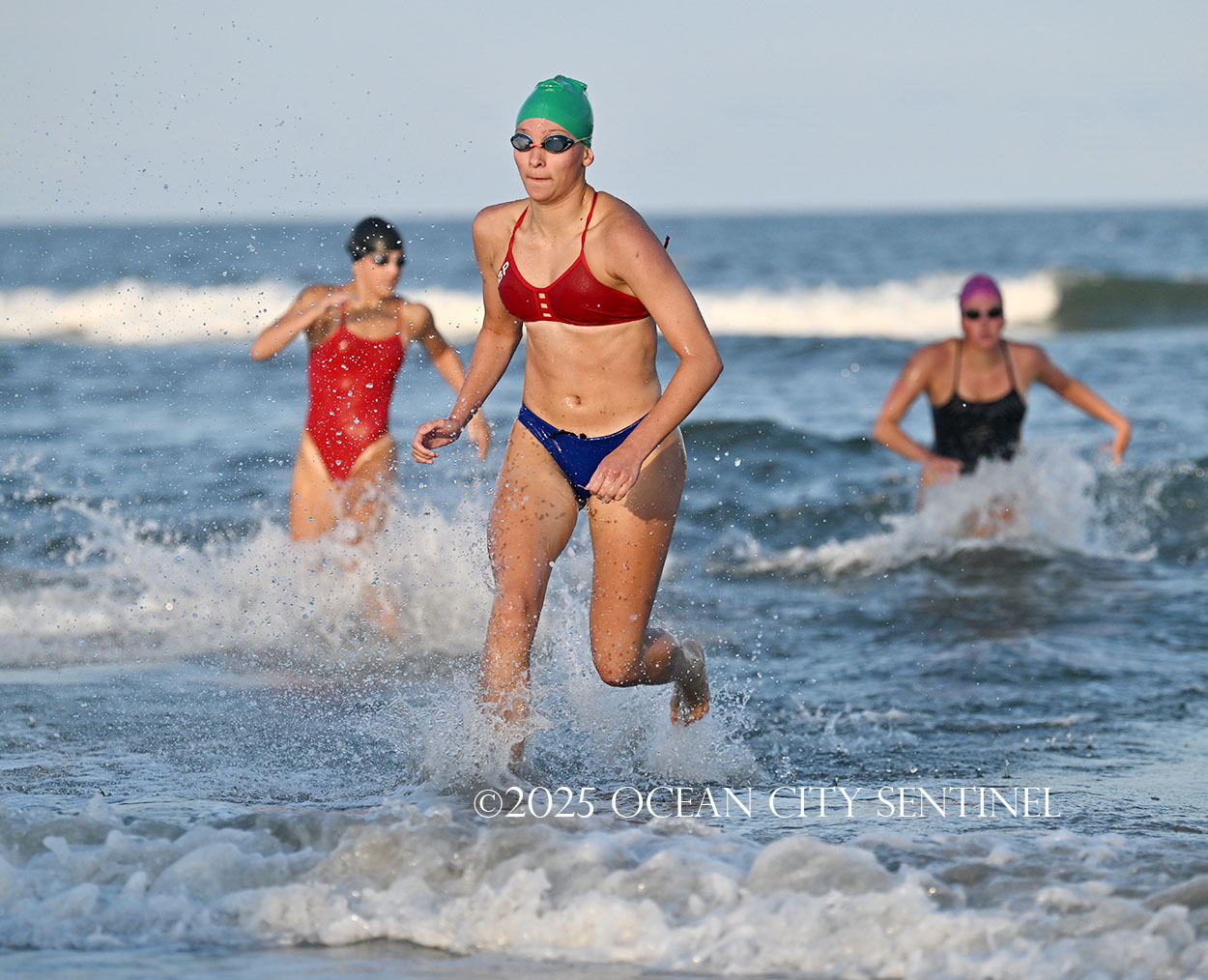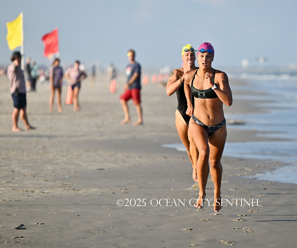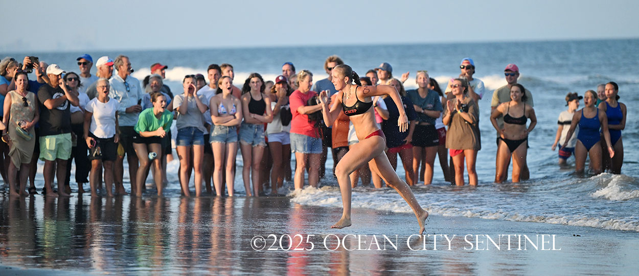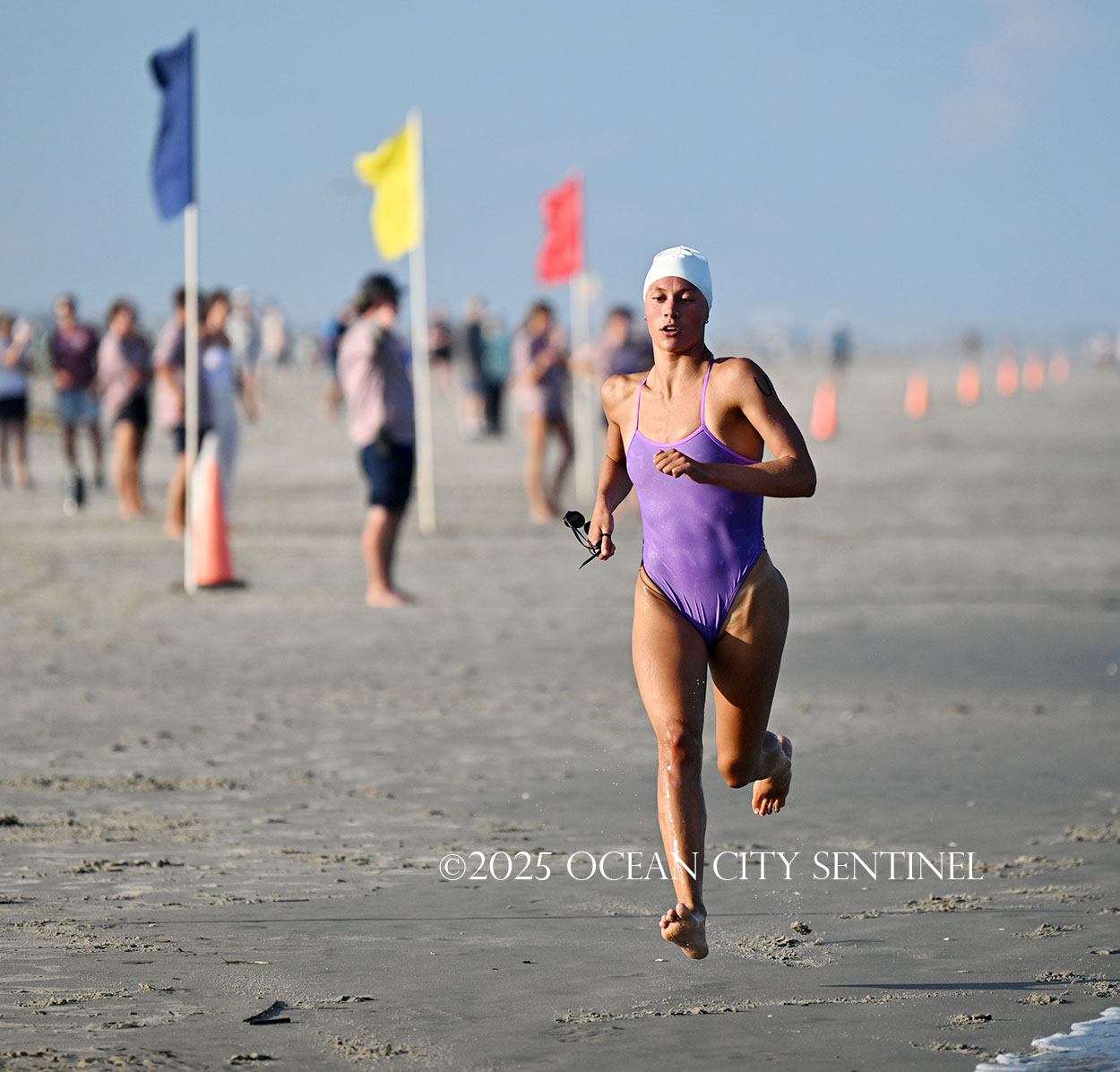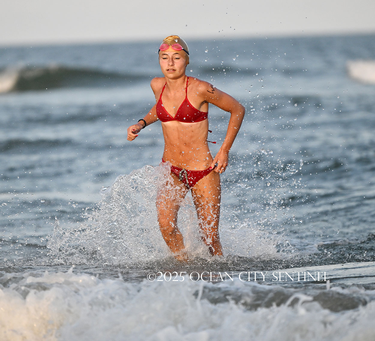 Care, a former champion runner with Ocean City High School, took the lead for Ocean City in the beach run, tagging fellow Red Raider Hays for the swim.