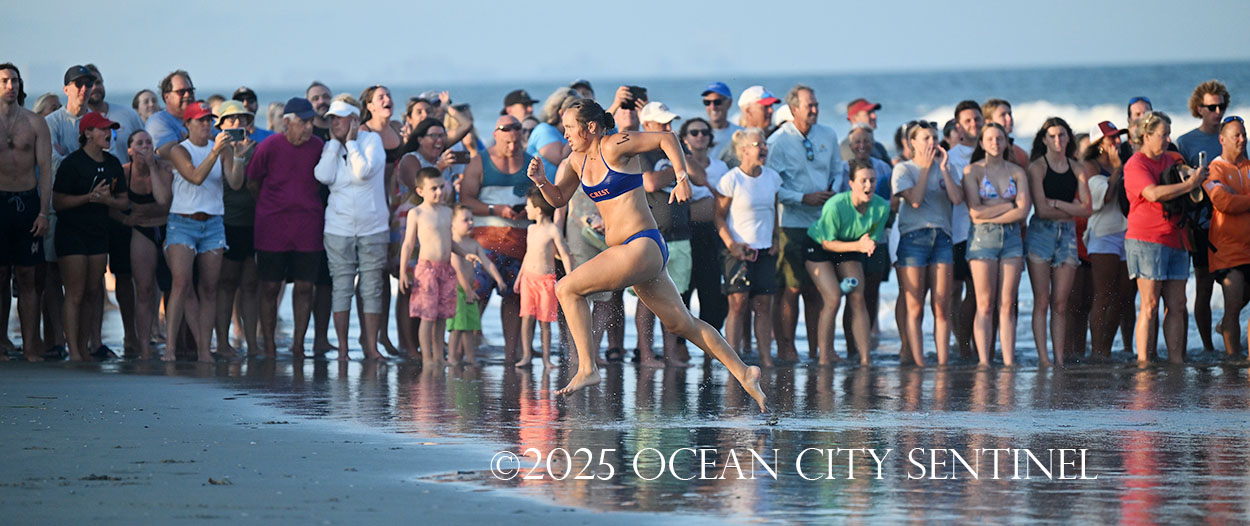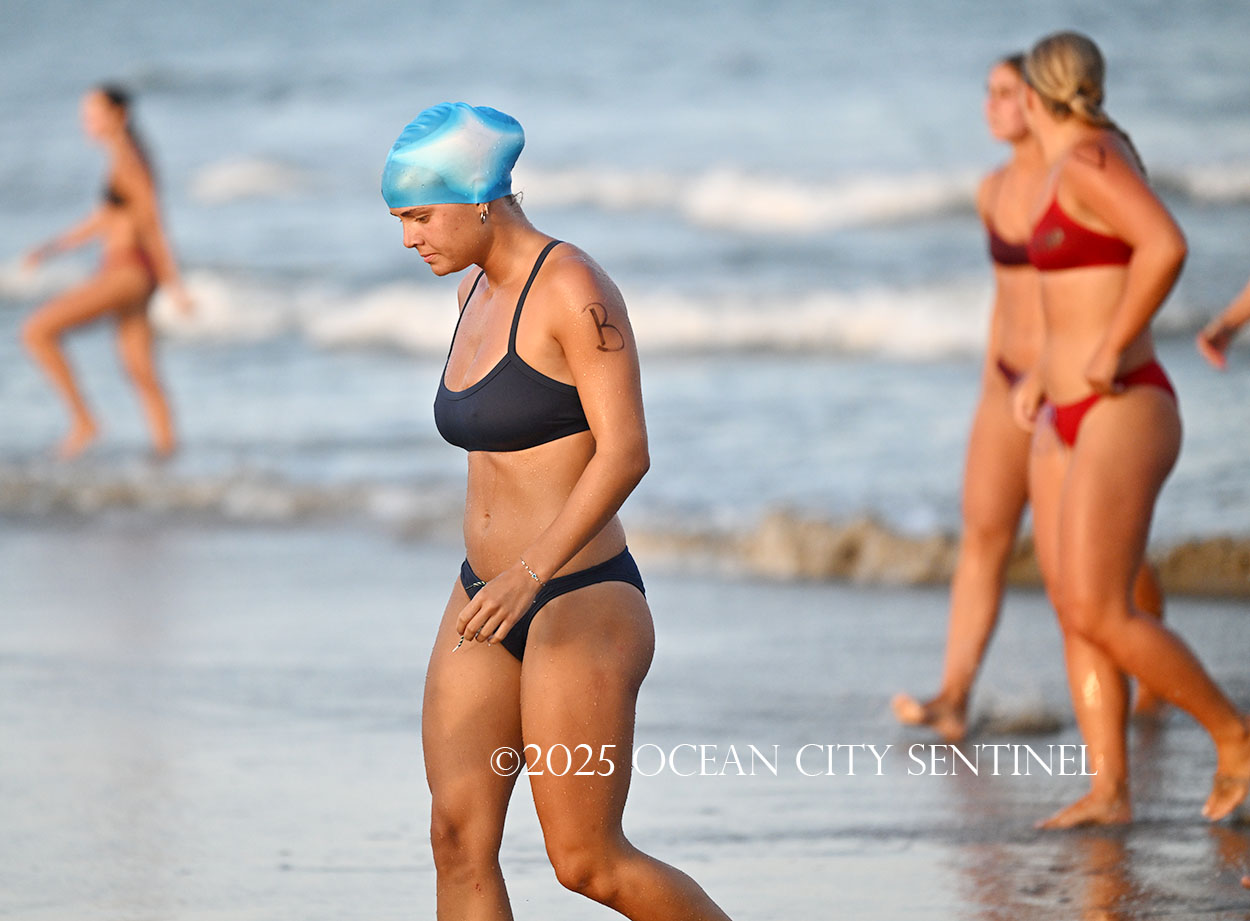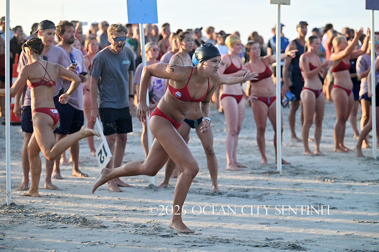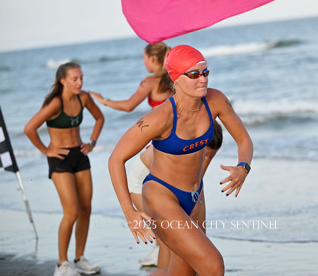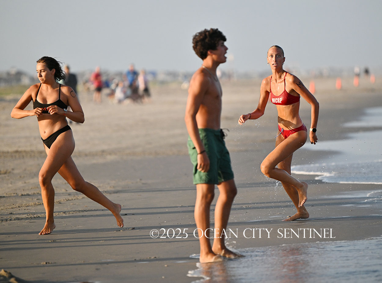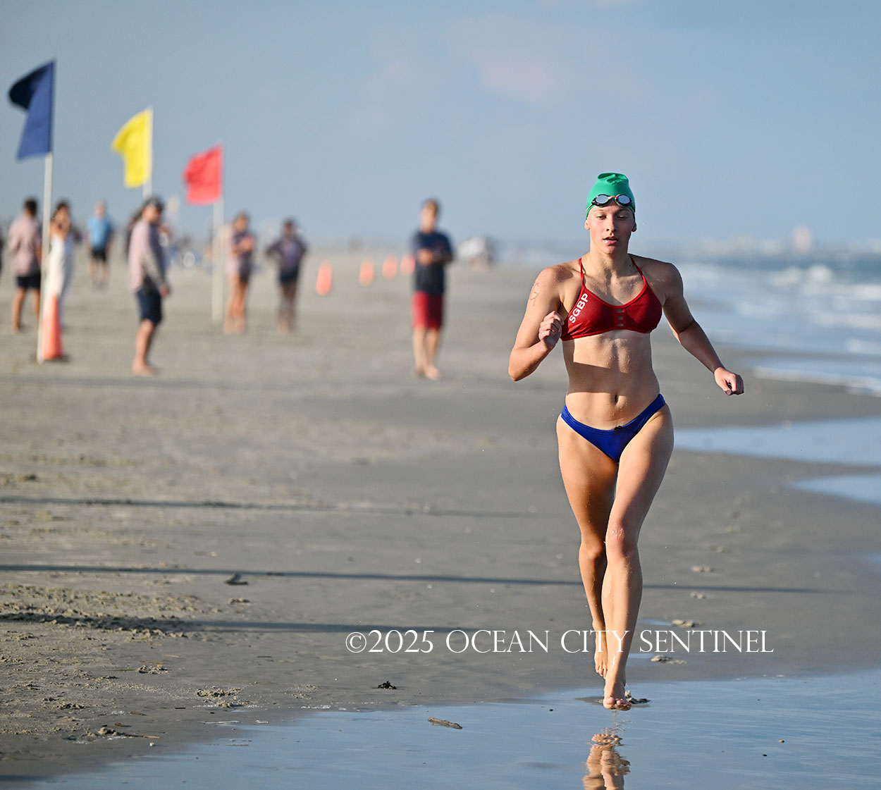 Care, a former champion runner with Ocean City High School, took the lead for Ocean City in the beach run, tagging fellow Red Raider Hays for the swim.