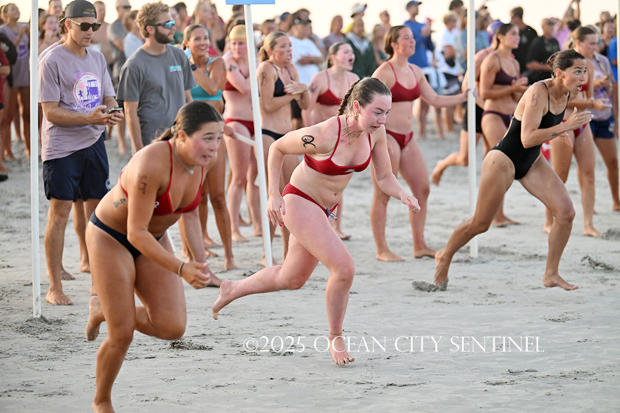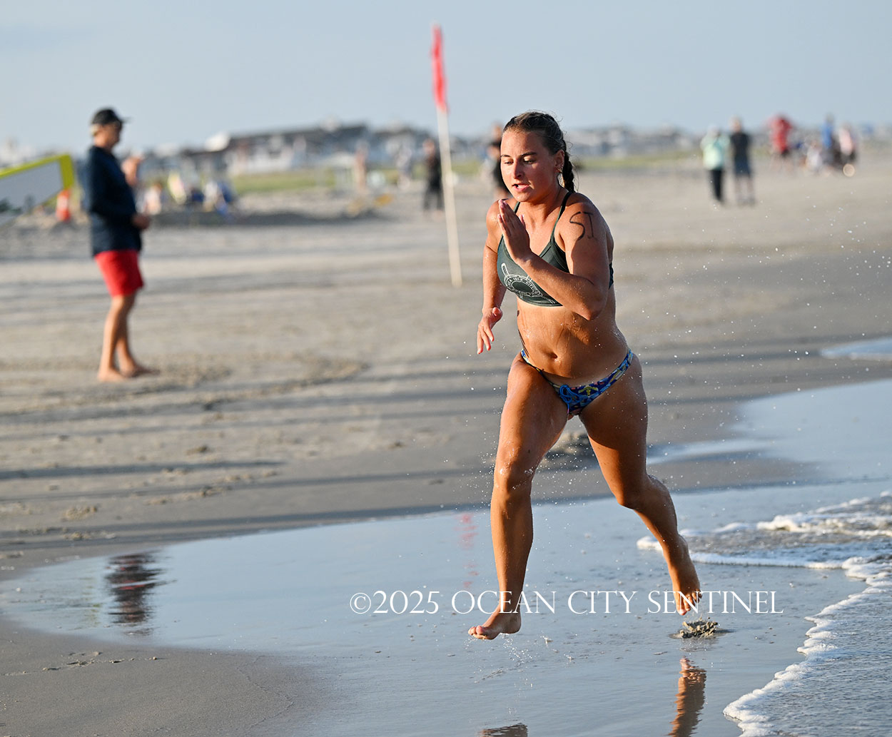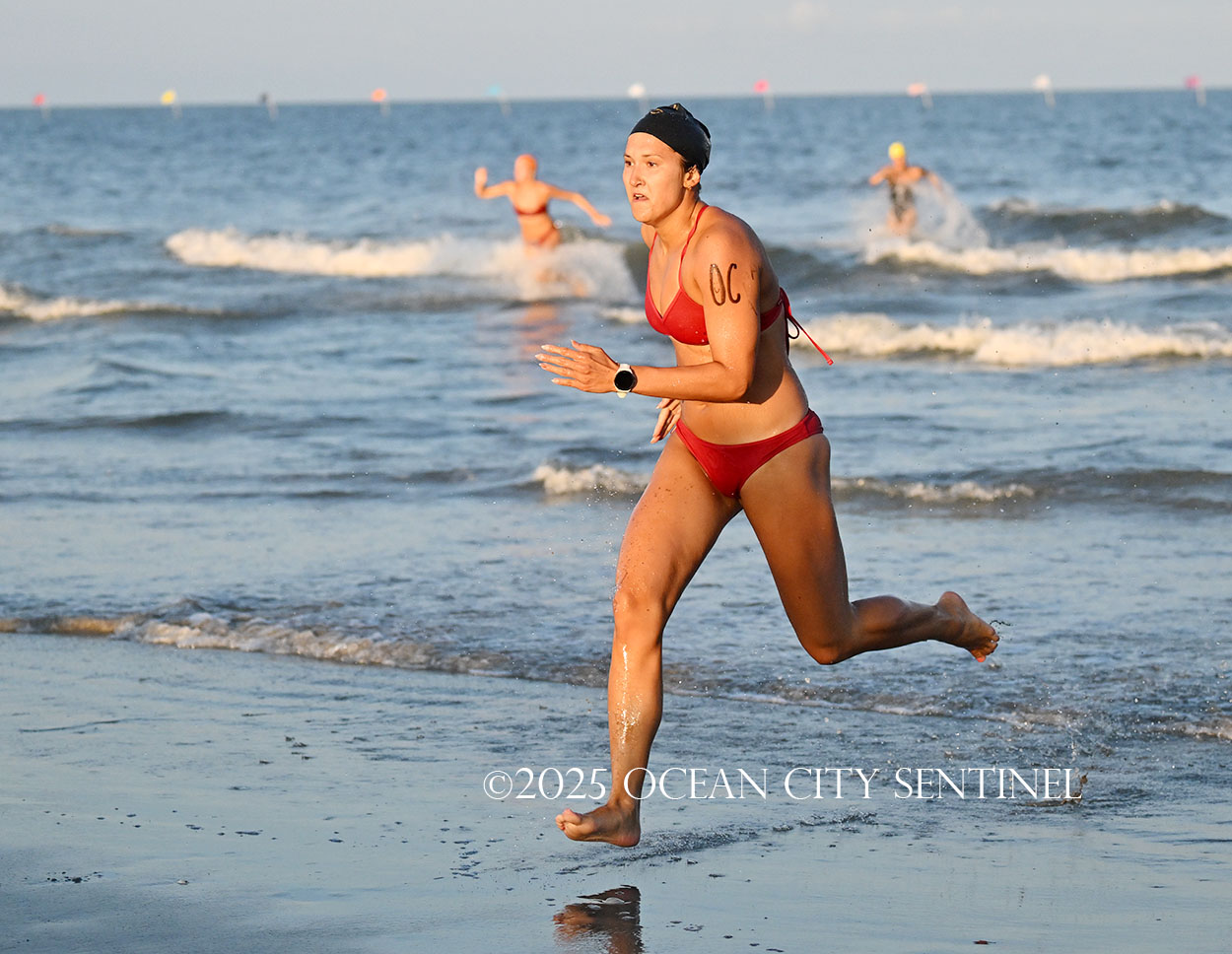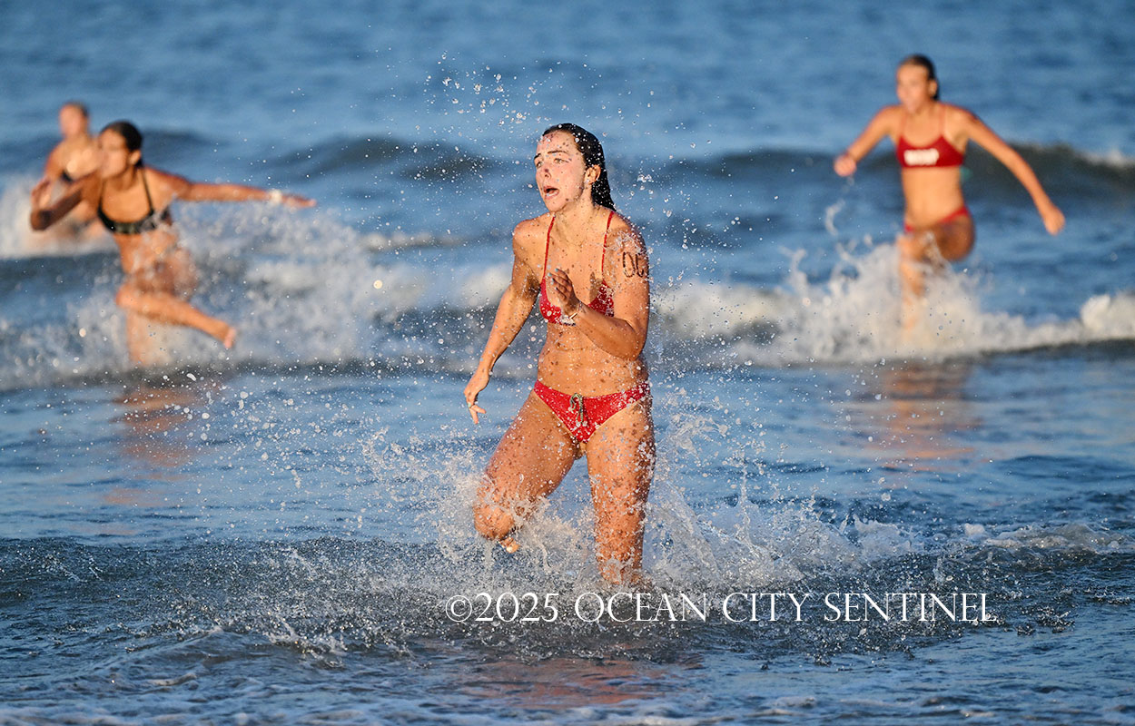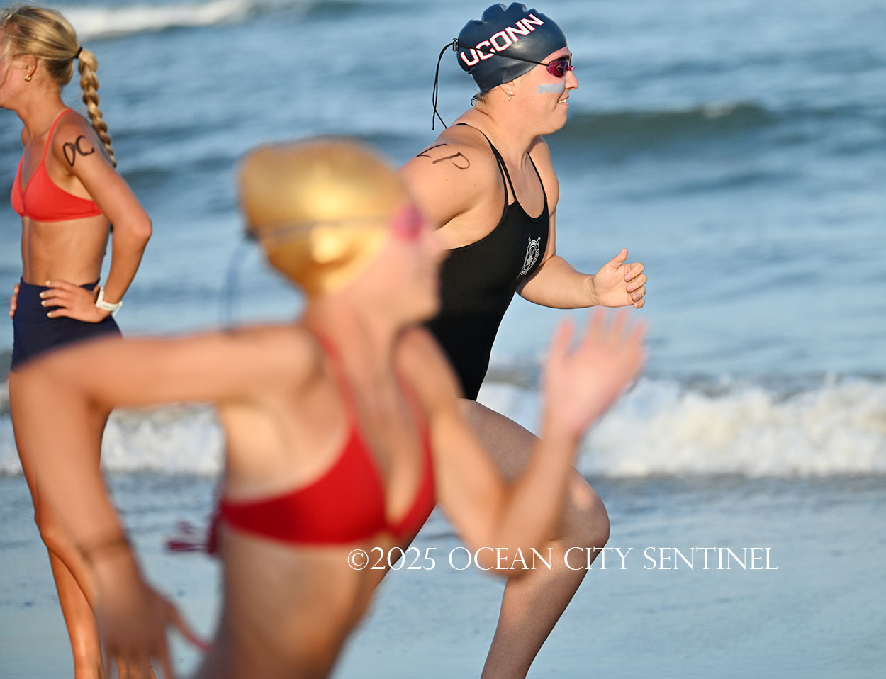 Care, a former champion runner with Ocean City High School, took the lead for Ocean City in the beach run, tagging fellow Red Raider Hays for the swim.