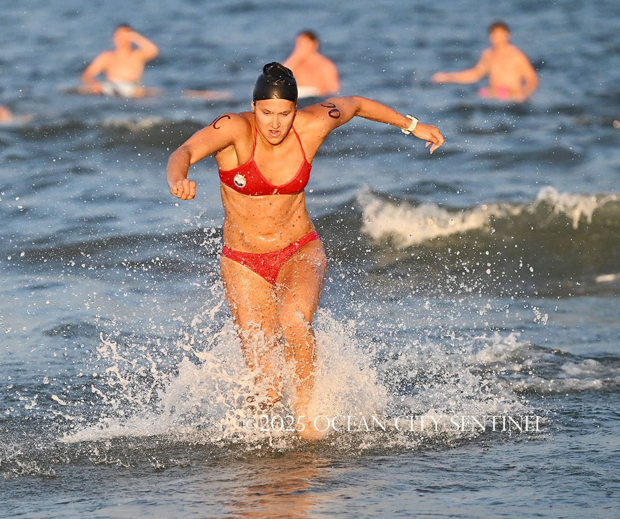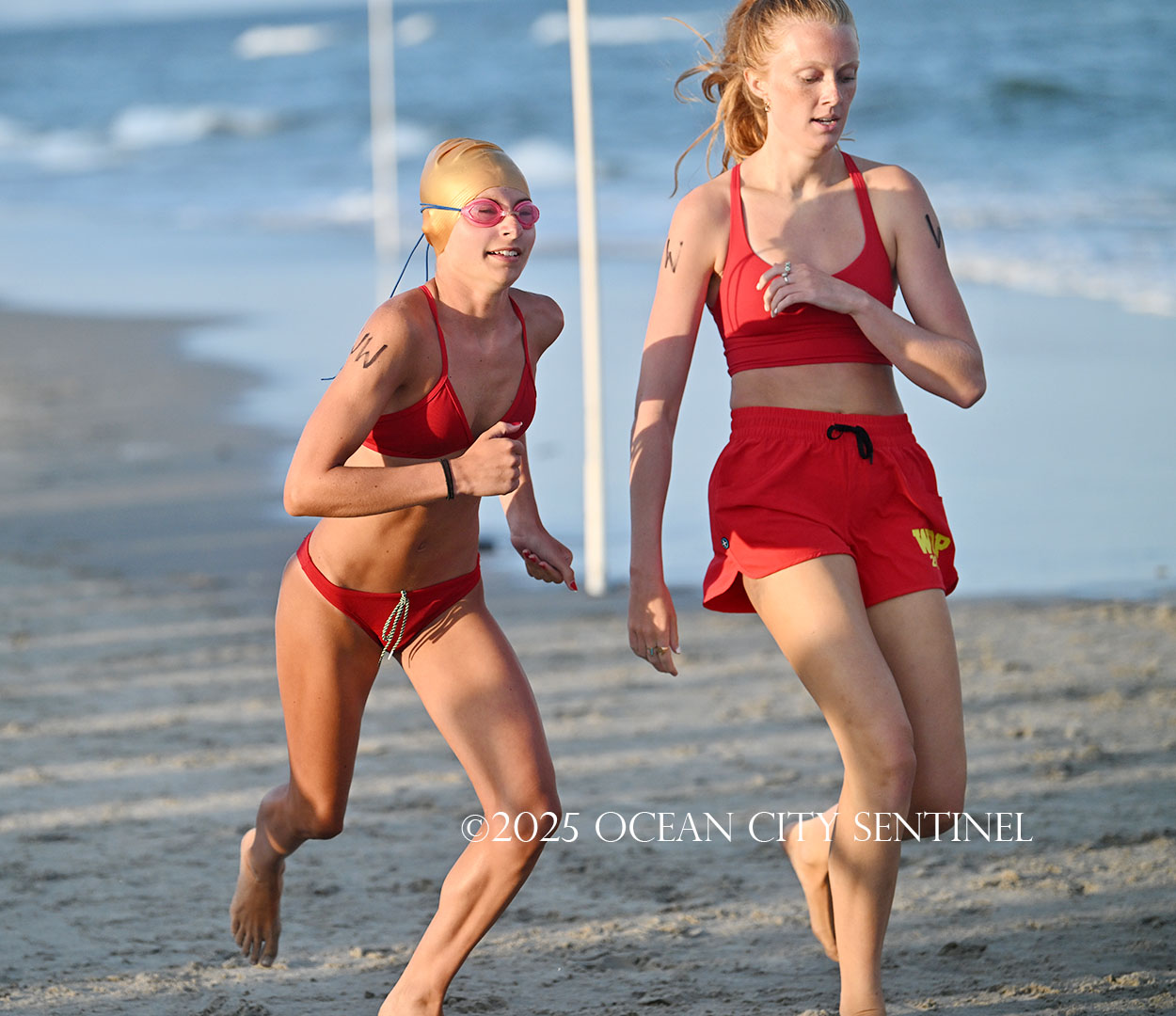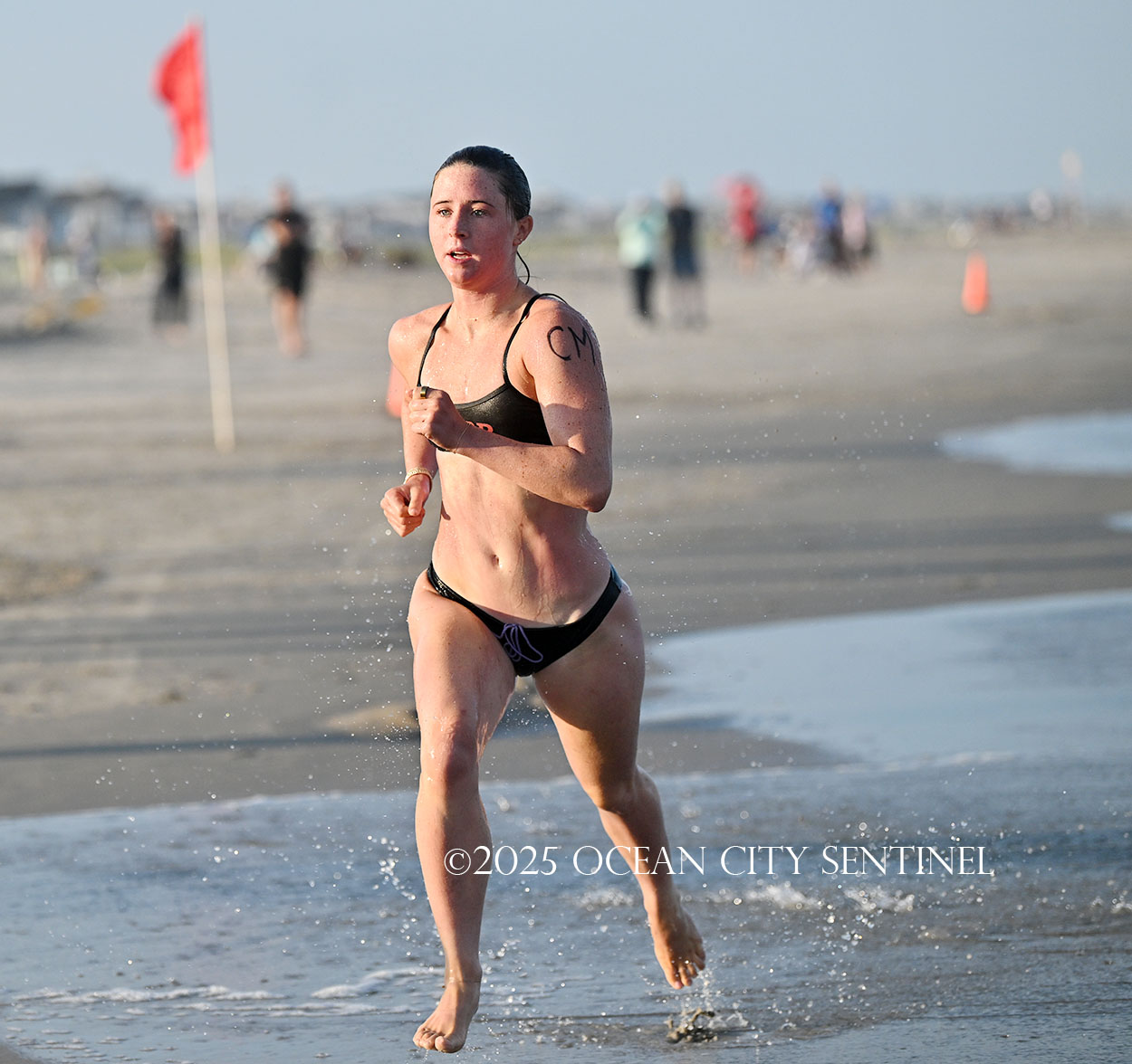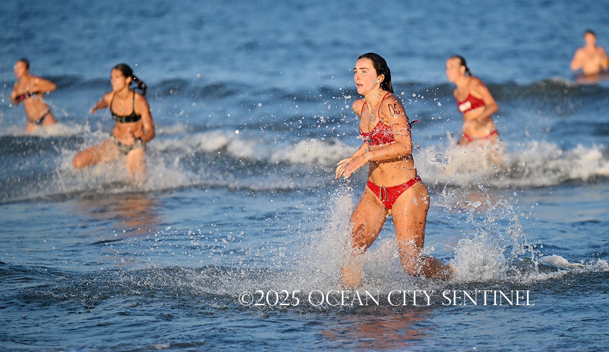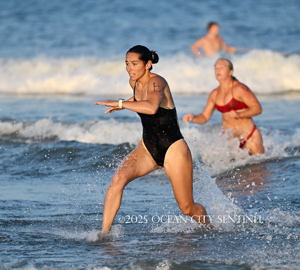 Care, a former champion runner with Ocean City High School, took the lead for Ocean City in the beach run, tagging fellow Red Raider Hays for the swim.