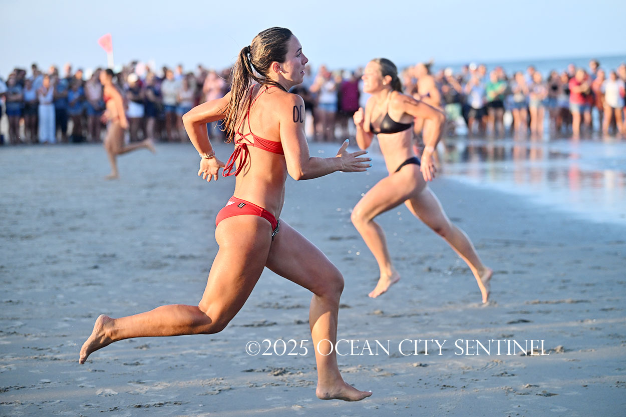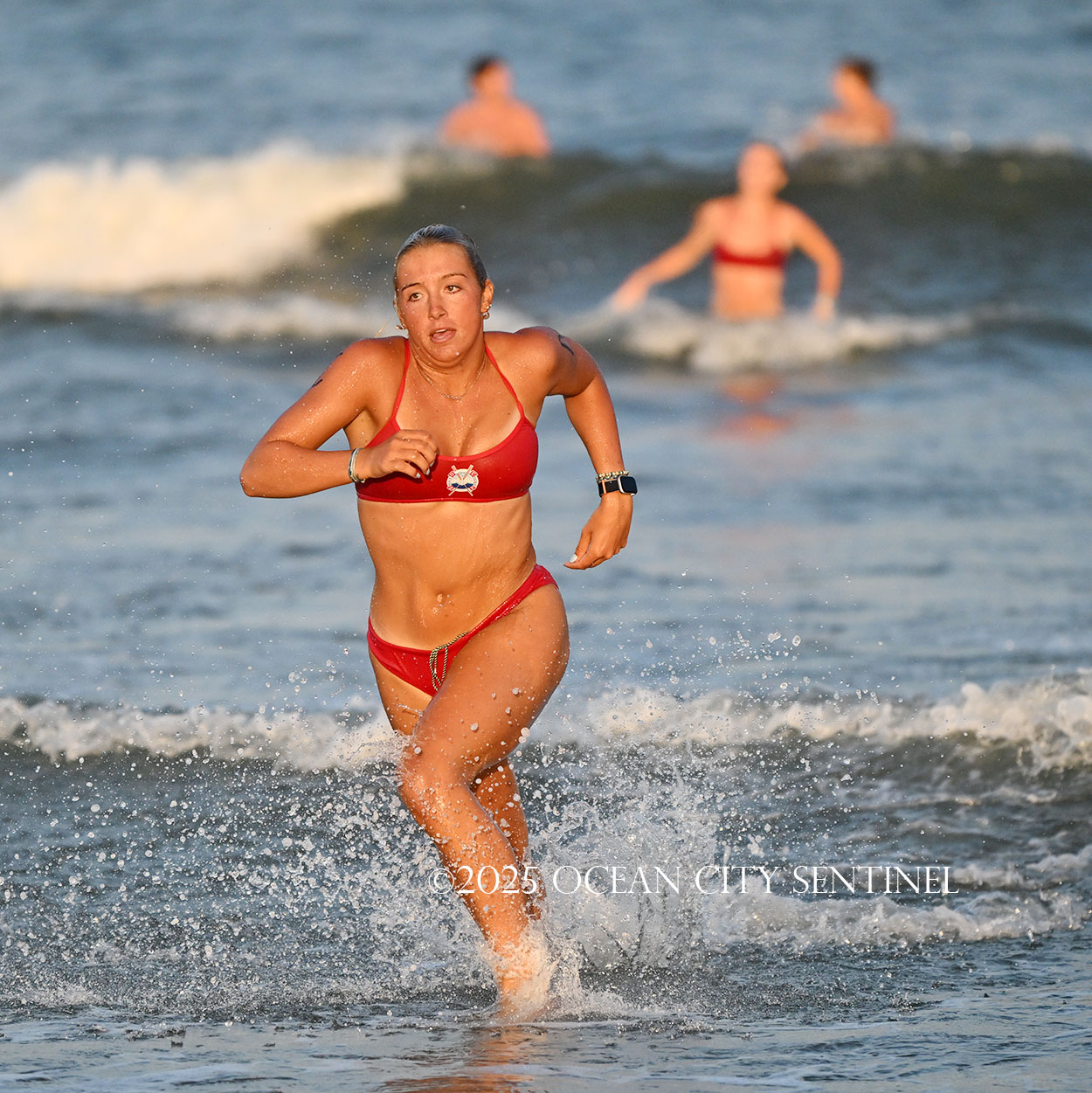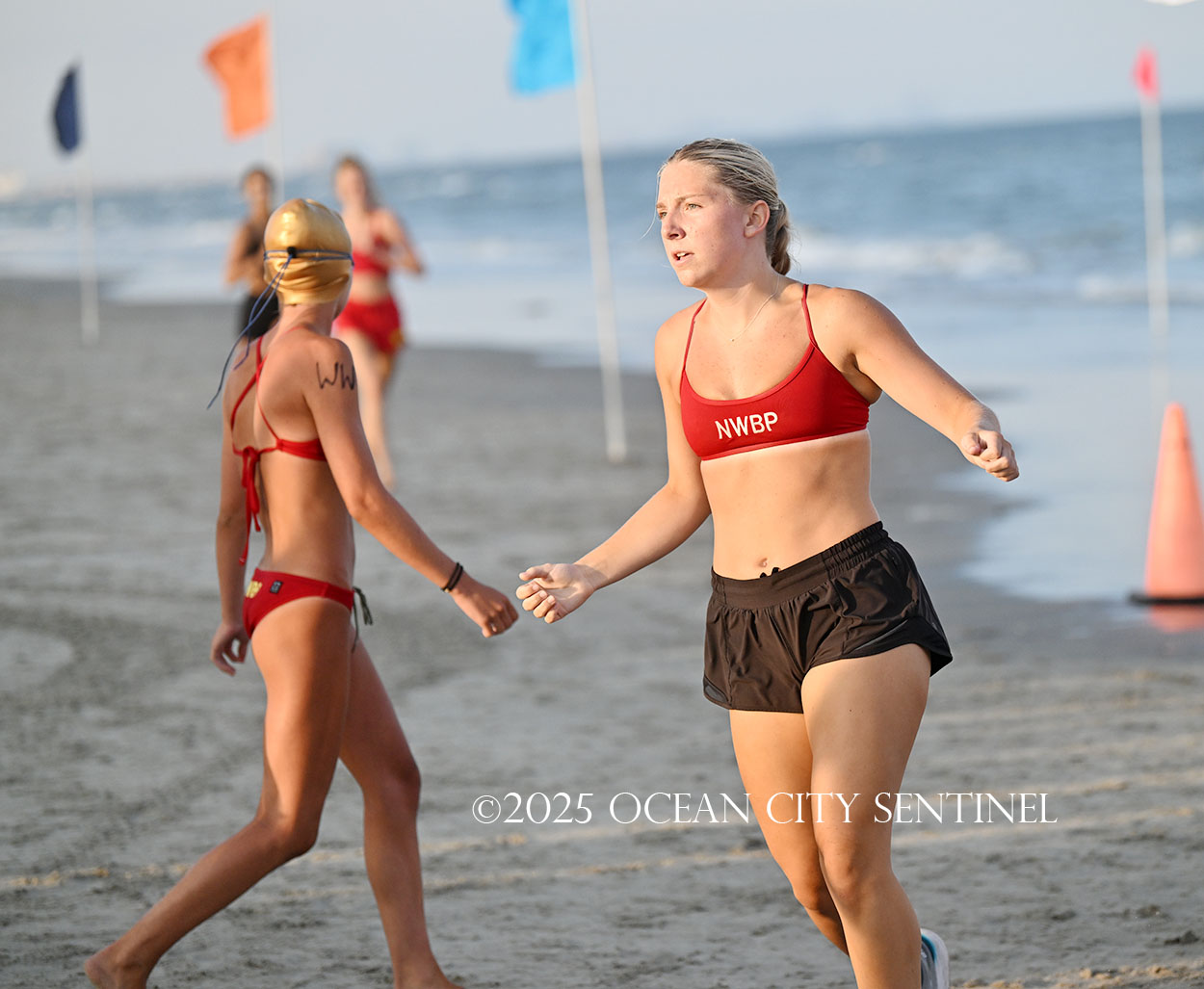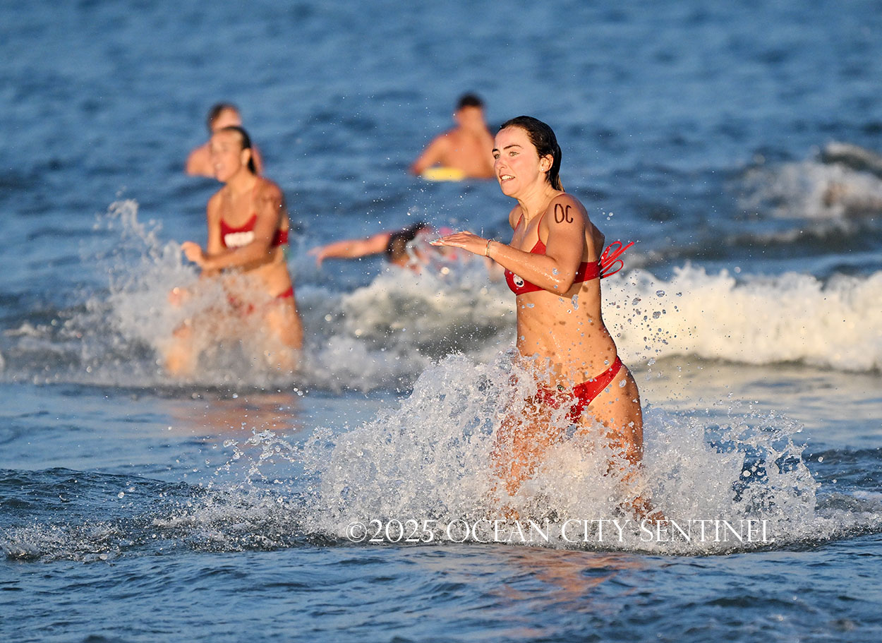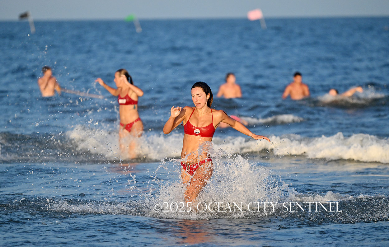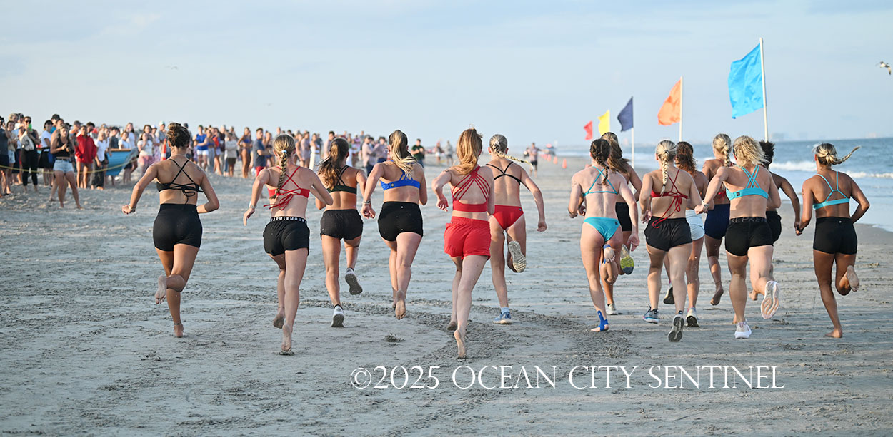 Care, a former champion runner with Ocean City High School, took the lead for Ocean City in the beach run, tagging fellow Red Raider Hays for the swim.