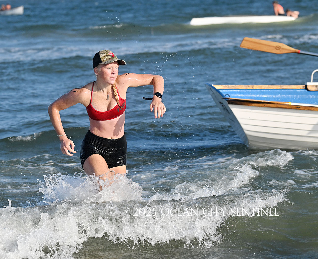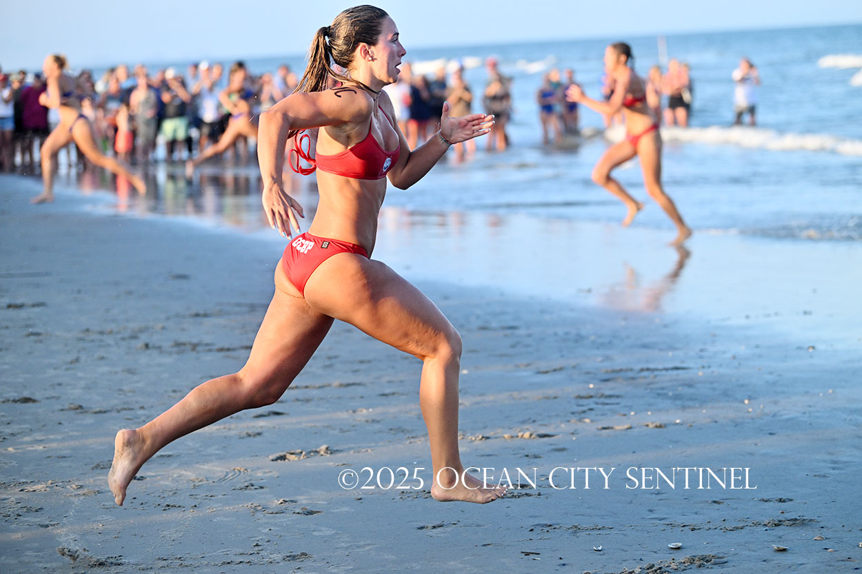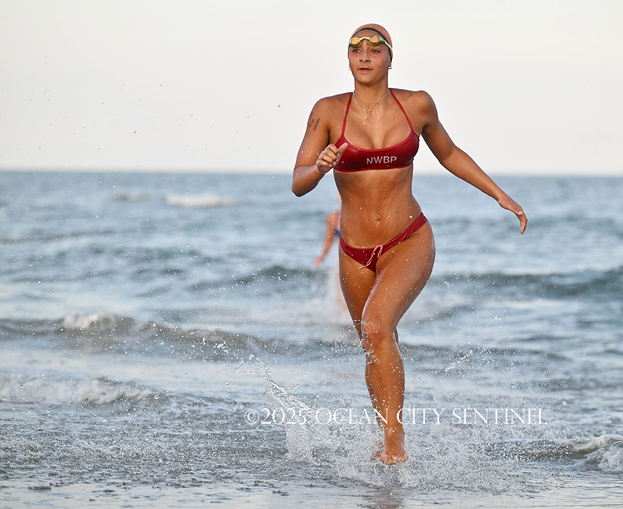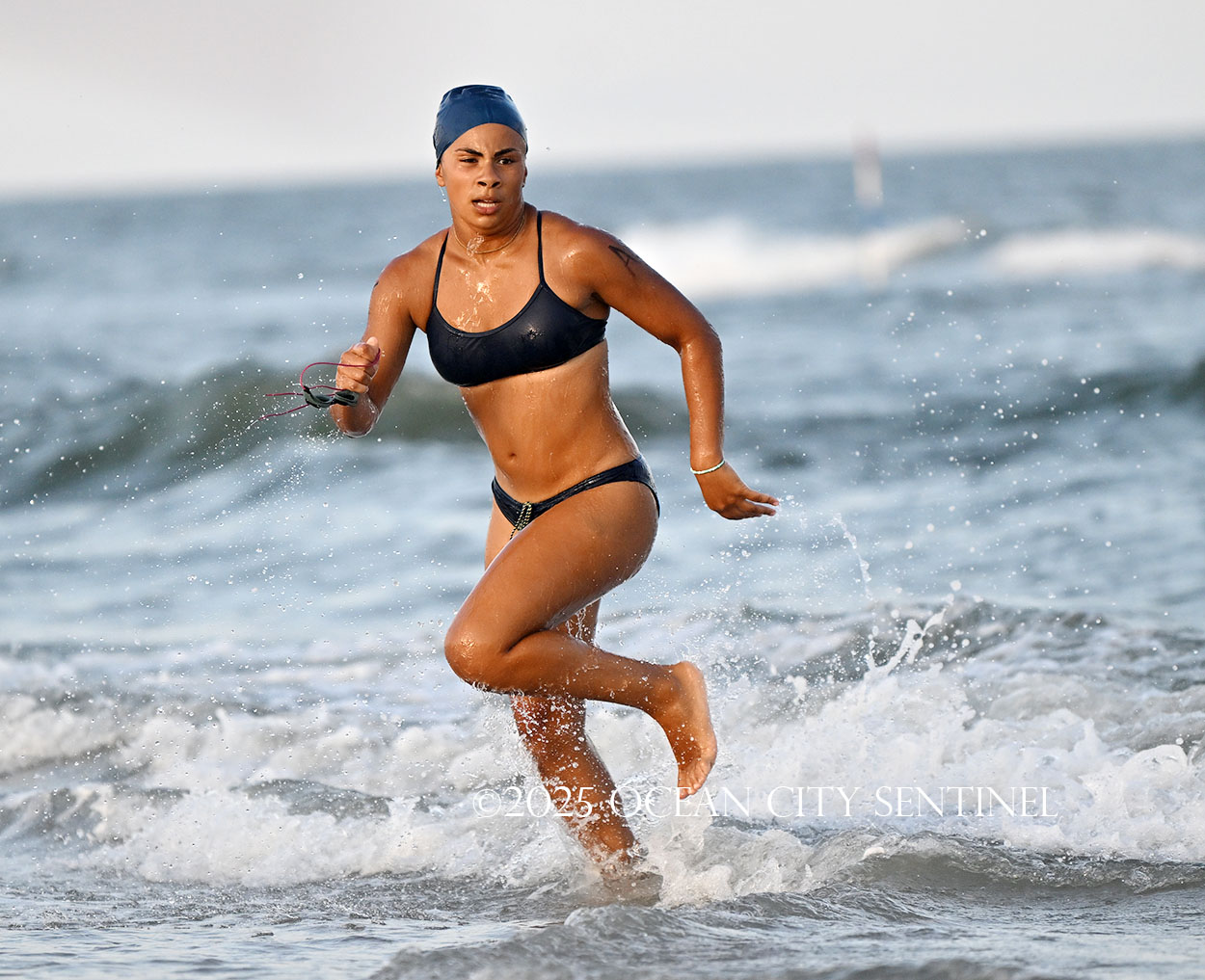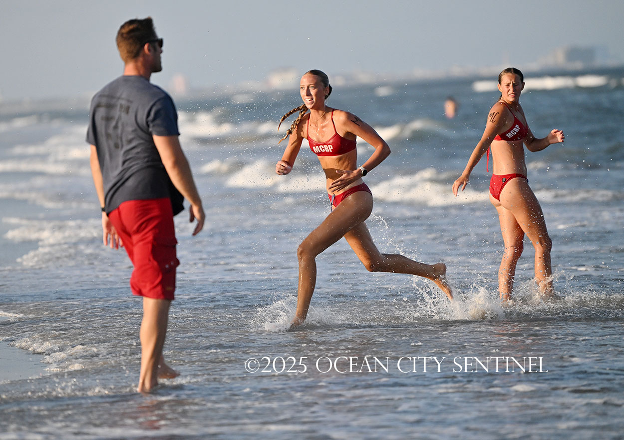 Care, a former champion runner with Ocean City High School, took the lead for Ocean City in the beach run, tagging fellow Red Raider Hays for the swim.