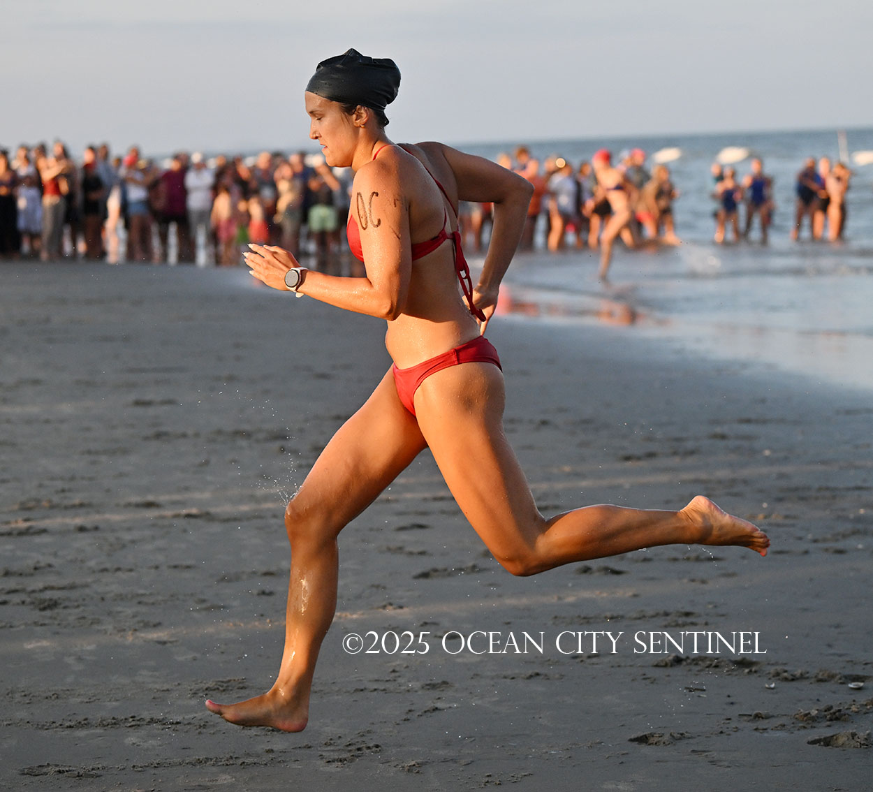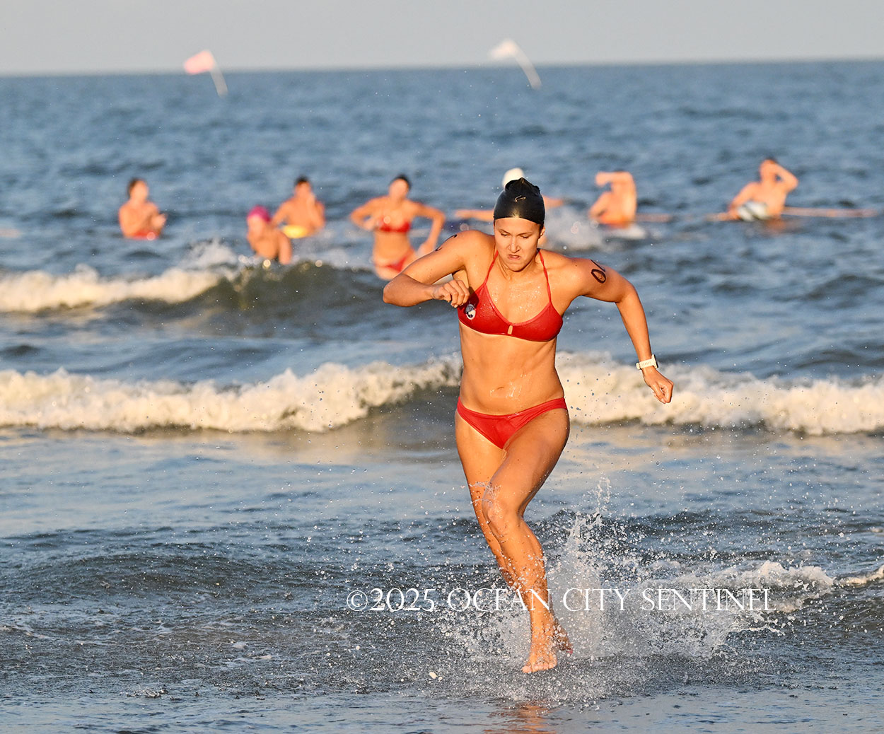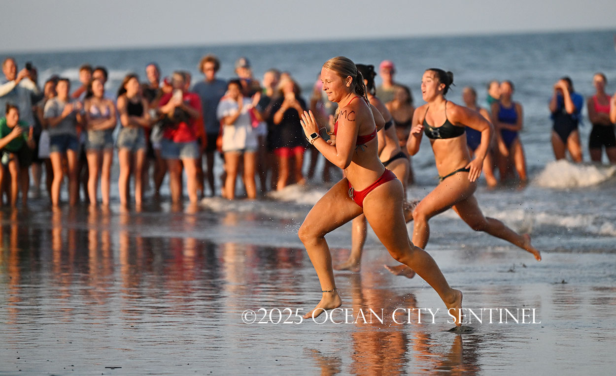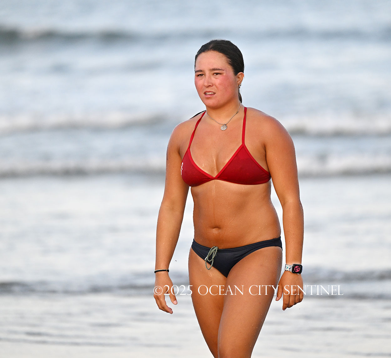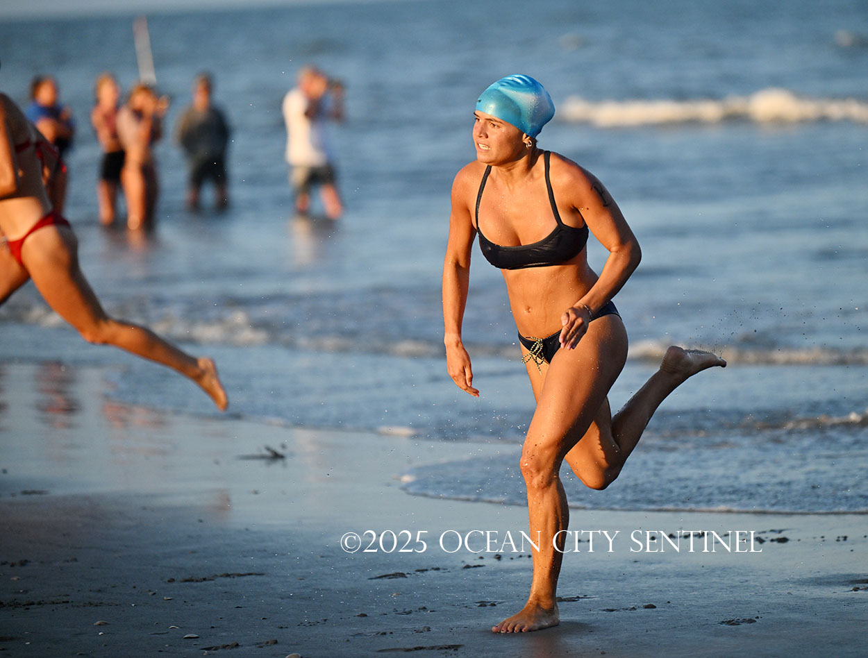 Care, a former champion runner with Ocean City High School, took the lead for Ocean City in the beach run, tagging fellow Red Raider Hays for the swim.