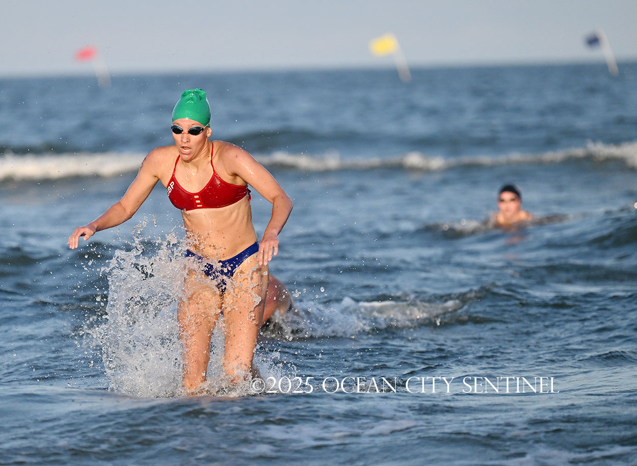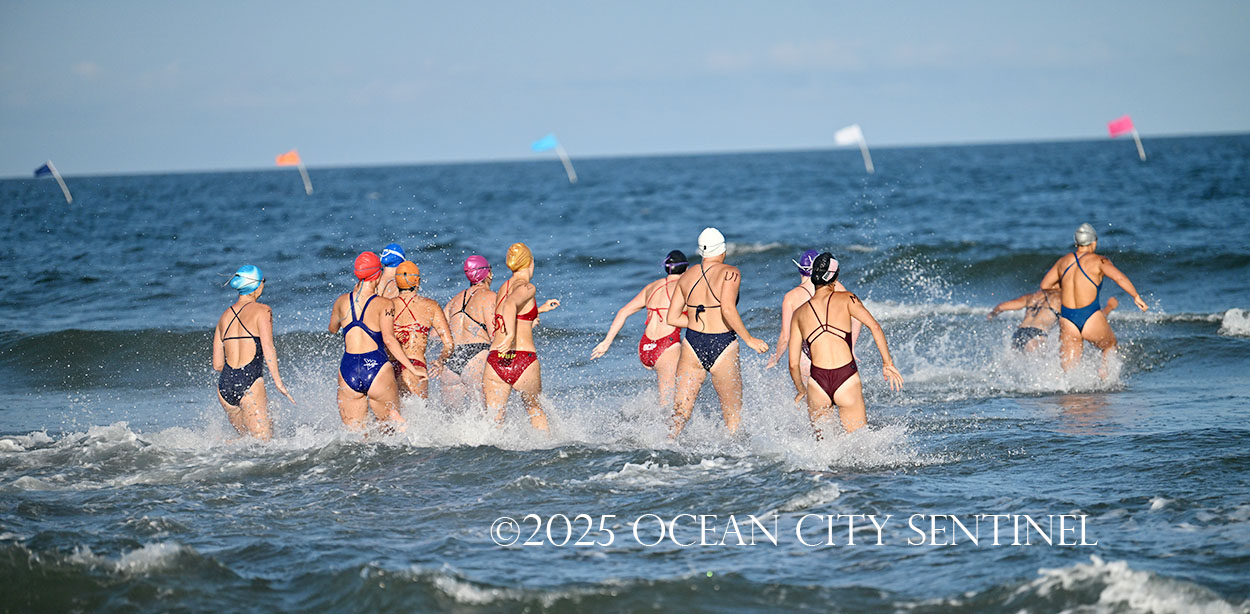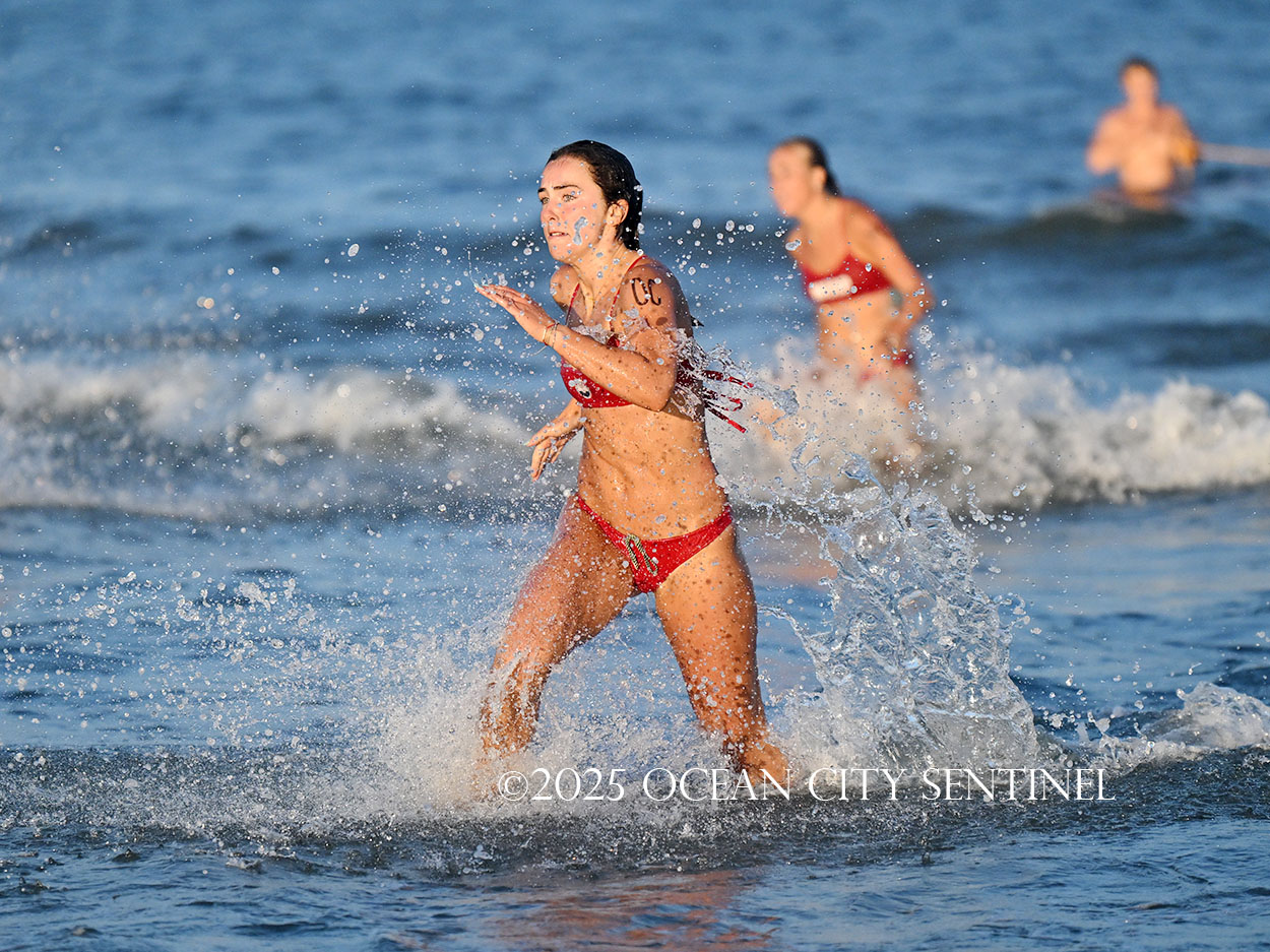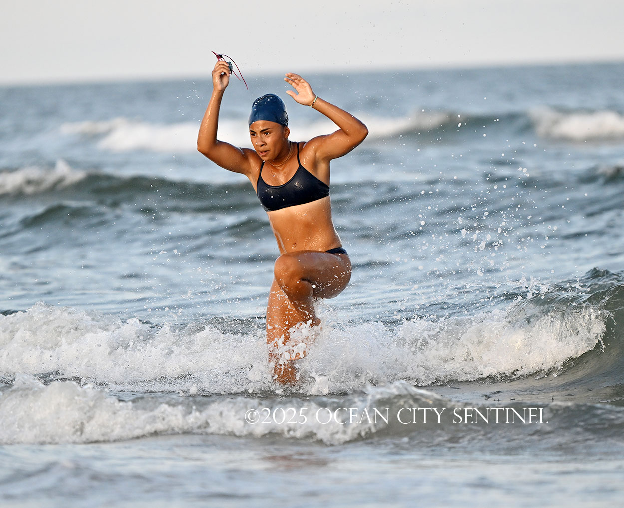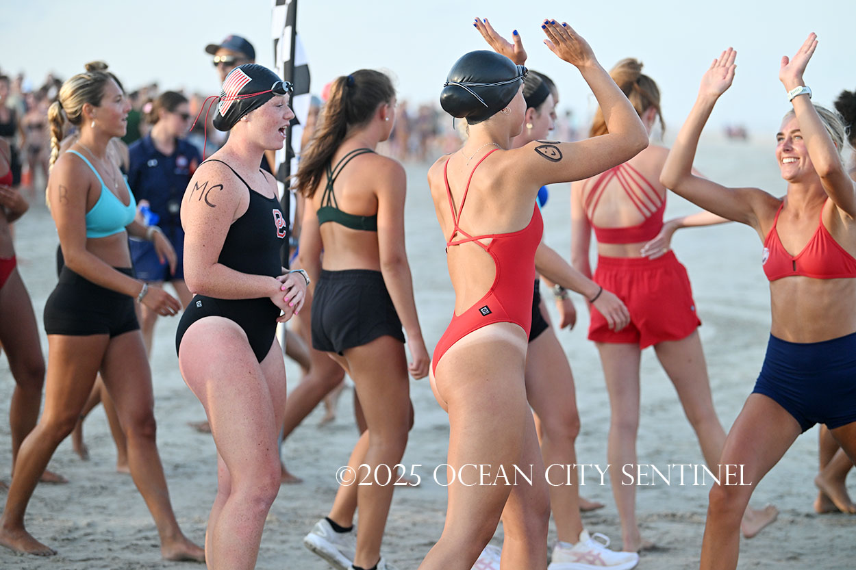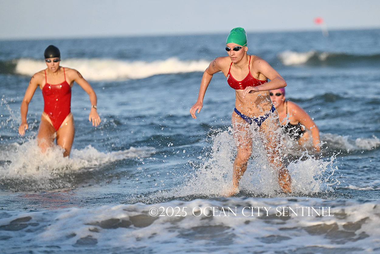 Care, a former champion runner with Ocean City High School, took the lead for Ocean City in the beach run, tagging fellow Red Raider Hays for the swim.