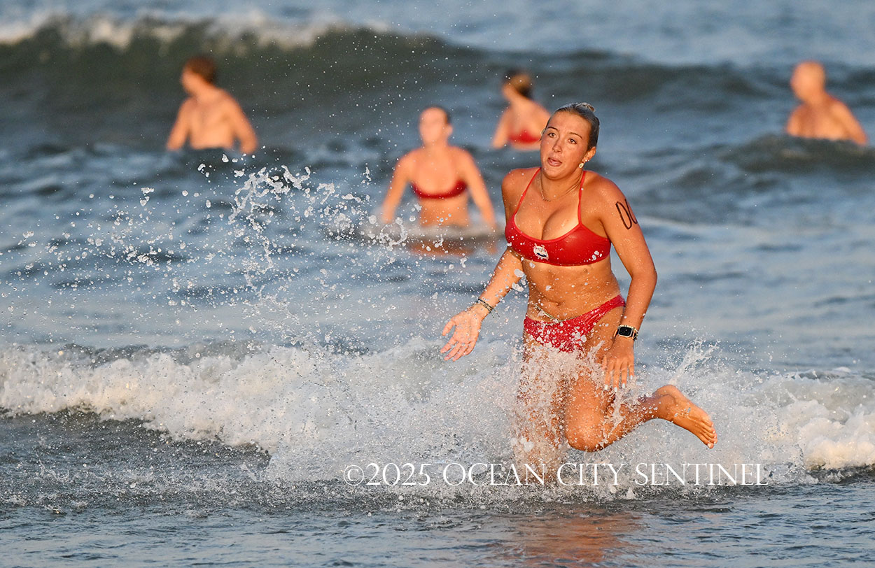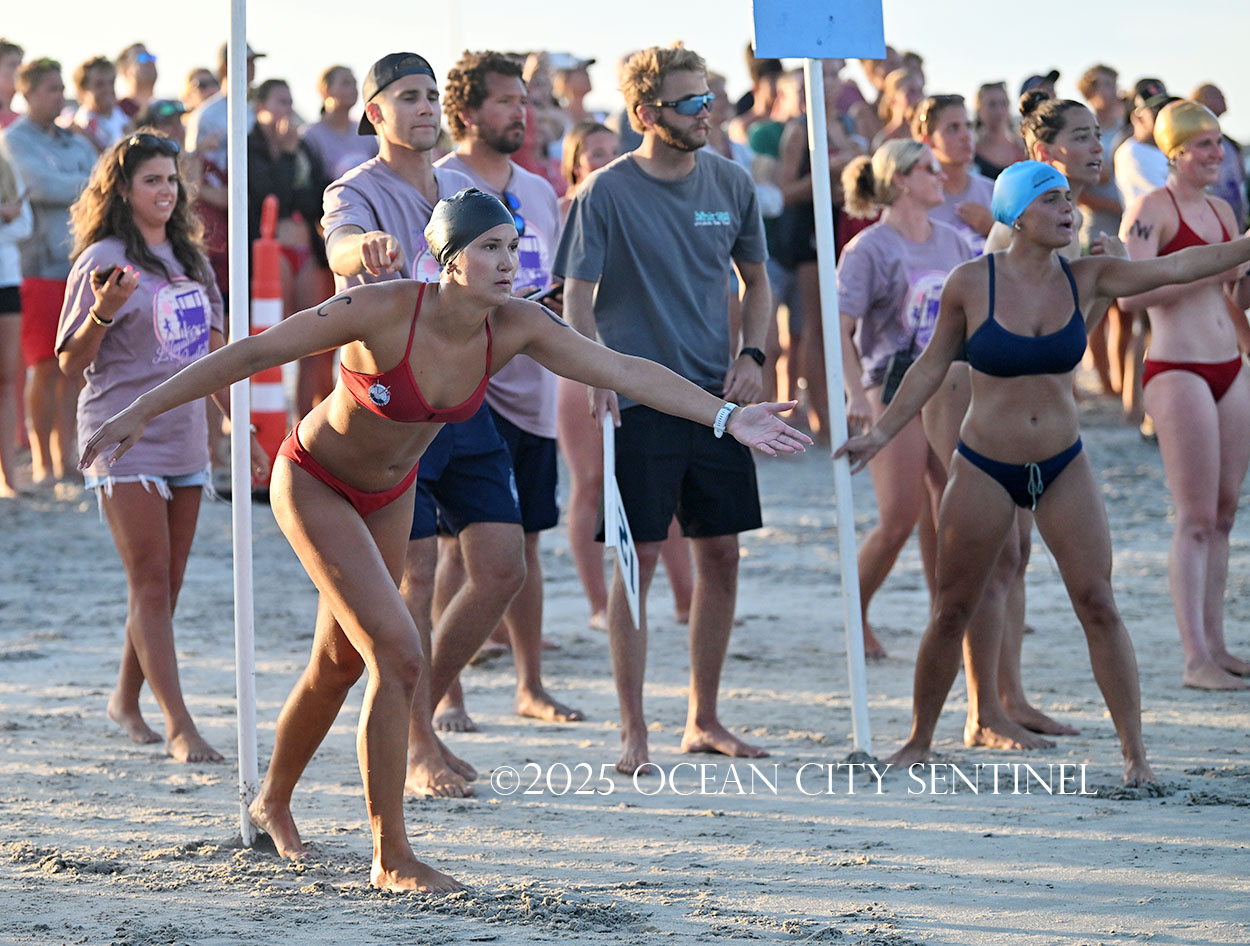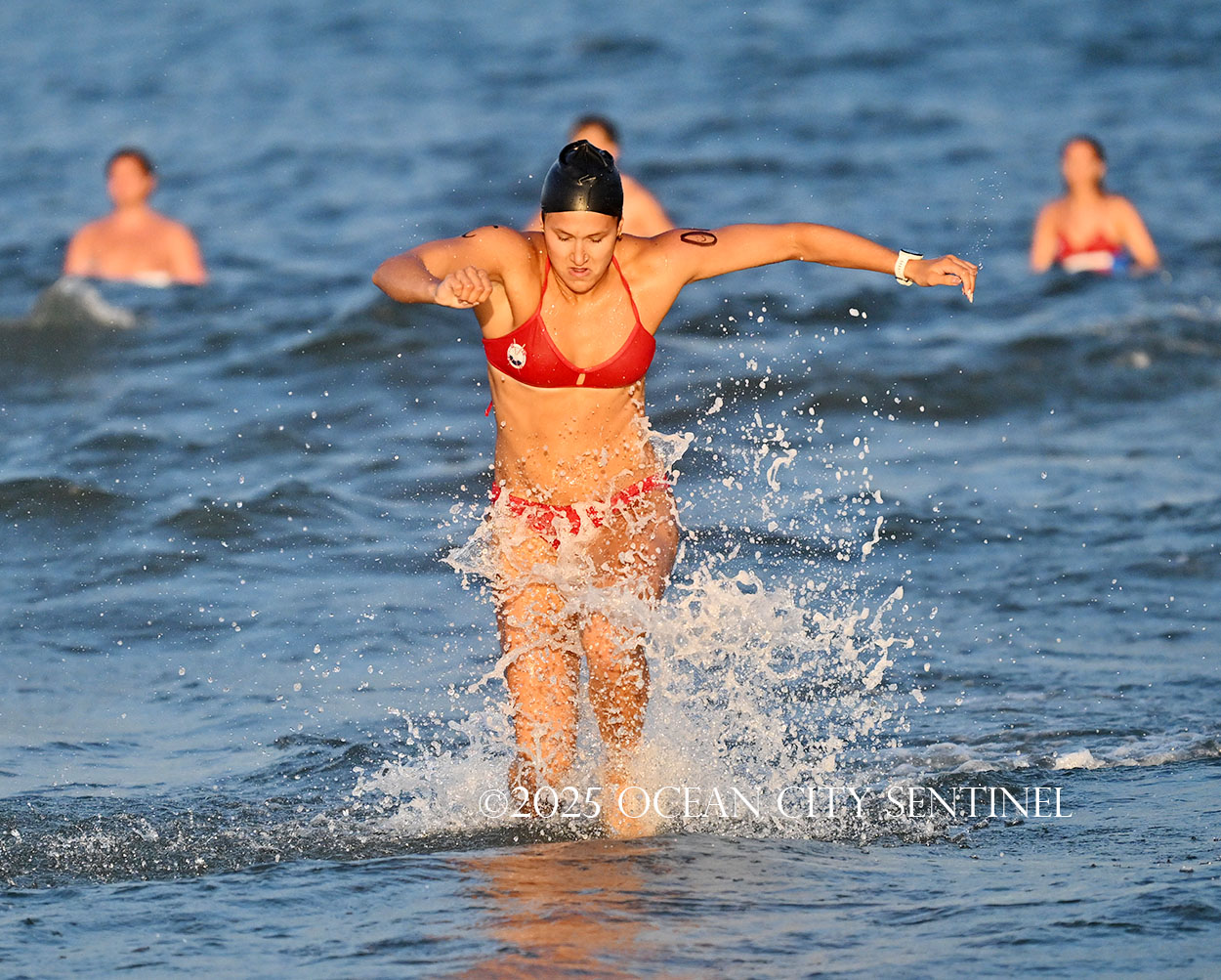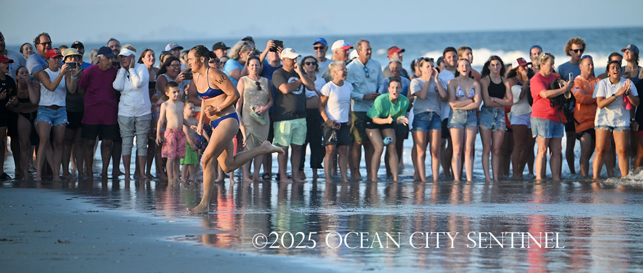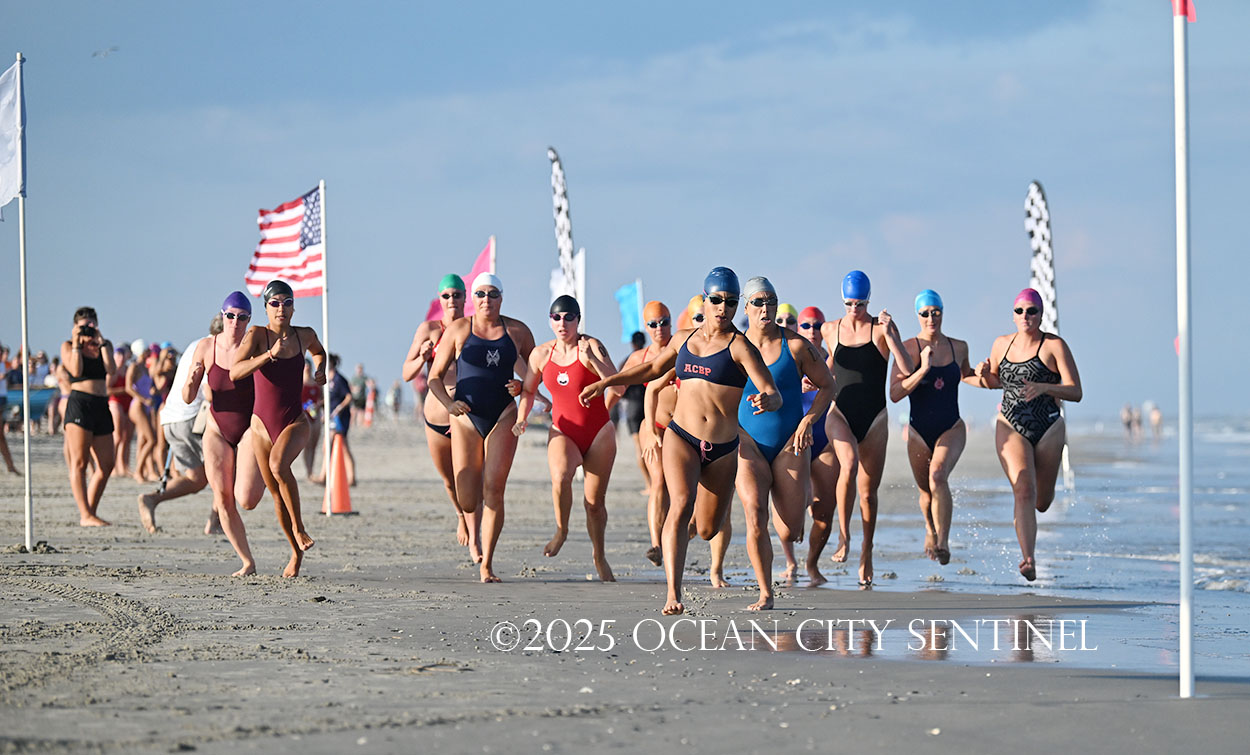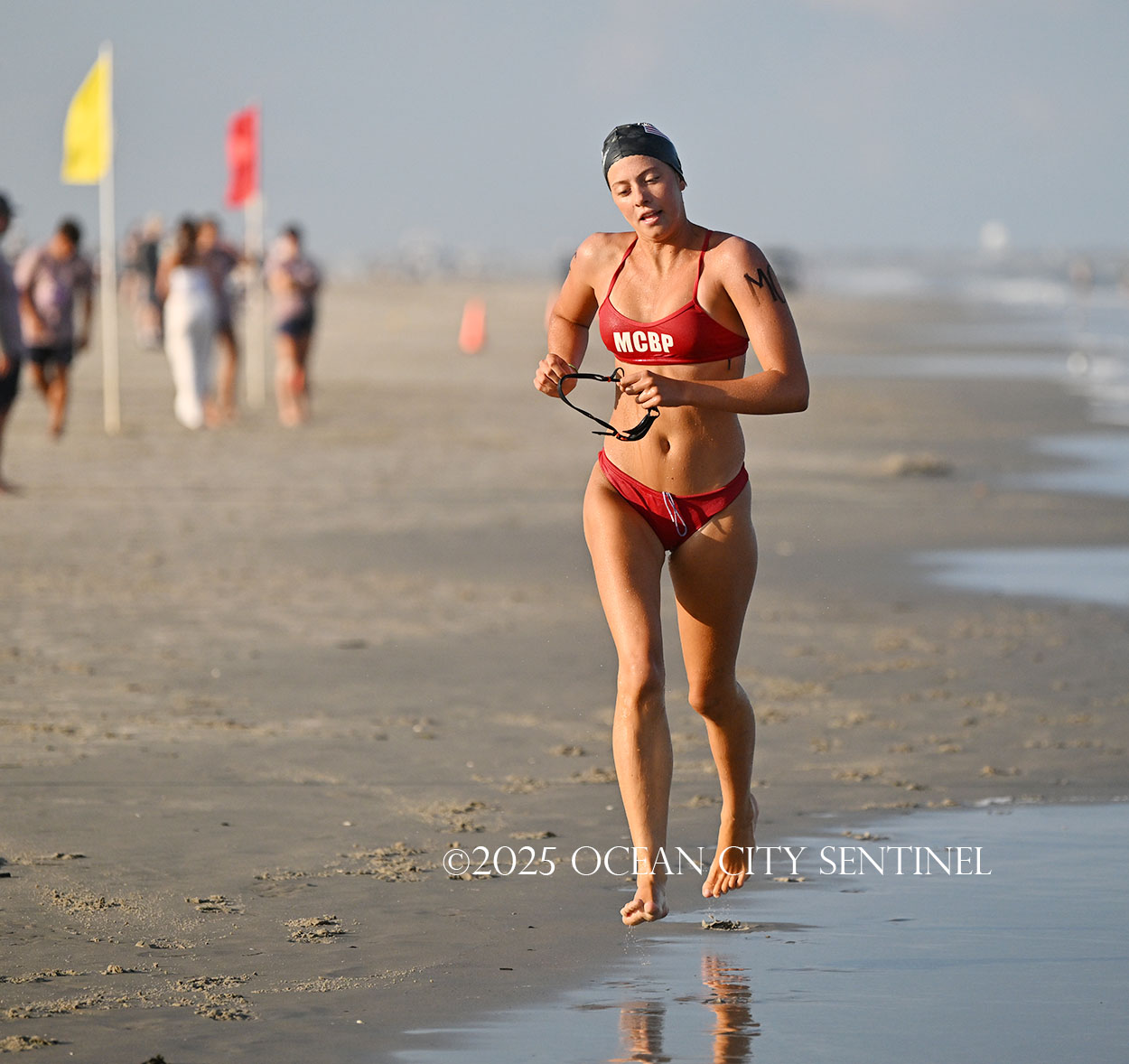 Care, a former champion runner with Ocean City High School, took the lead for Ocean City in the beach run, tagging fellow Red Raider Hays for the swim.