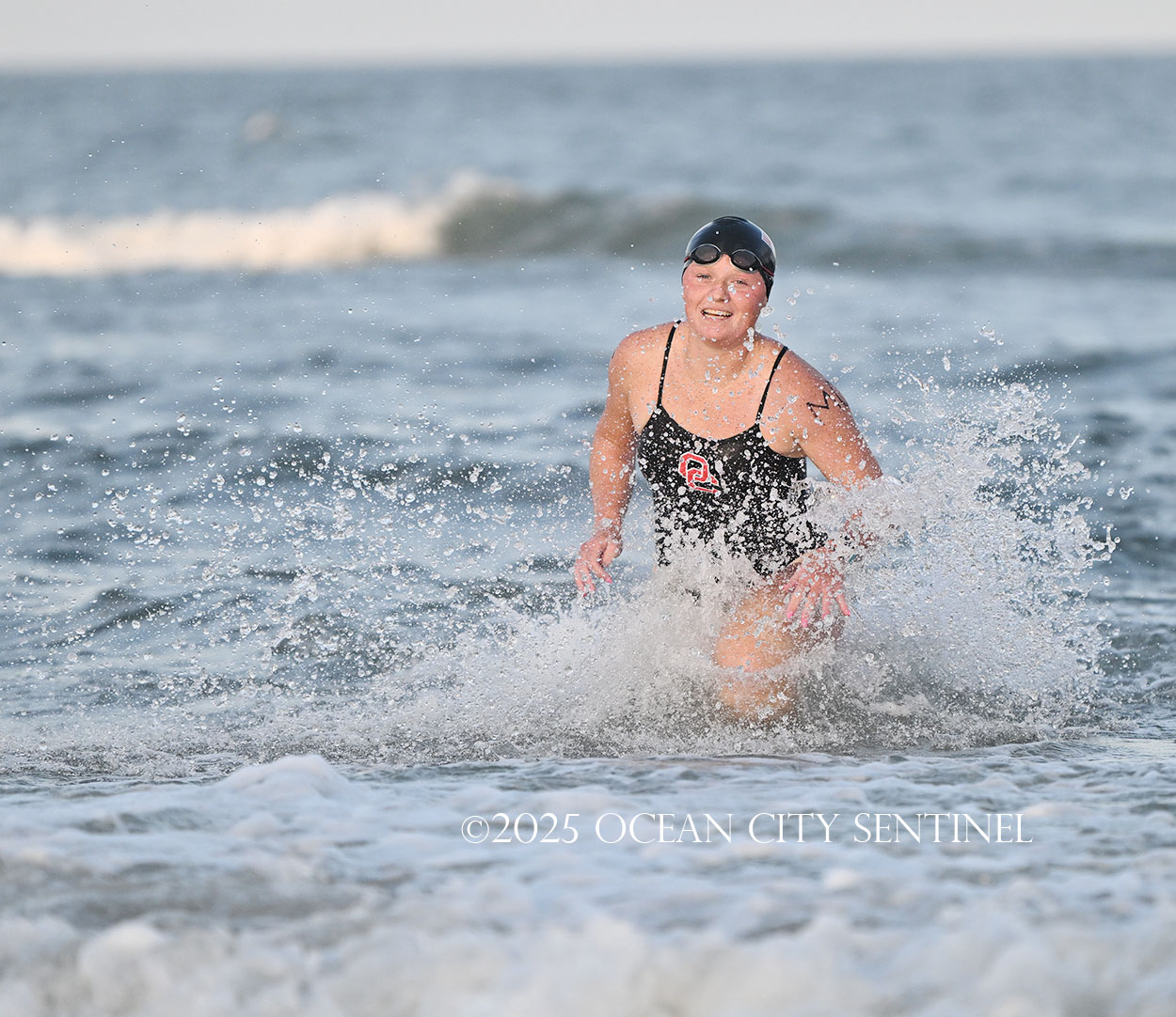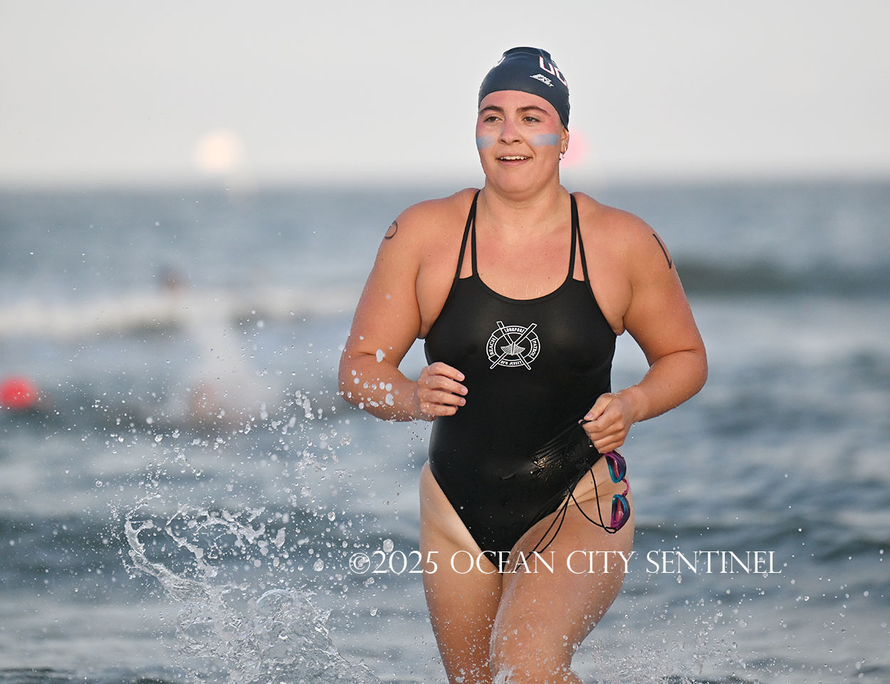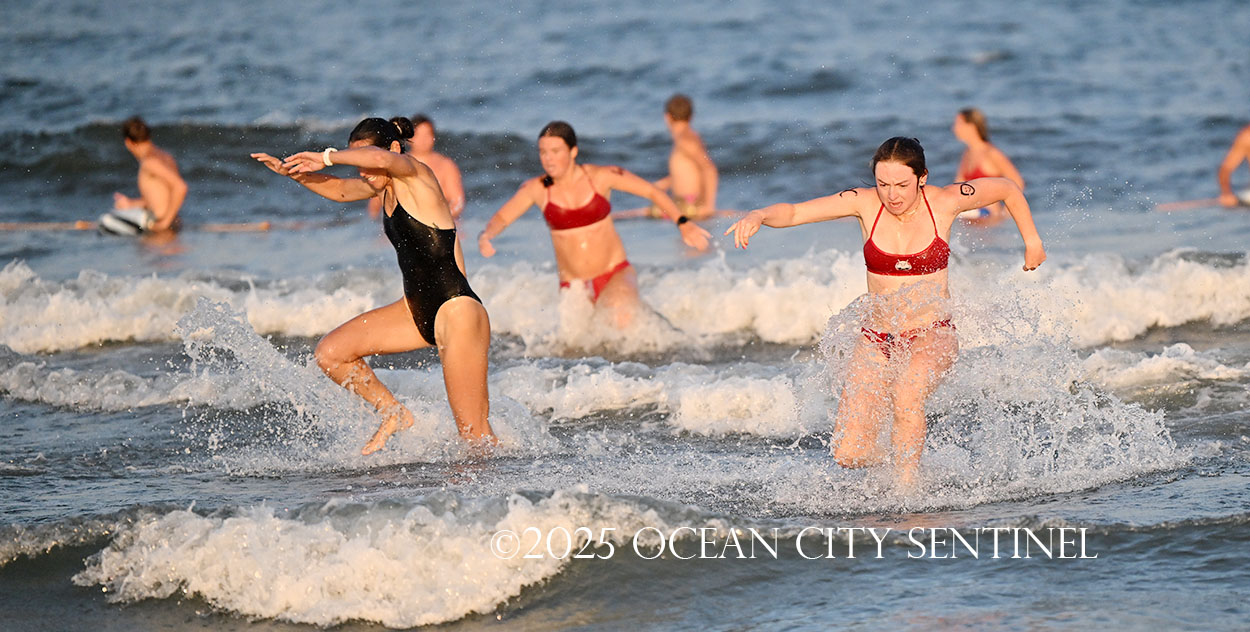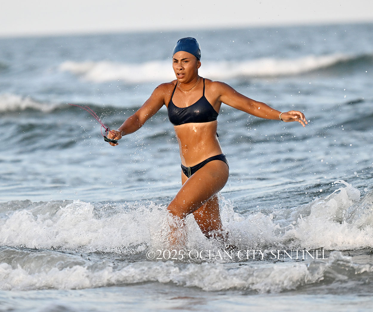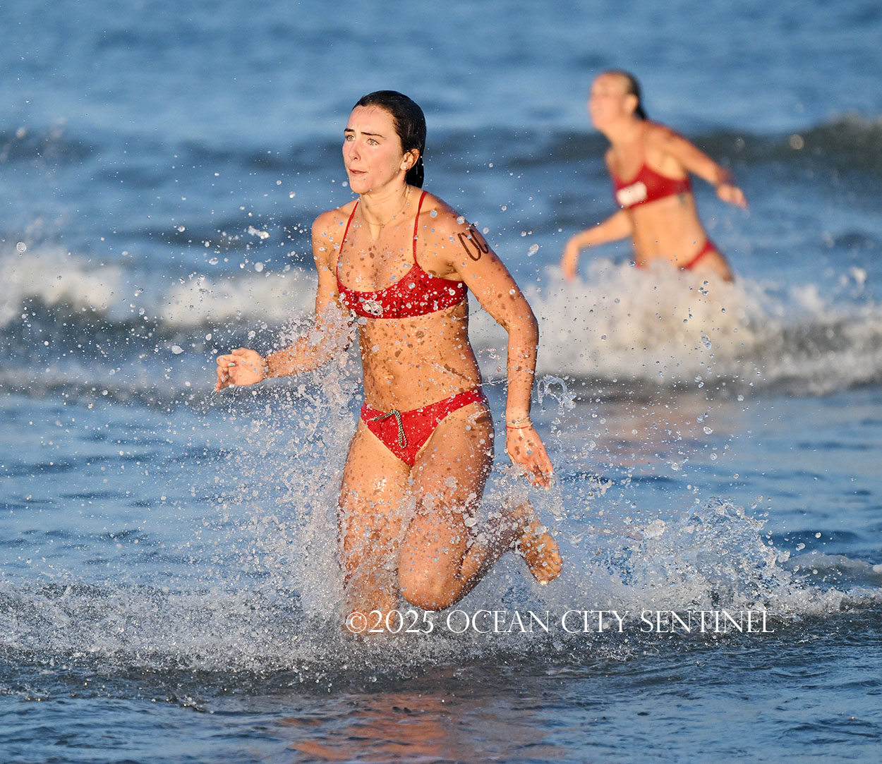 Care, a former champion runner with Ocean City High School, took the lead for Ocean City in the beach run, tagging fellow Red Raider Hays for the swim.