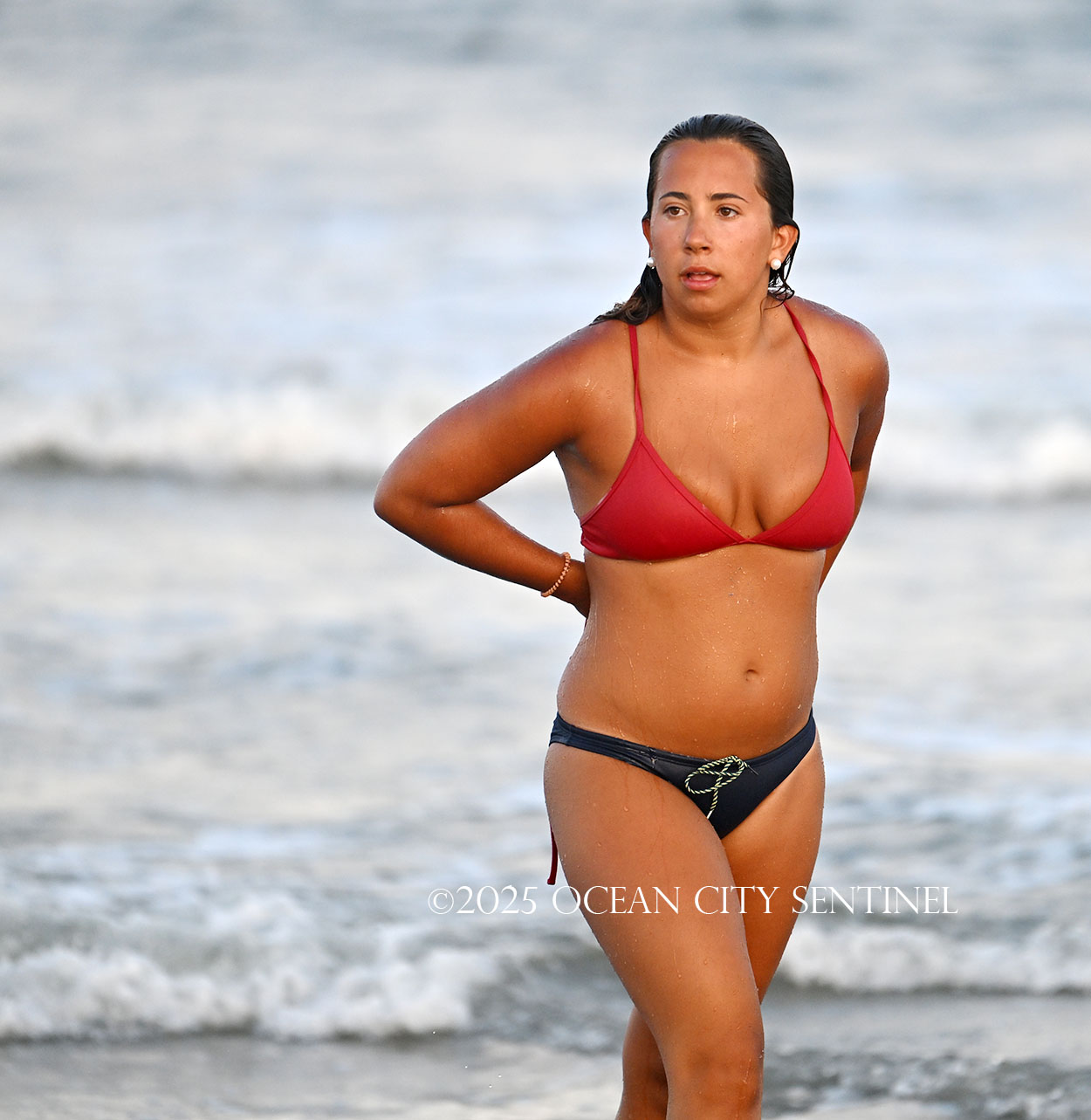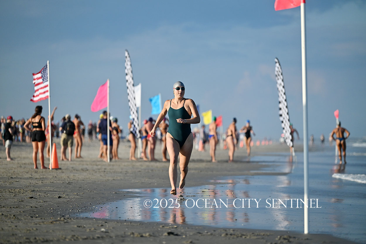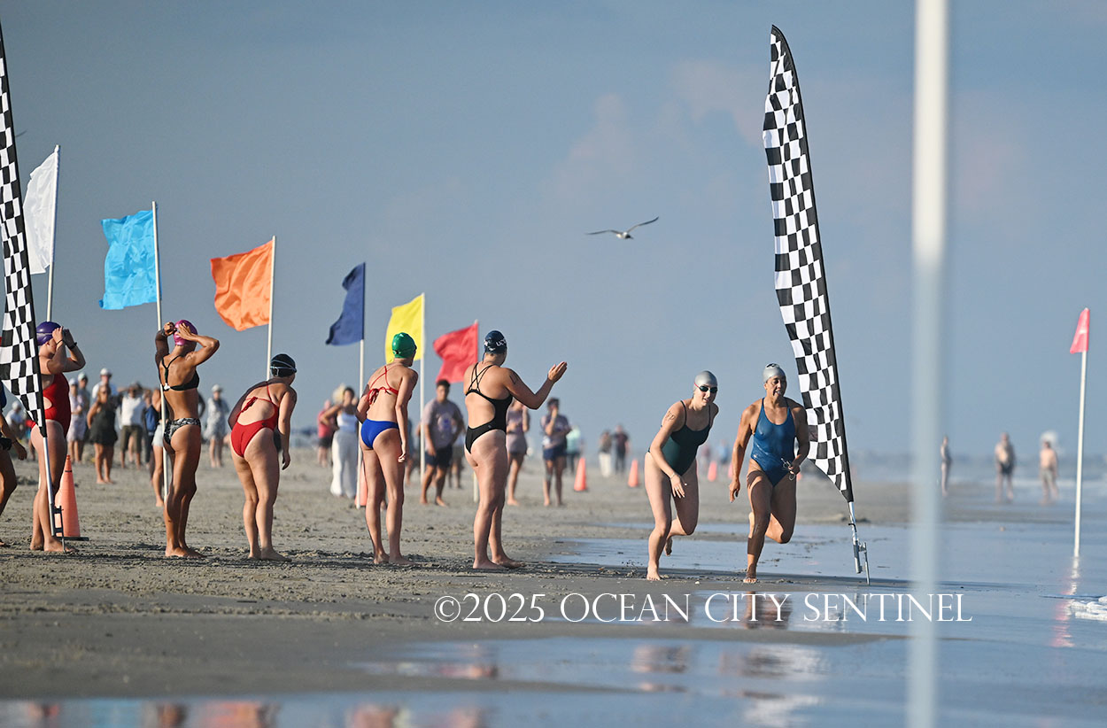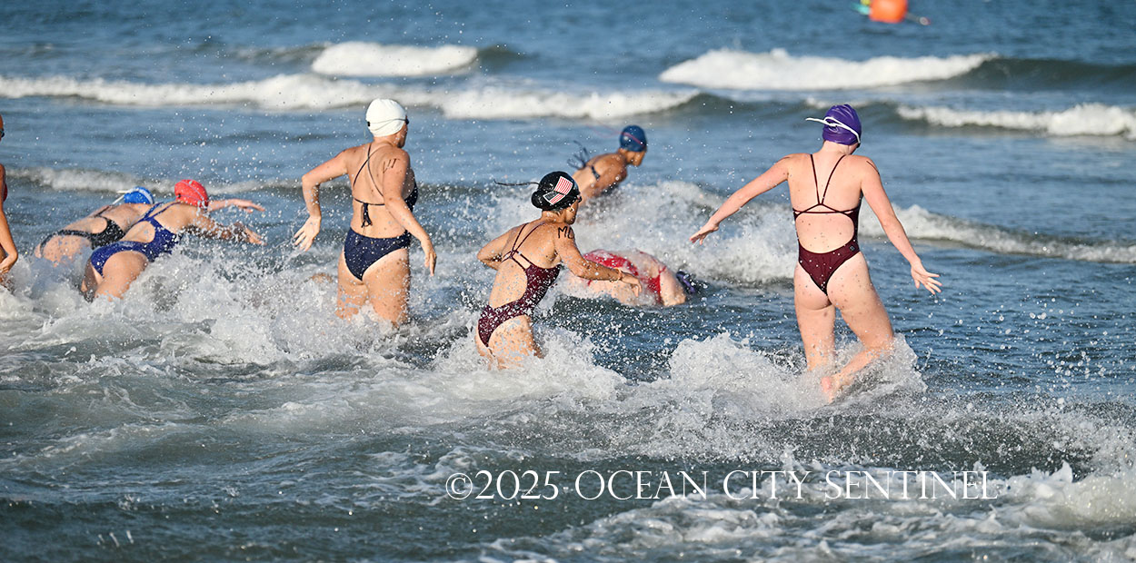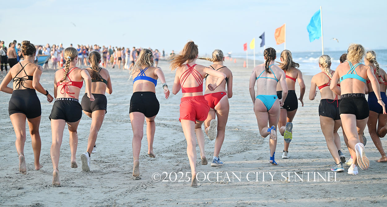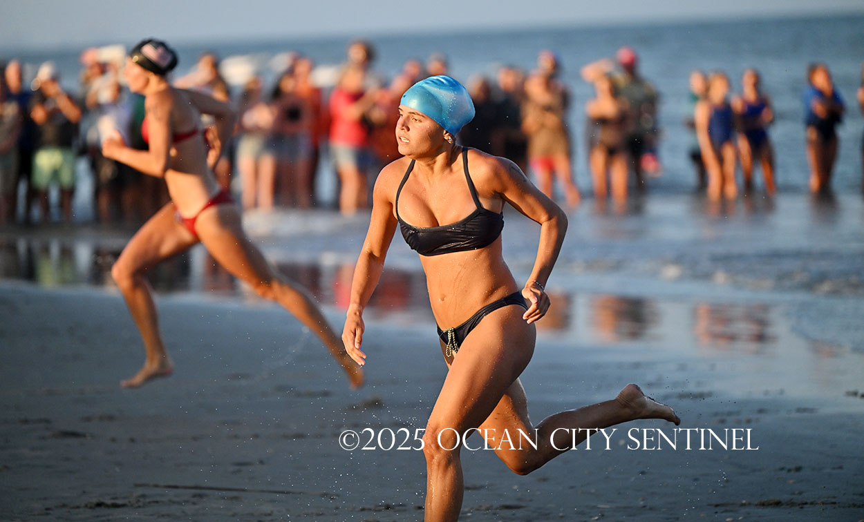 Care, a former champion runner with Ocean City High School, took the lead for Ocean City in the beach run, tagging fellow Red Raider Hays for the swim.