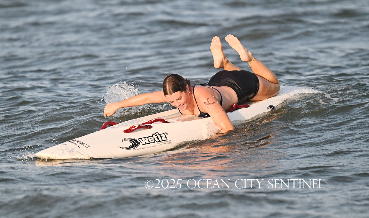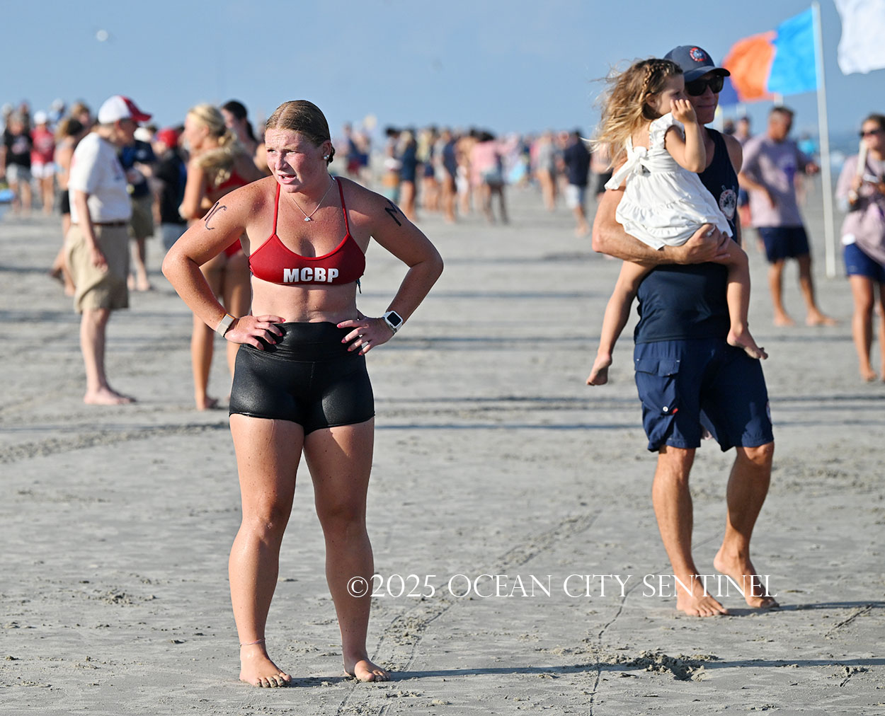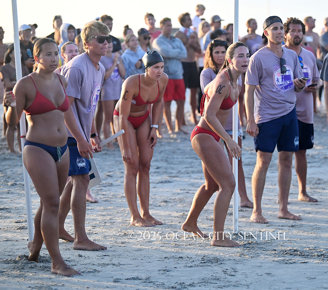 Lifeguards had gone off-duty, but many of the beachgoers stayed through the event, watching as the top women guards from 14 patrols competed in the sprint doubles row, swim relay, paddle relay, run/swim and surf dash competitions.