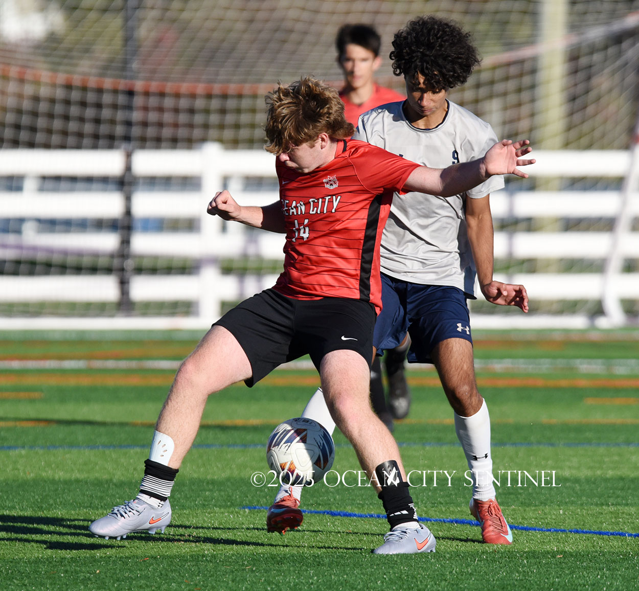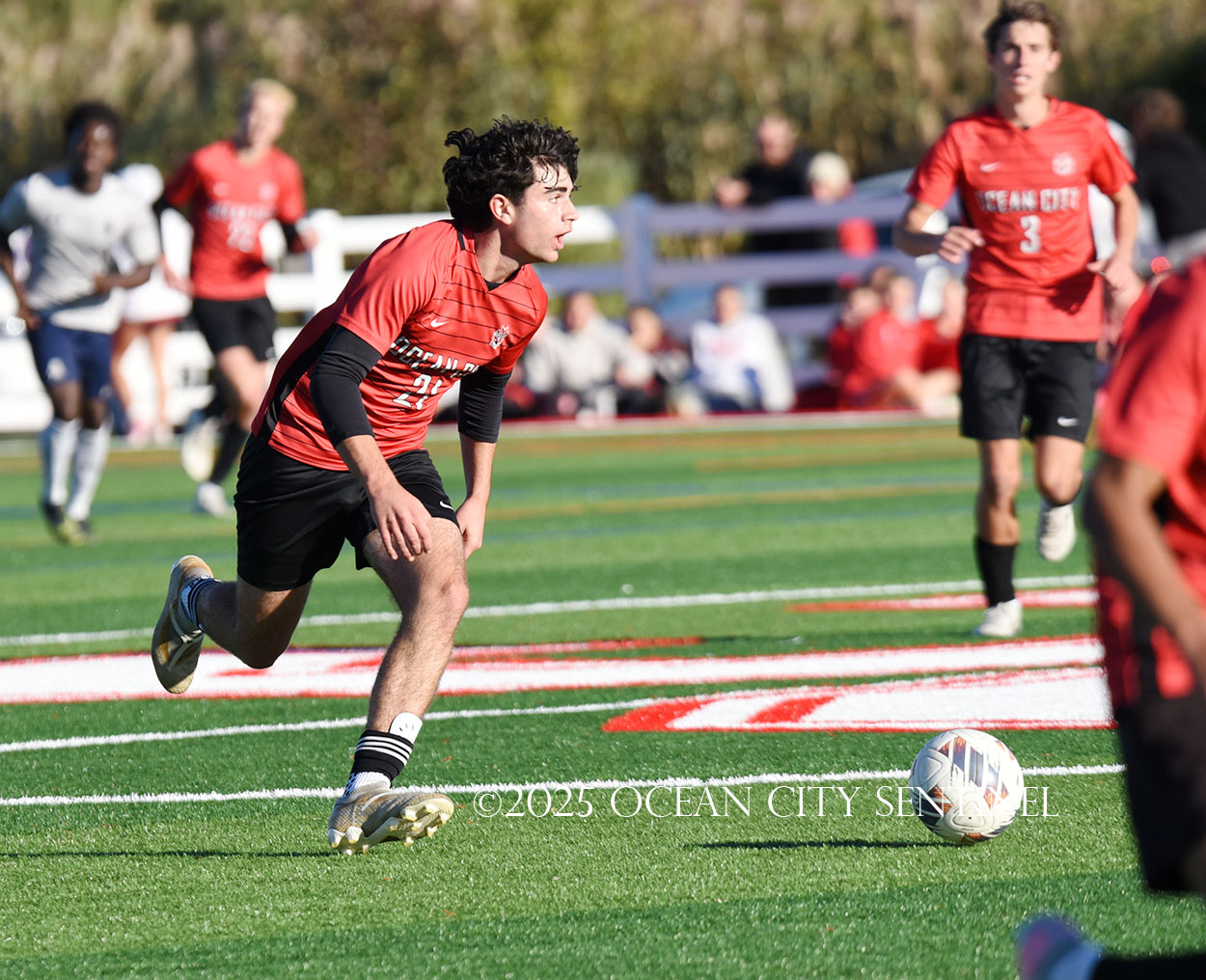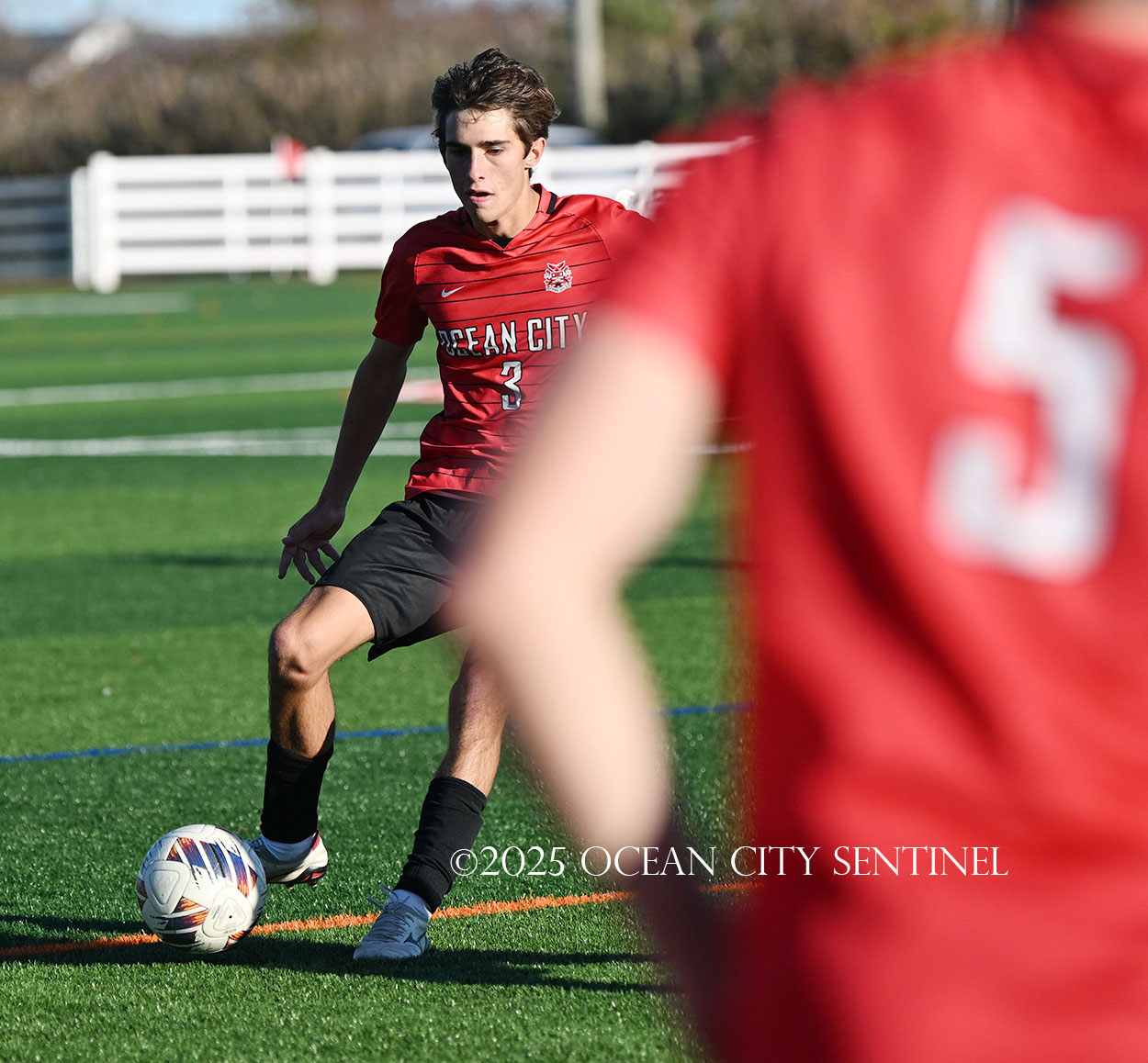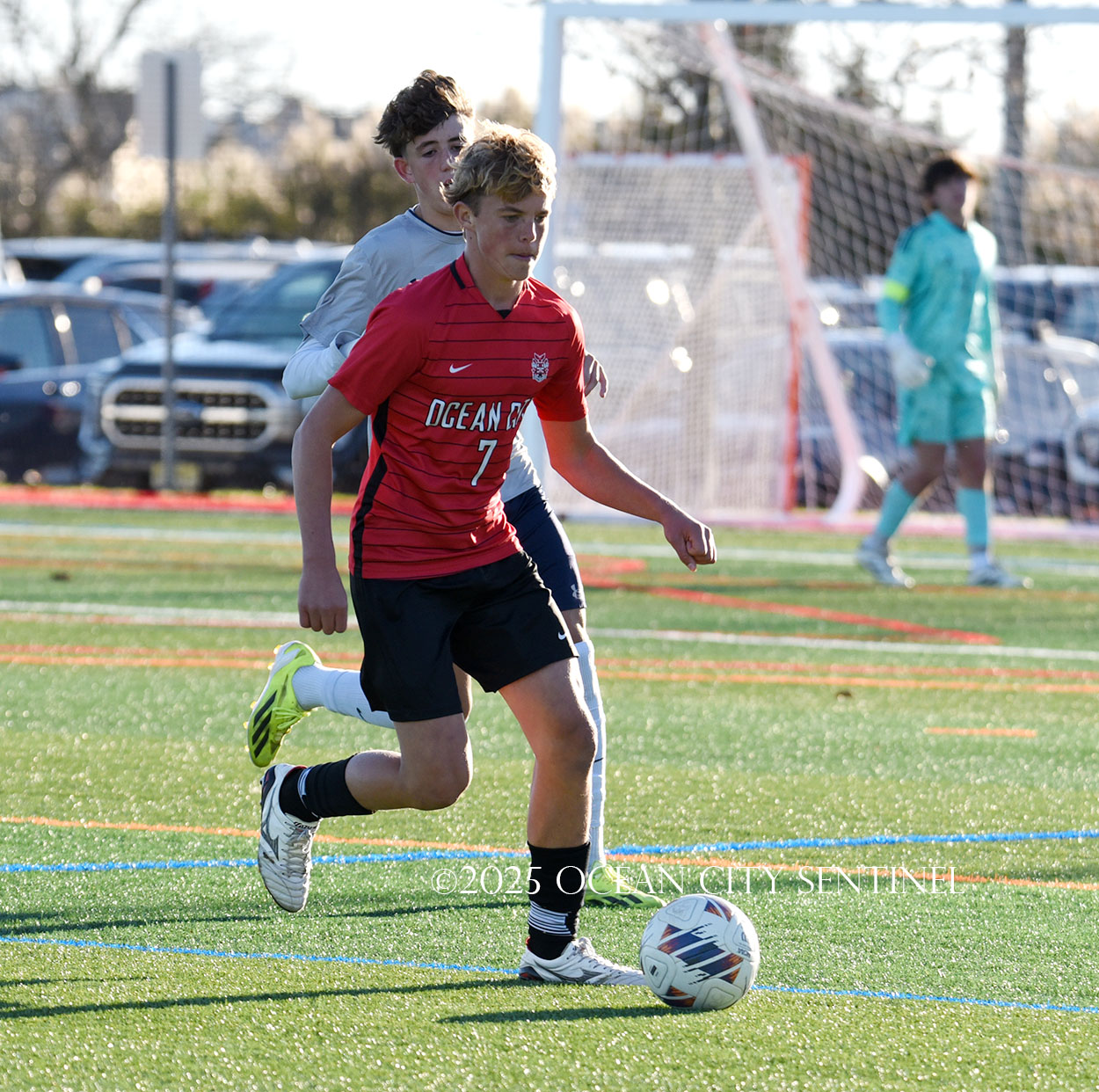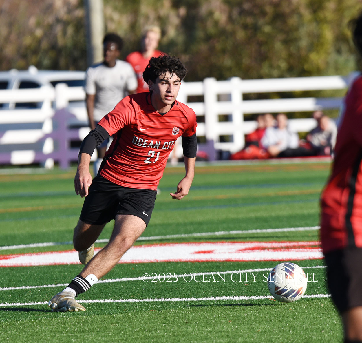 Ocean City was in complete control of the ball for most of the game but uncharacteristically struggled to finish in front of the net. Leading goal scorers Goodman and Chase Bowman had a couple of chances throughout the game, but never seemed in rhythm in the offensive end of the field.