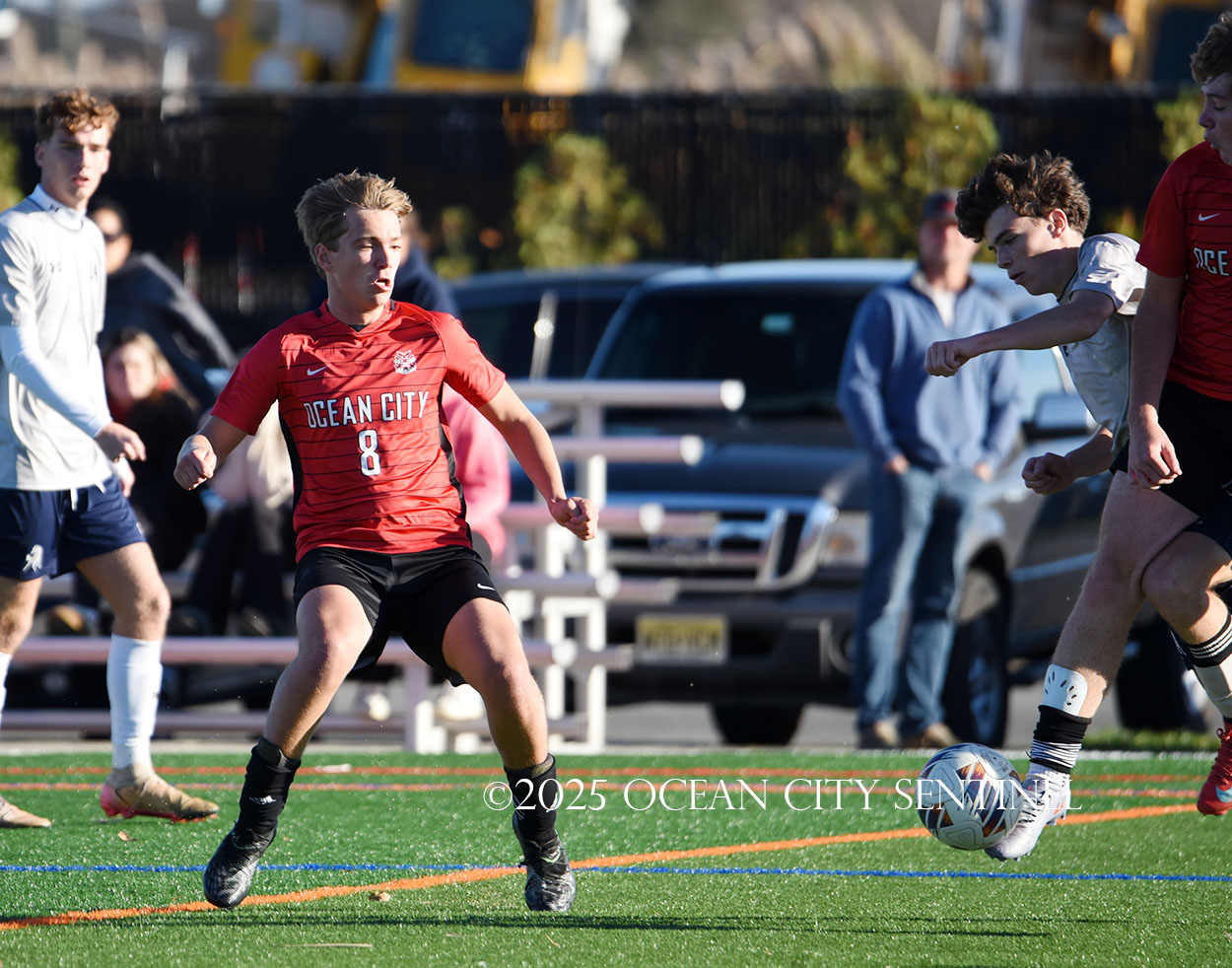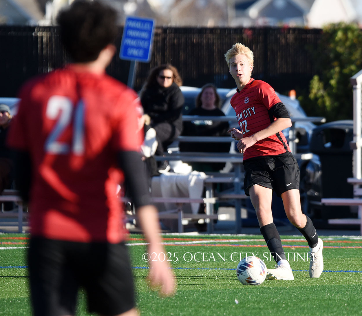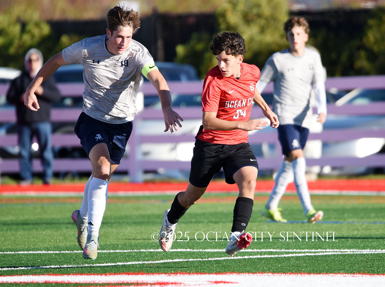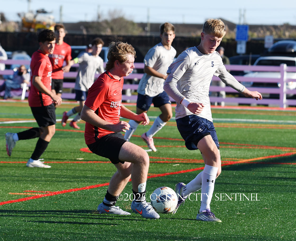 Ocean City was in complete control of the ball for most of the game but uncharacteristically struggled to finish in front of the net. Leading goal scorers Goodman and Chase Bowman had a couple of chances throughout the game, but never seemed in rhythm in the offensive end of the field.