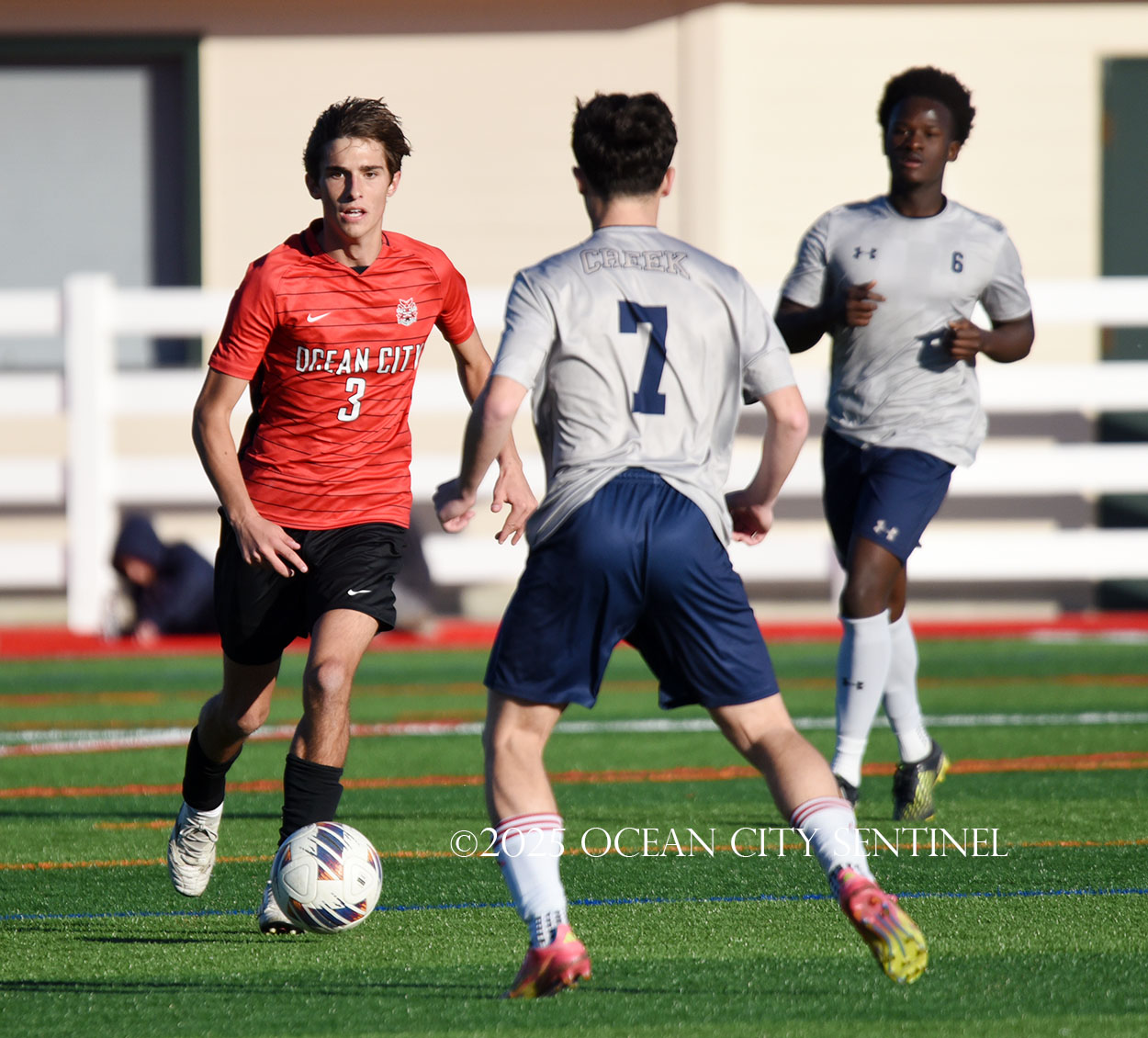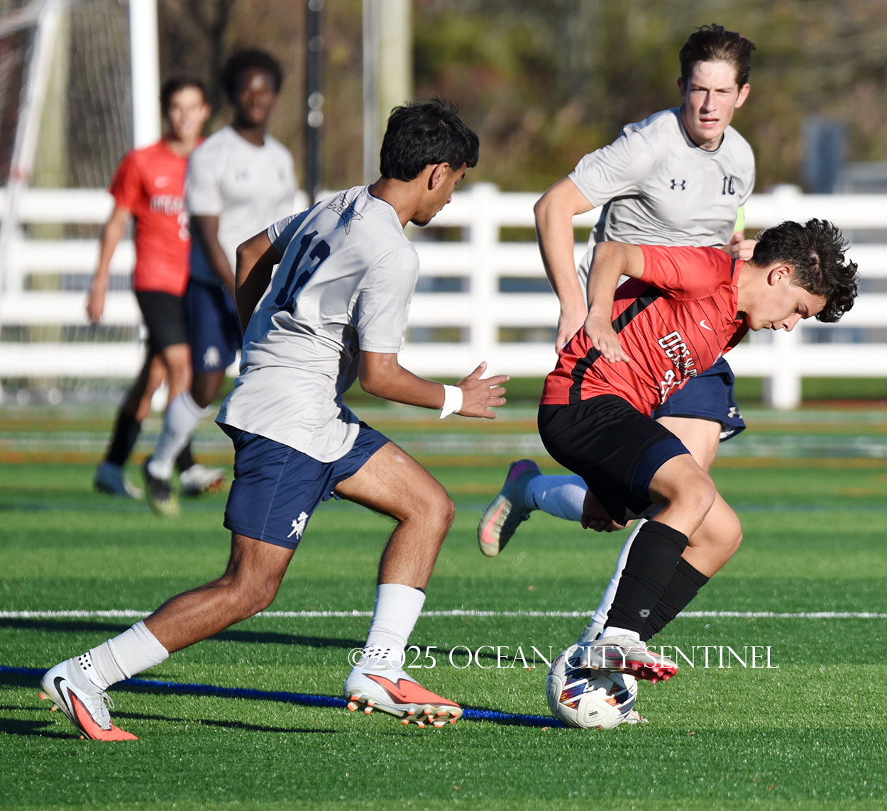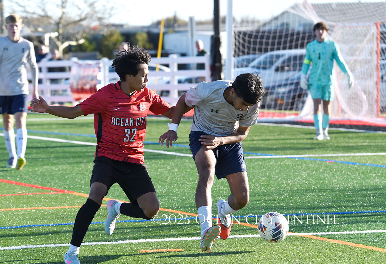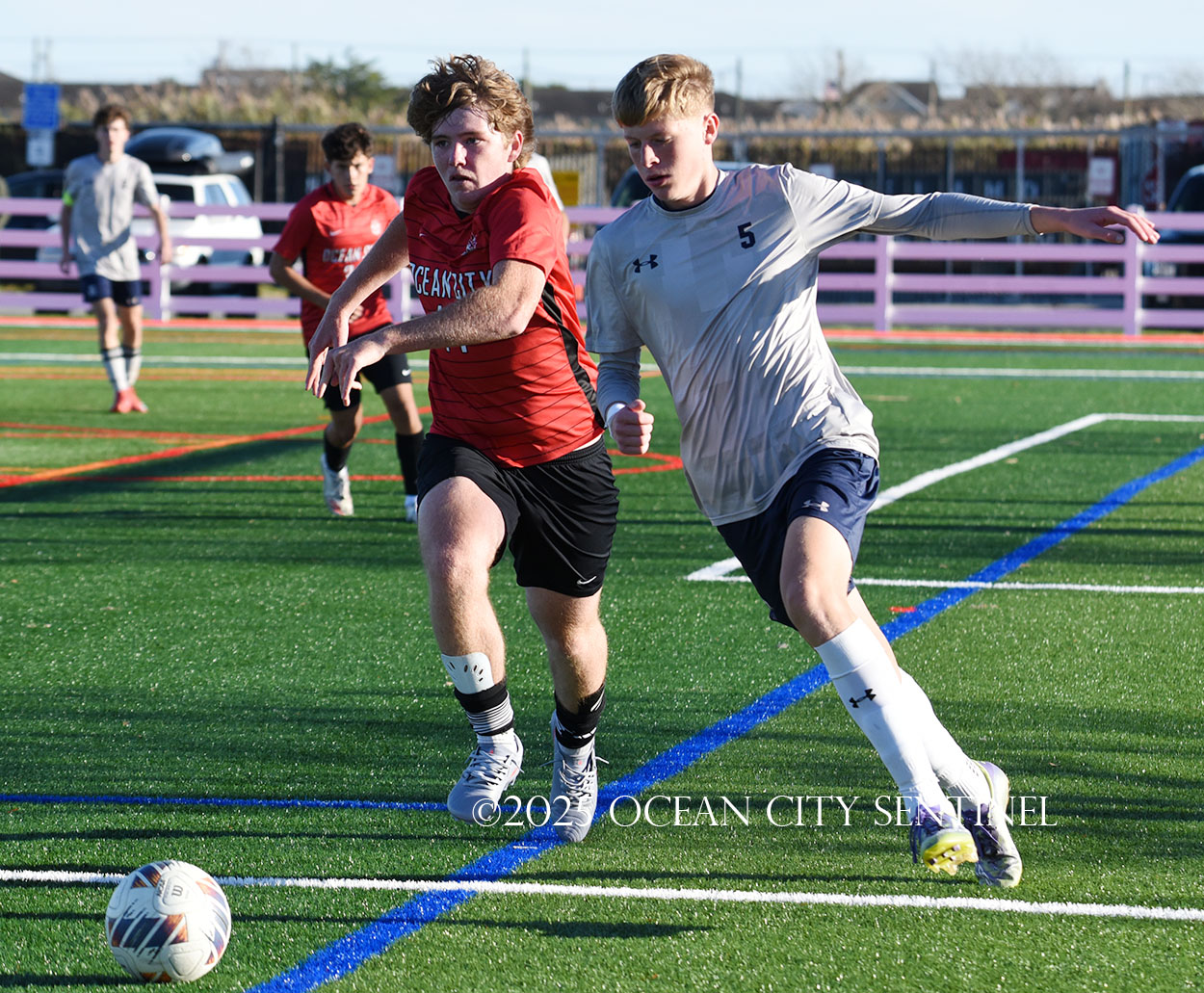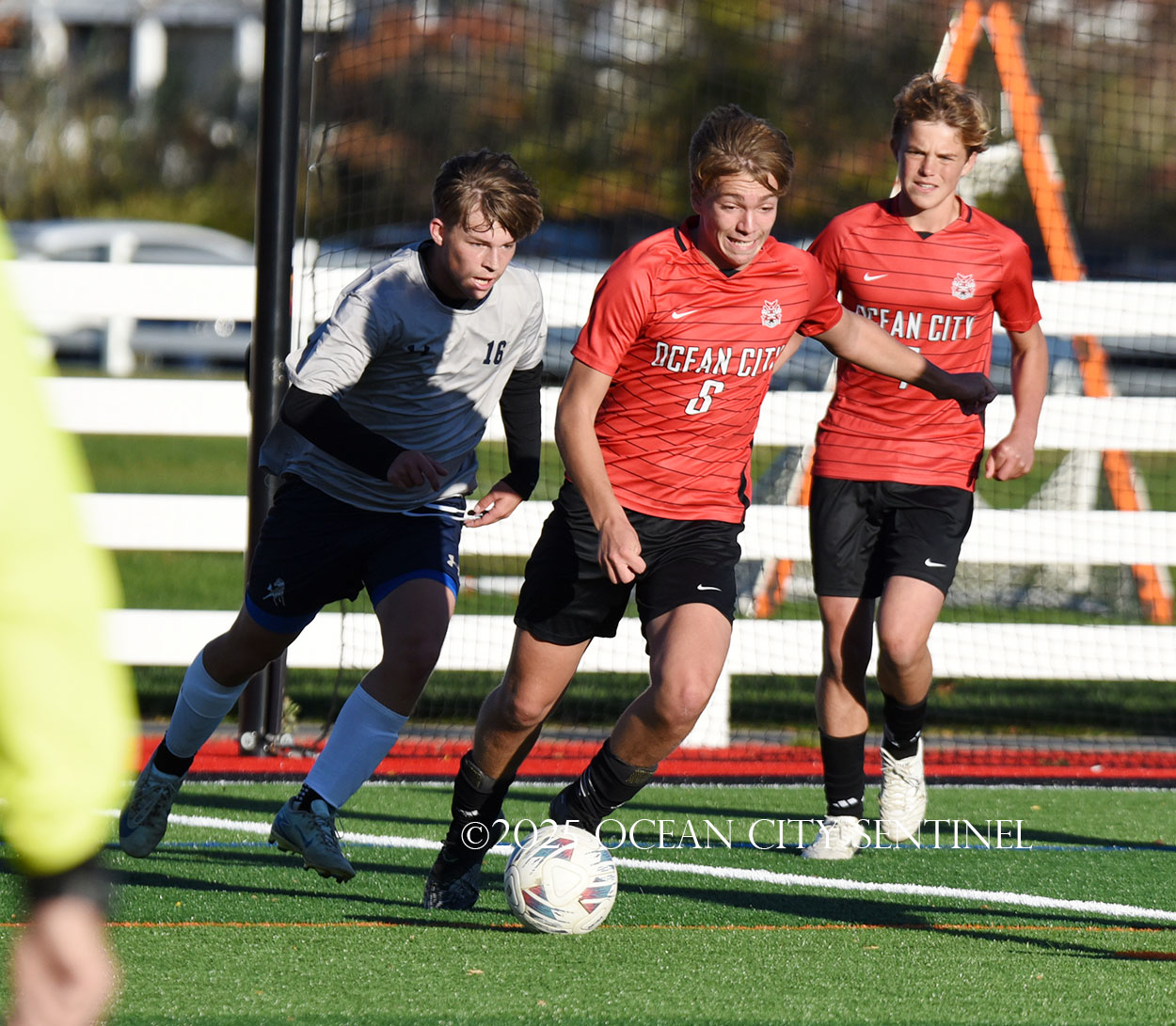 Ocean City was in complete control of the ball for most of the game but uncharacteristically struggled to finish in front of the net. Leading goal scorers Goodman and Chase Bowman had a couple of chances throughout the game, but never seemed in rhythm in the offensive end of the field.