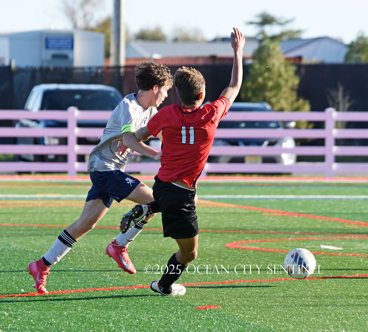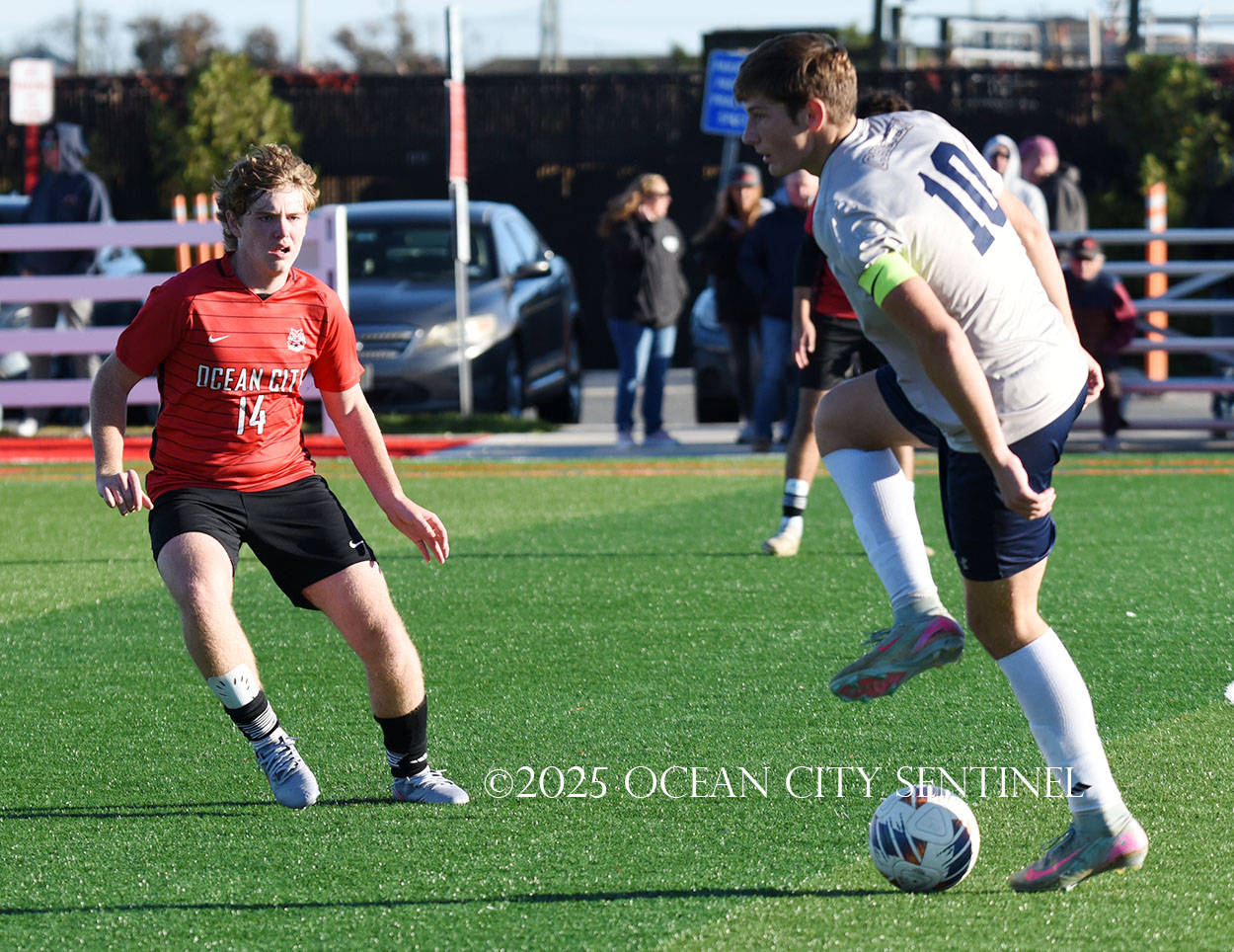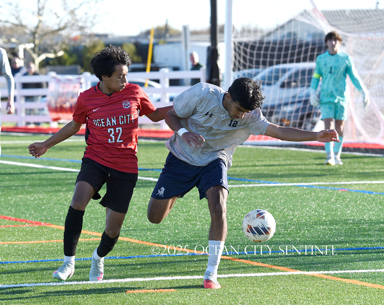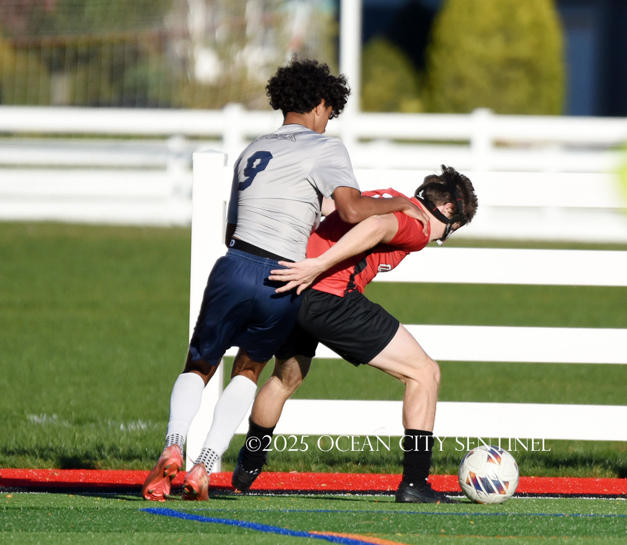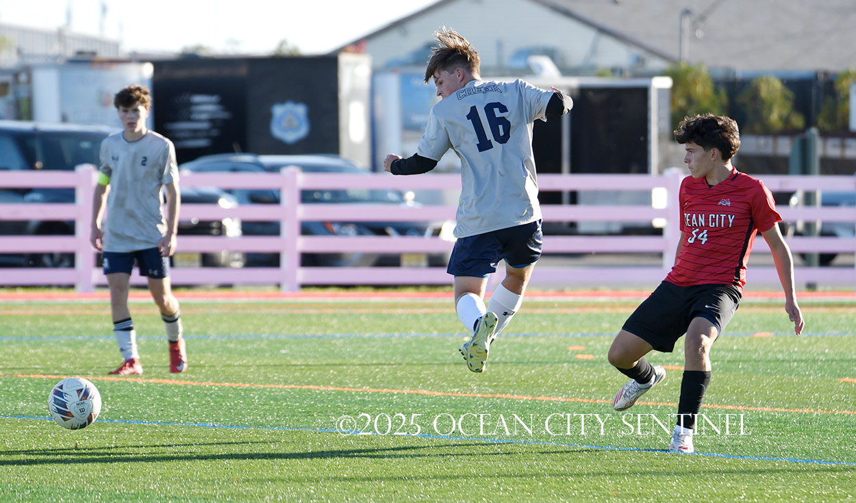 Ocean City was in complete control of the ball for most of the game but uncharacteristically struggled to finish in front of the net. Leading goal scorers Goodman and Chase Bowman had a couple of chances throughout the game, but never seemed in rhythm in the offensive end of the field.