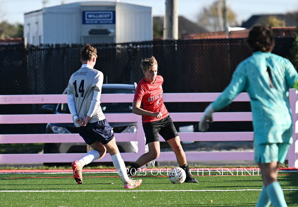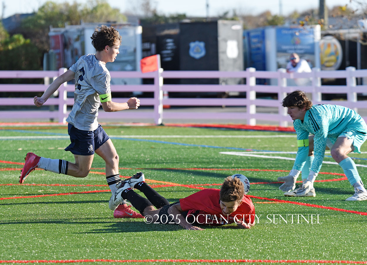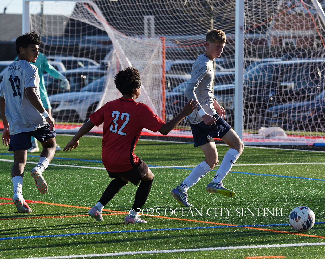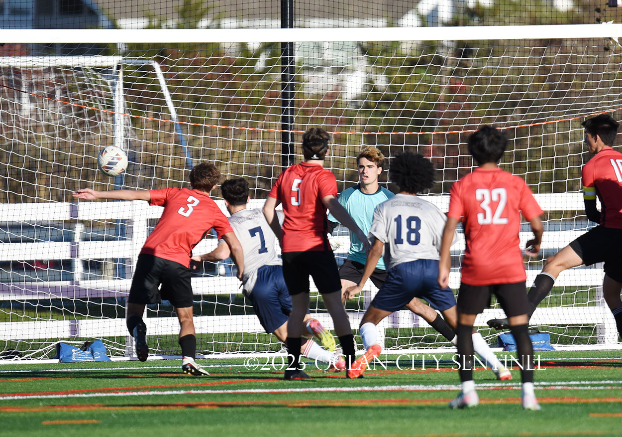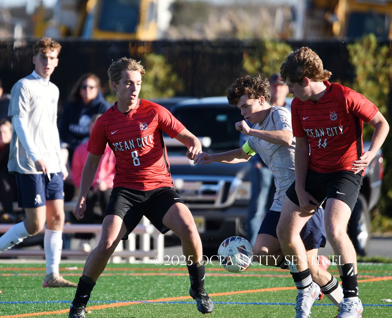 Ocean City was in complete control of the ball for most of the game but uncharacteristically struggled to finish in front of the net. Leading goal scorers Goodman and Chase Bowman had a couple of chances throughout the game, but never seemed in rhythm in the offensive end of the field.