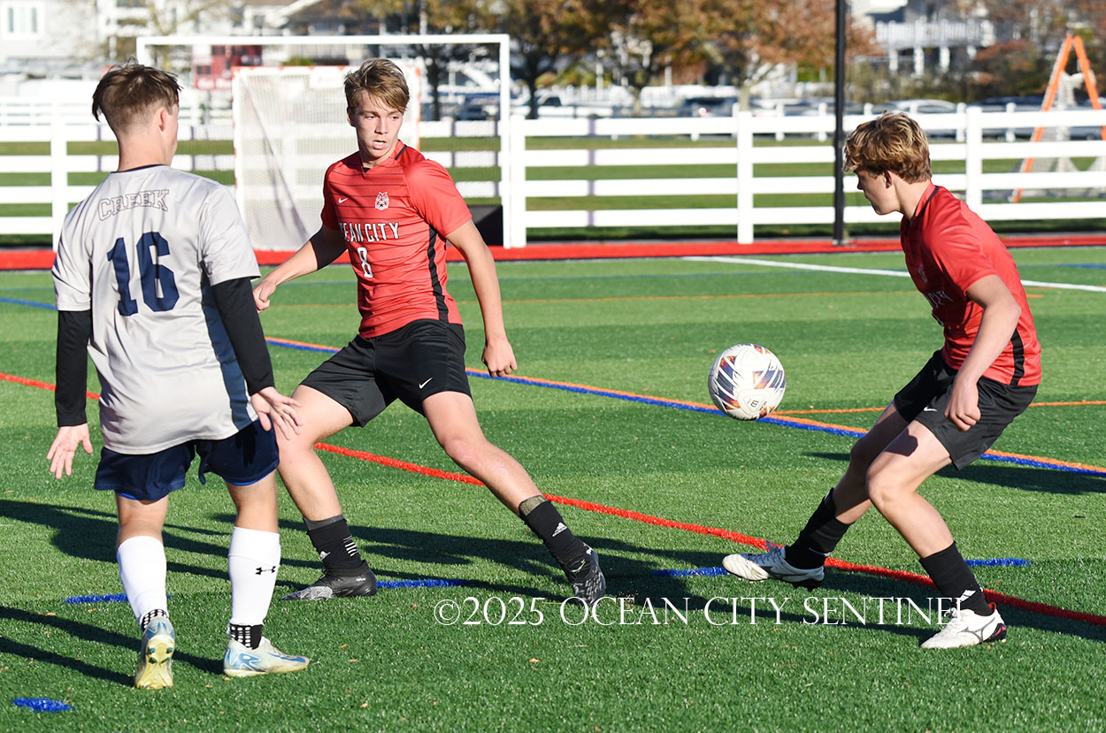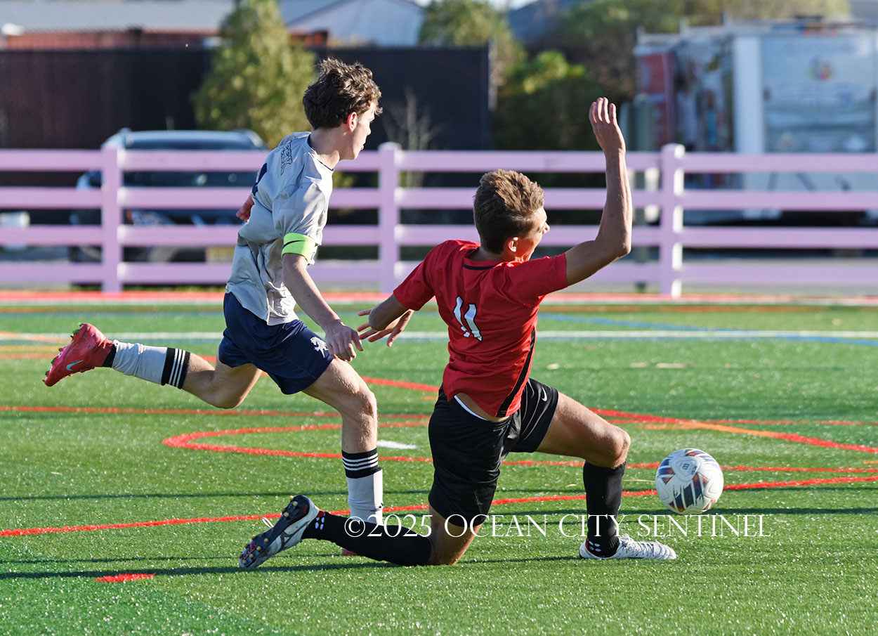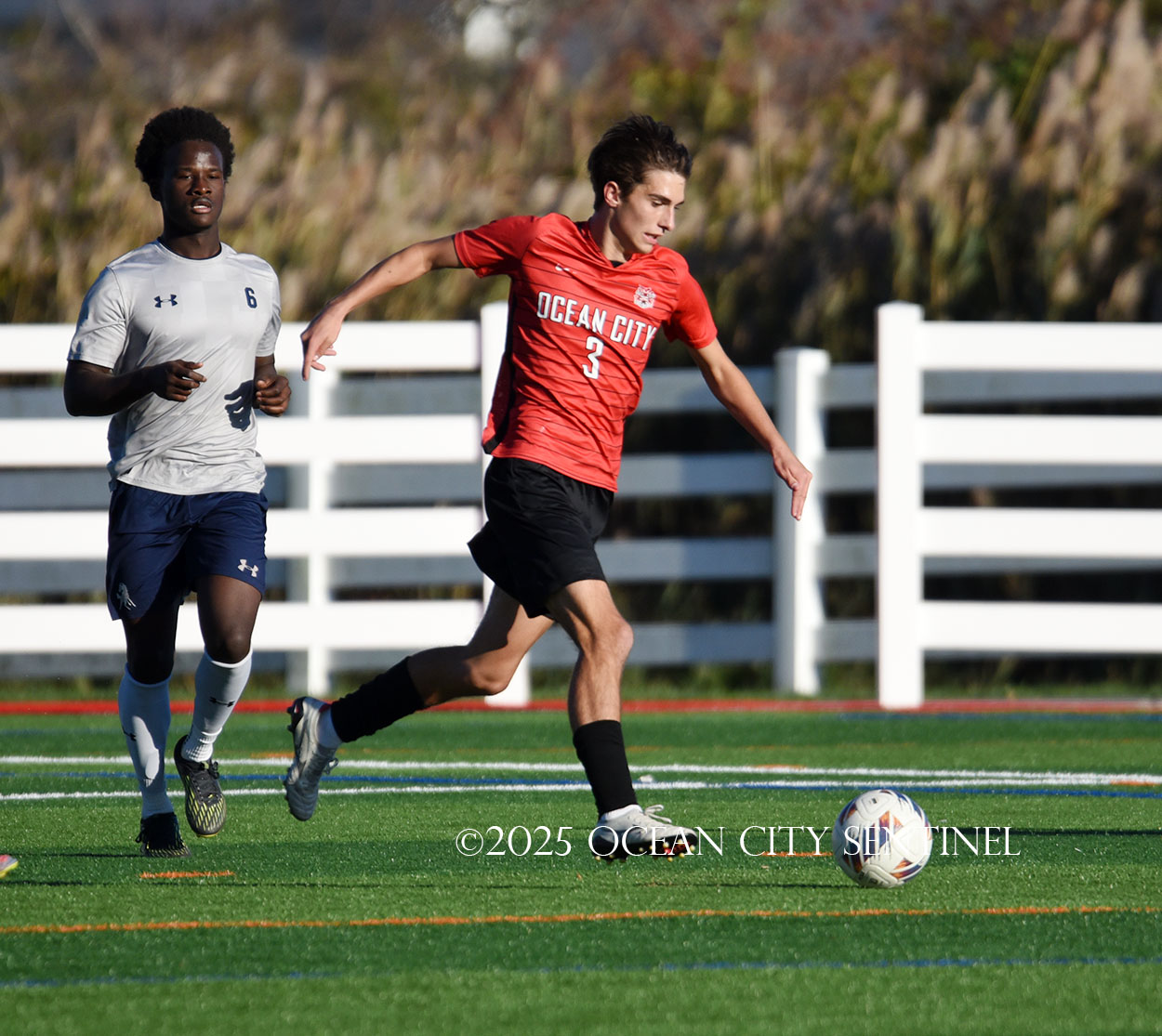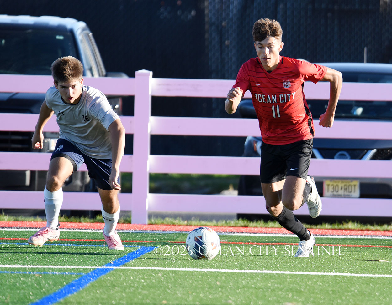 Ocean City opened at home on the Tennessee Avenue field against Timber Creek High School and were met with a slow-paced battle. Eventually, Raider Joey Goodman scored the game’s lone goal as Ocean City went on to win 1-0 on Nov. 4.