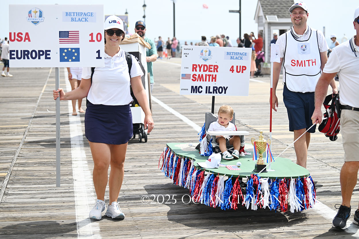 A big golf fan, Bill Smith, a Linwood native and 2011 graduate of St. Augustine Preparatory School, not only named his son Ryder but followed up on the theme with a Ryder Cup float. His wife, Kelly, and her father, Joe Noone, were members of the cheering section for the 16-month-old.