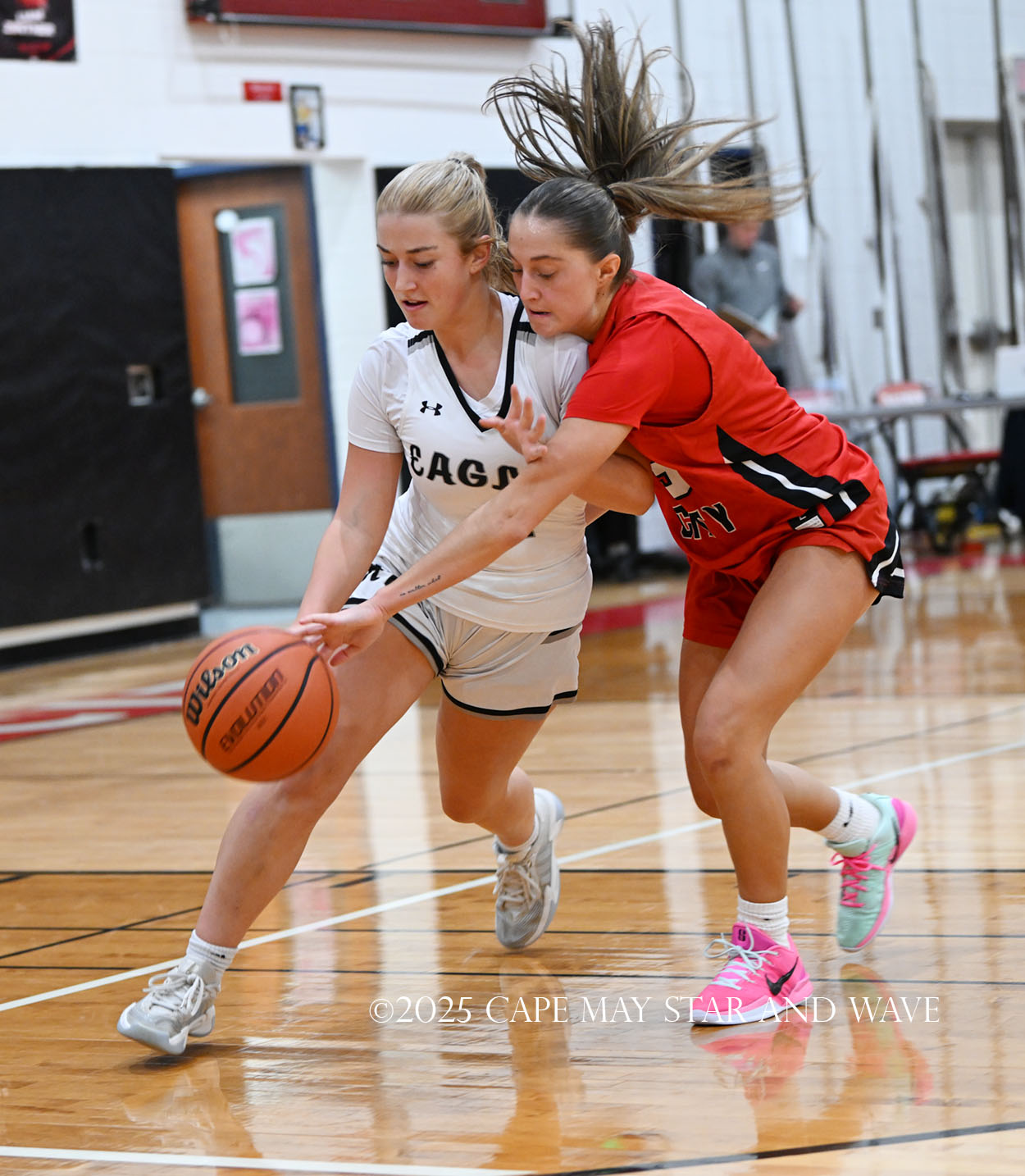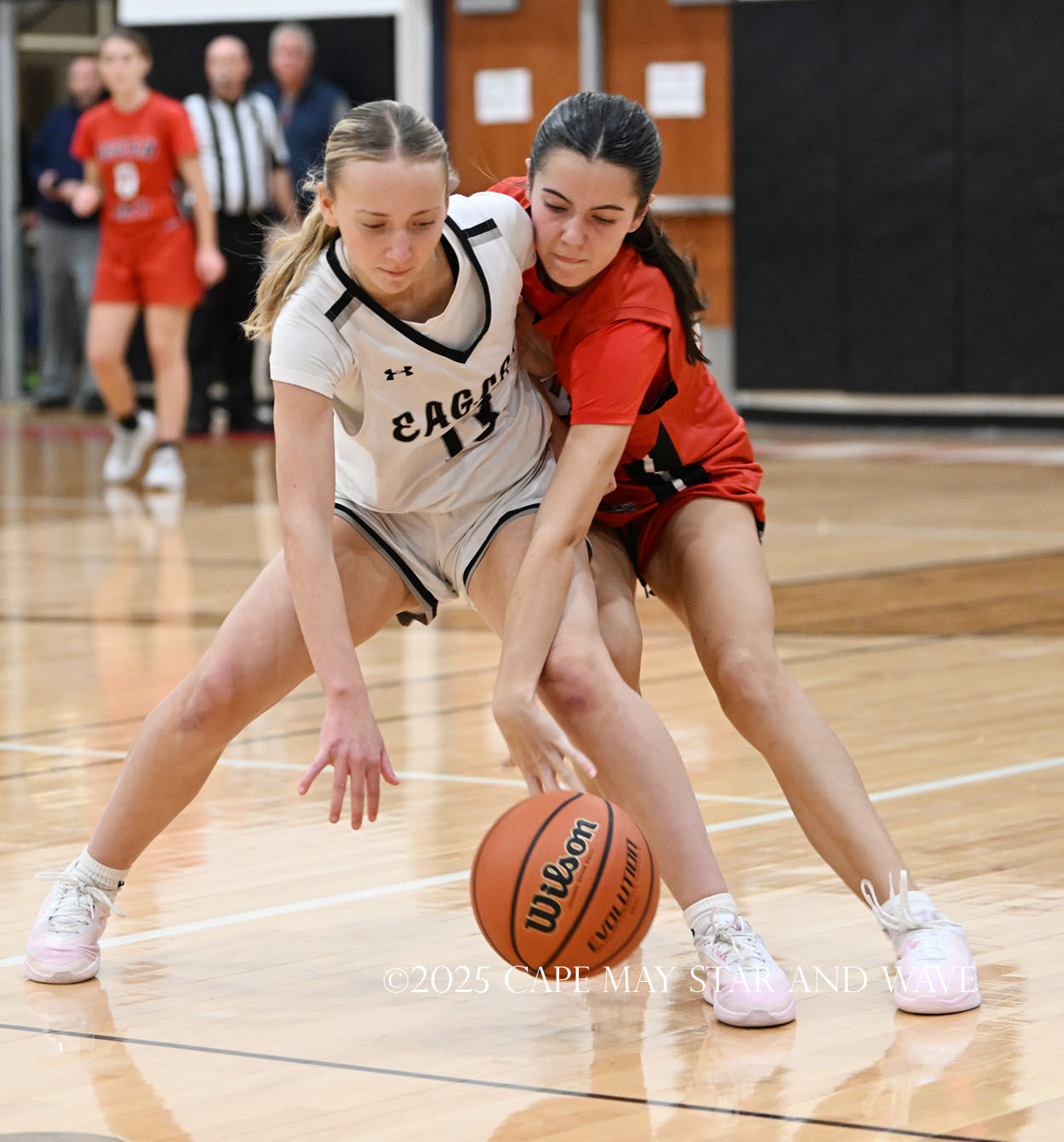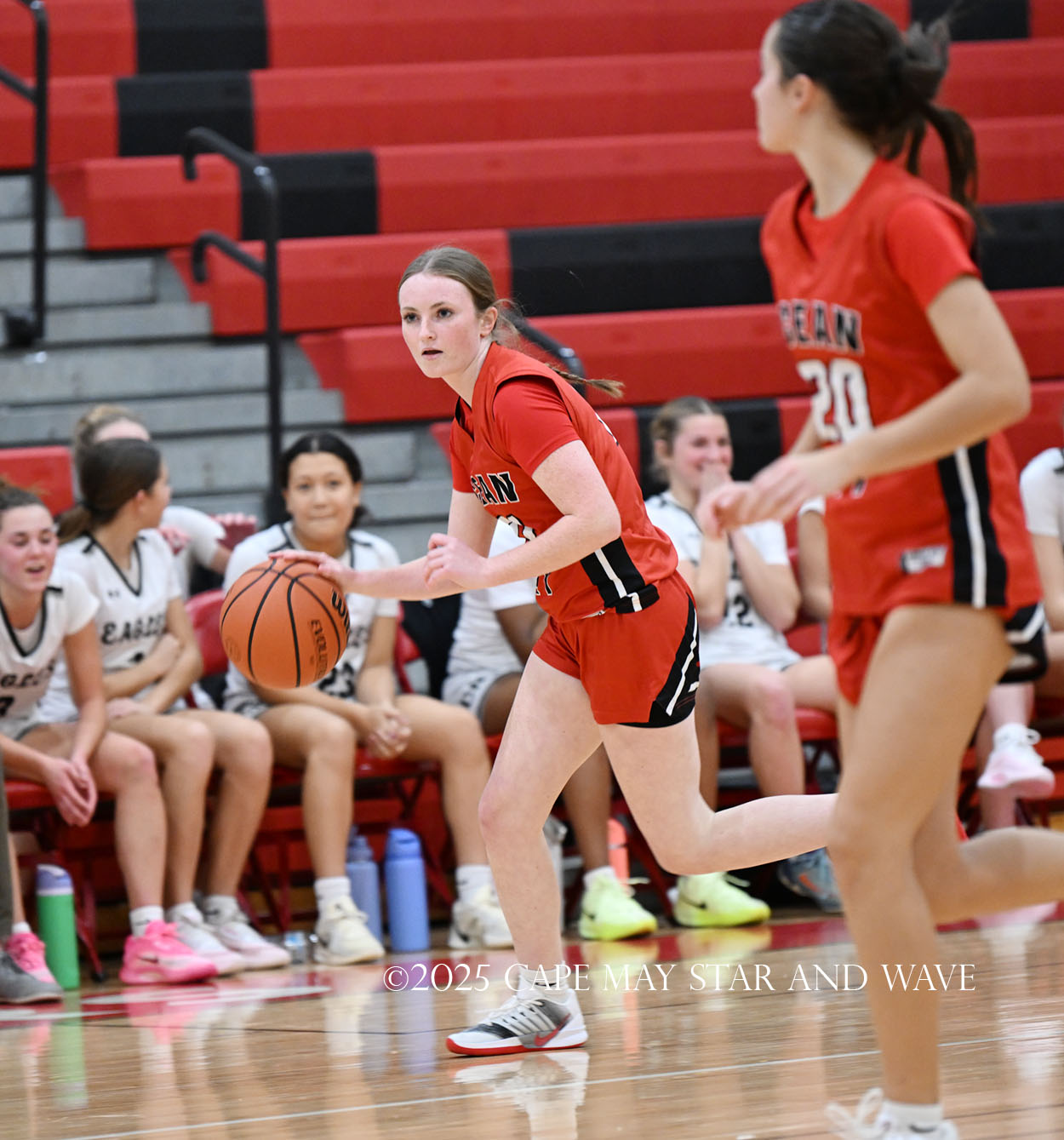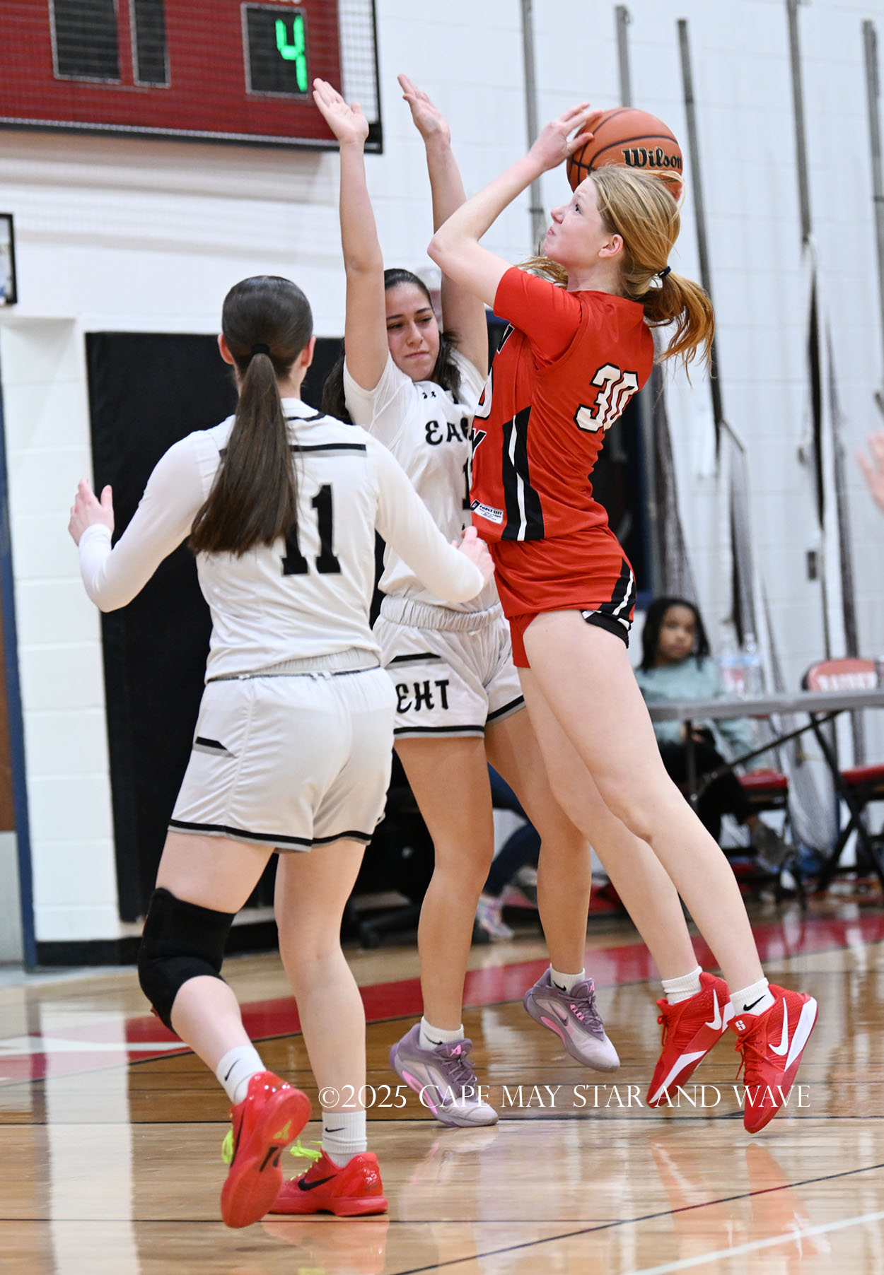 The Eagles, in their fourth game of the season, exploded with 20 points in the second quarter after a tight first quarter of action. Siena Jaworski and Evalyn Brown each scored 14 points to help build a 32-10 halftime lead for Egg Harbor Township. Jaworski hit four three-pointers that all came in response to a good Raider offensive possession.