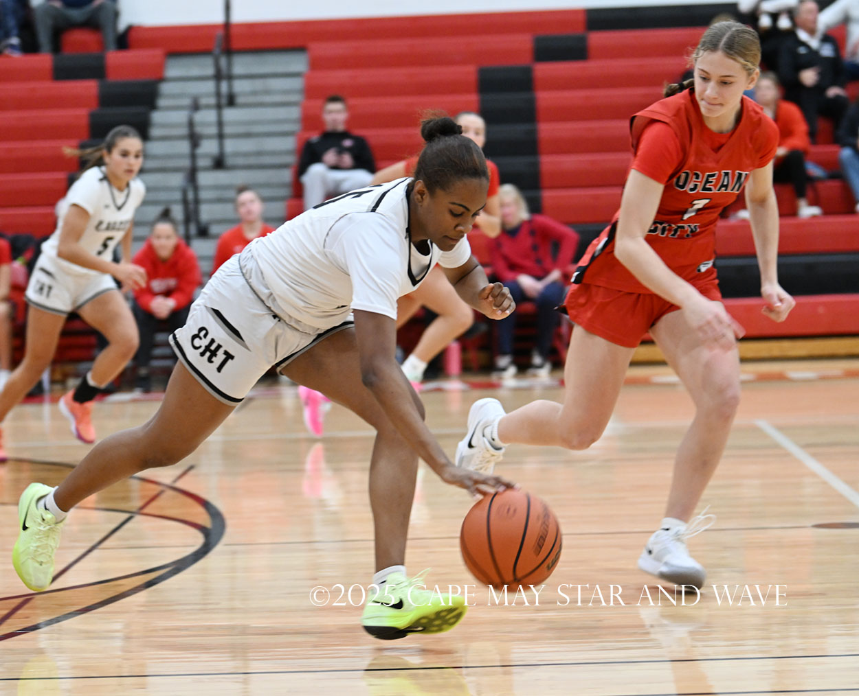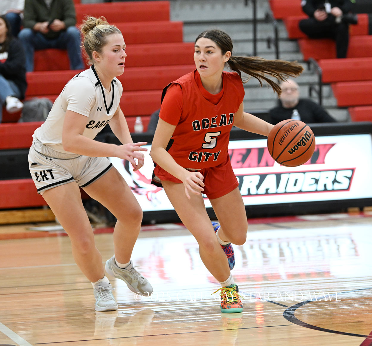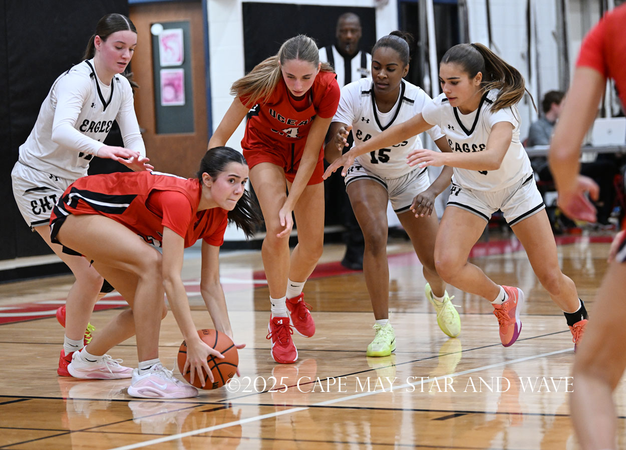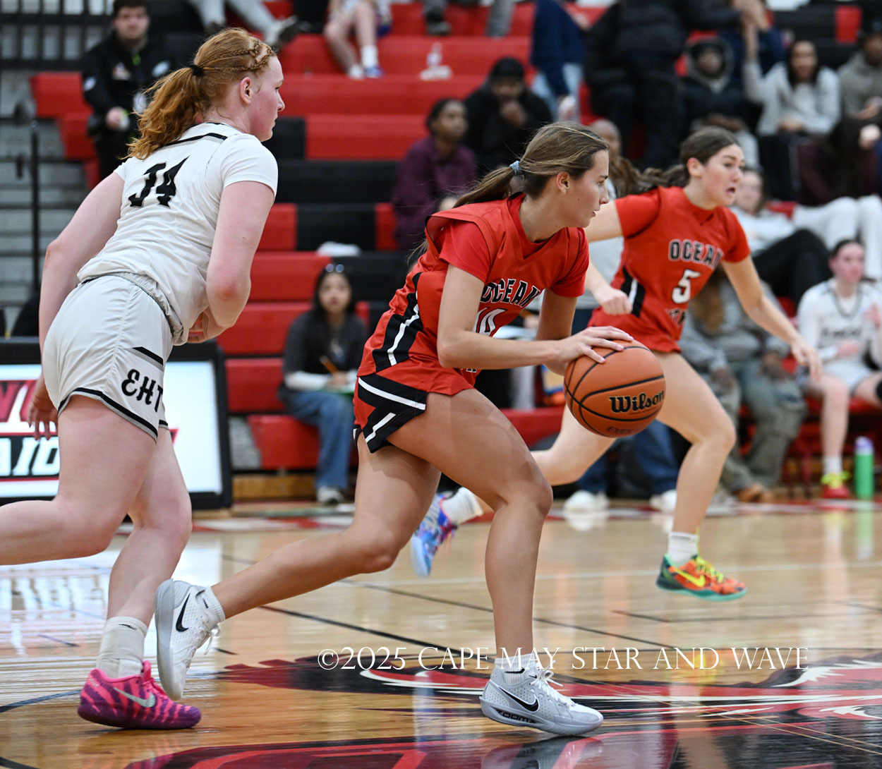 The biggest disparity between Ocean City and EHT came at the foul line, where the Raiders only made four of their 20 free throw attempts. Egg Harbor Township shot over 50 percent from the line and made 13 of 21.