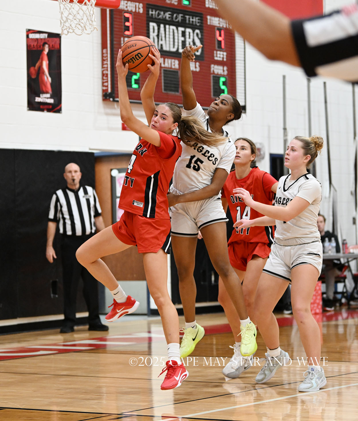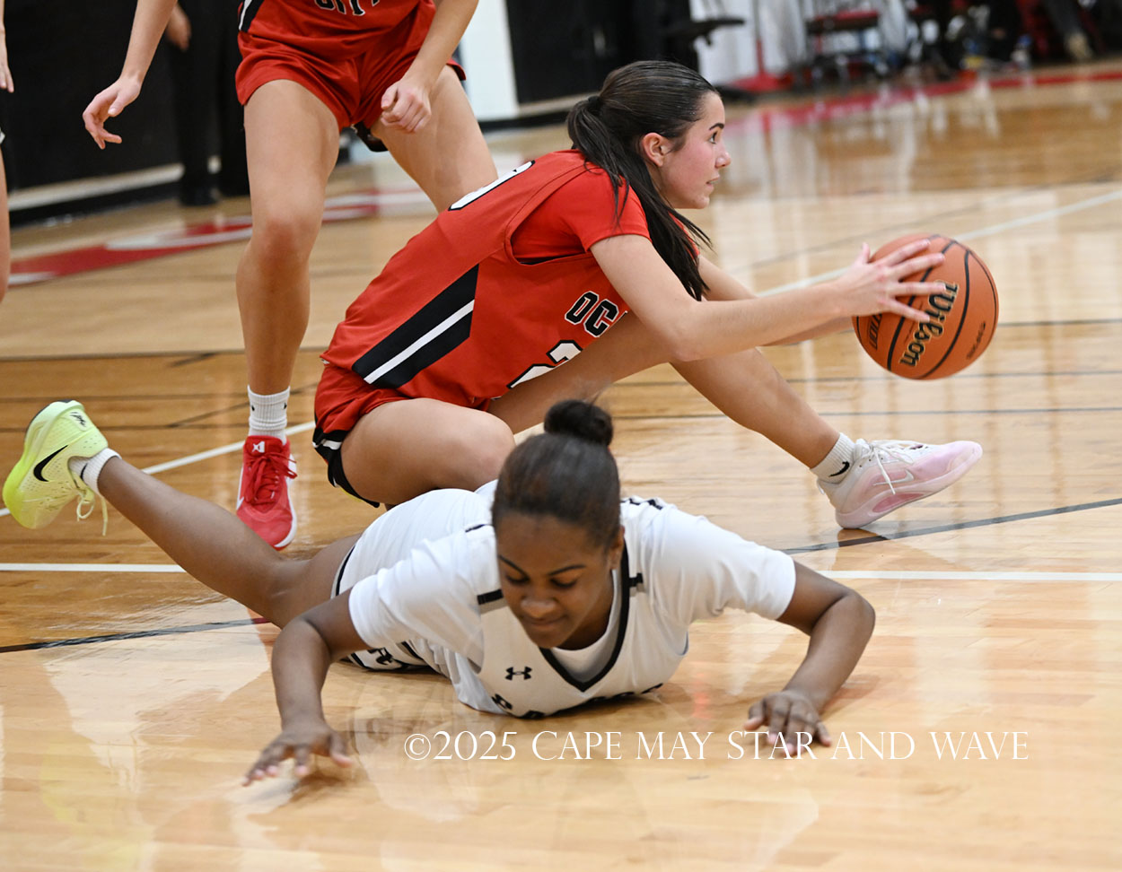 Ocean City split the games 1-1 after a 55-34 loss to Egg Harbor Township High School (3-1) on Sunday evening, Dec. 21. Freshmen duo Camryn Schiemer and Mya Dever led the Raiders with seven points apiece in an overall cold shooting night for the team.
