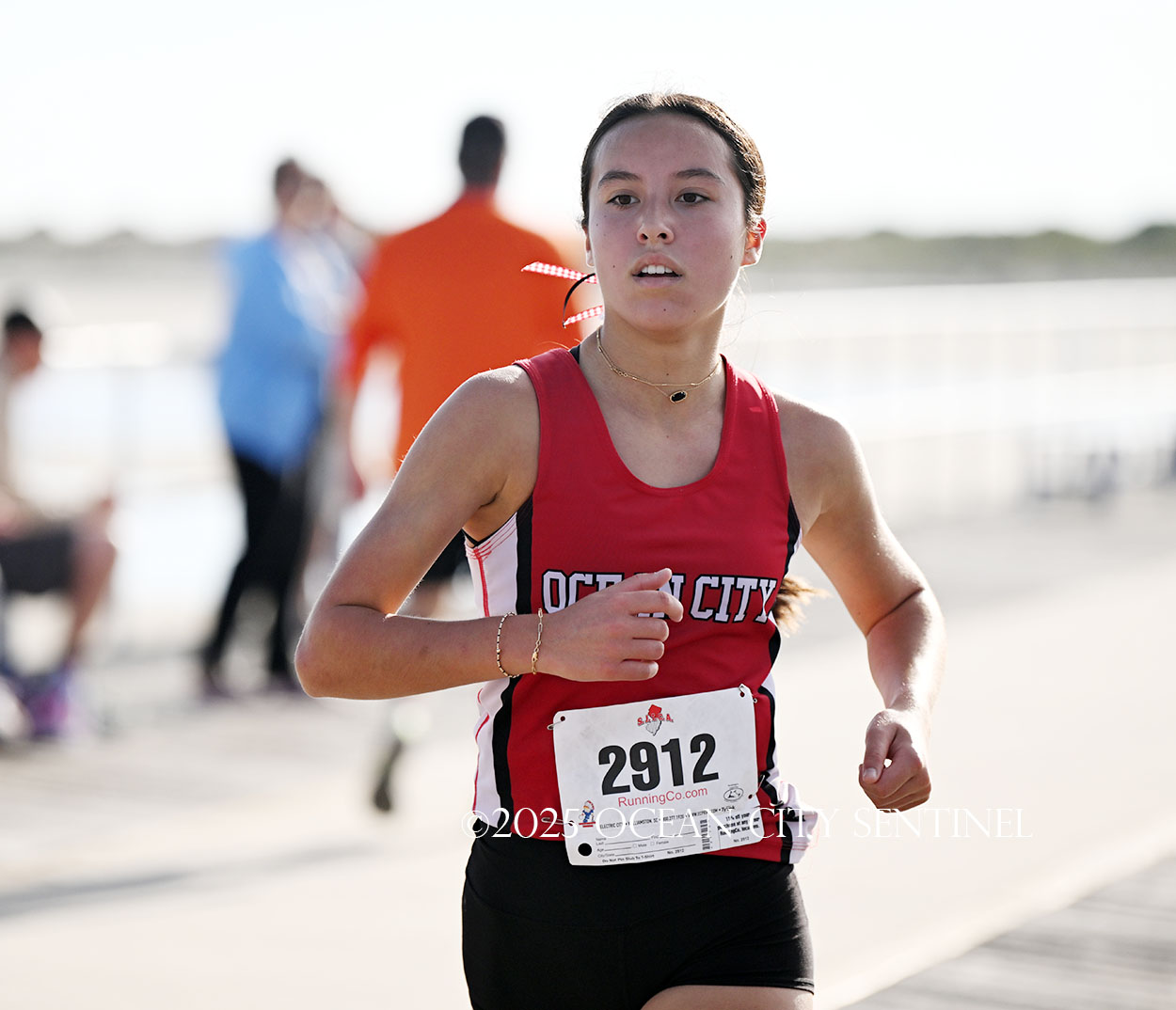 Middle Township senior Olivia Orton was fourth in 19:28.78, the only break in the OCHS pack.