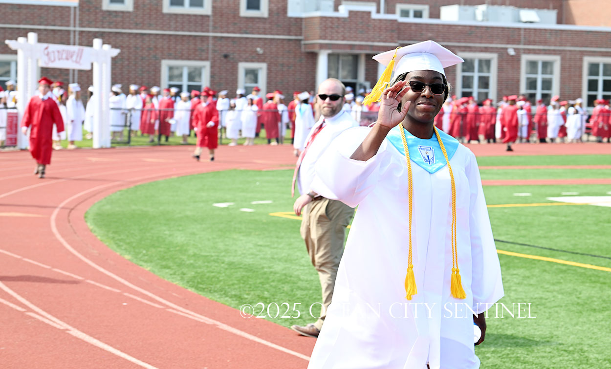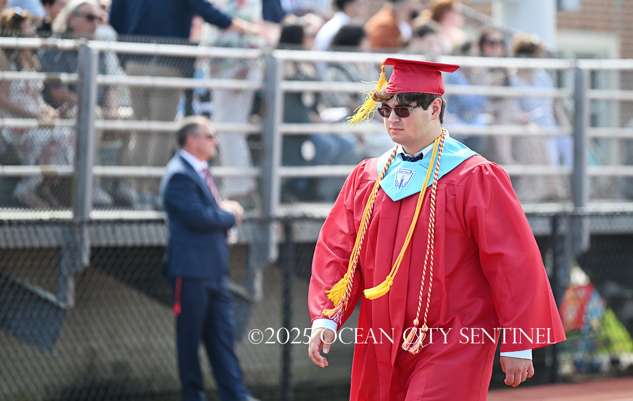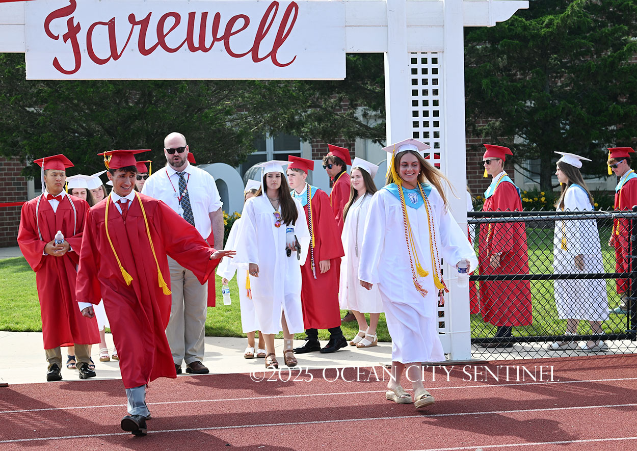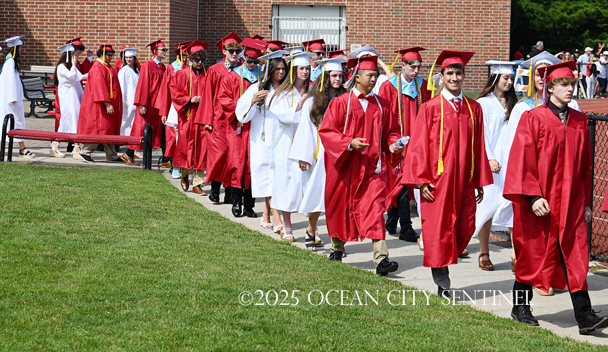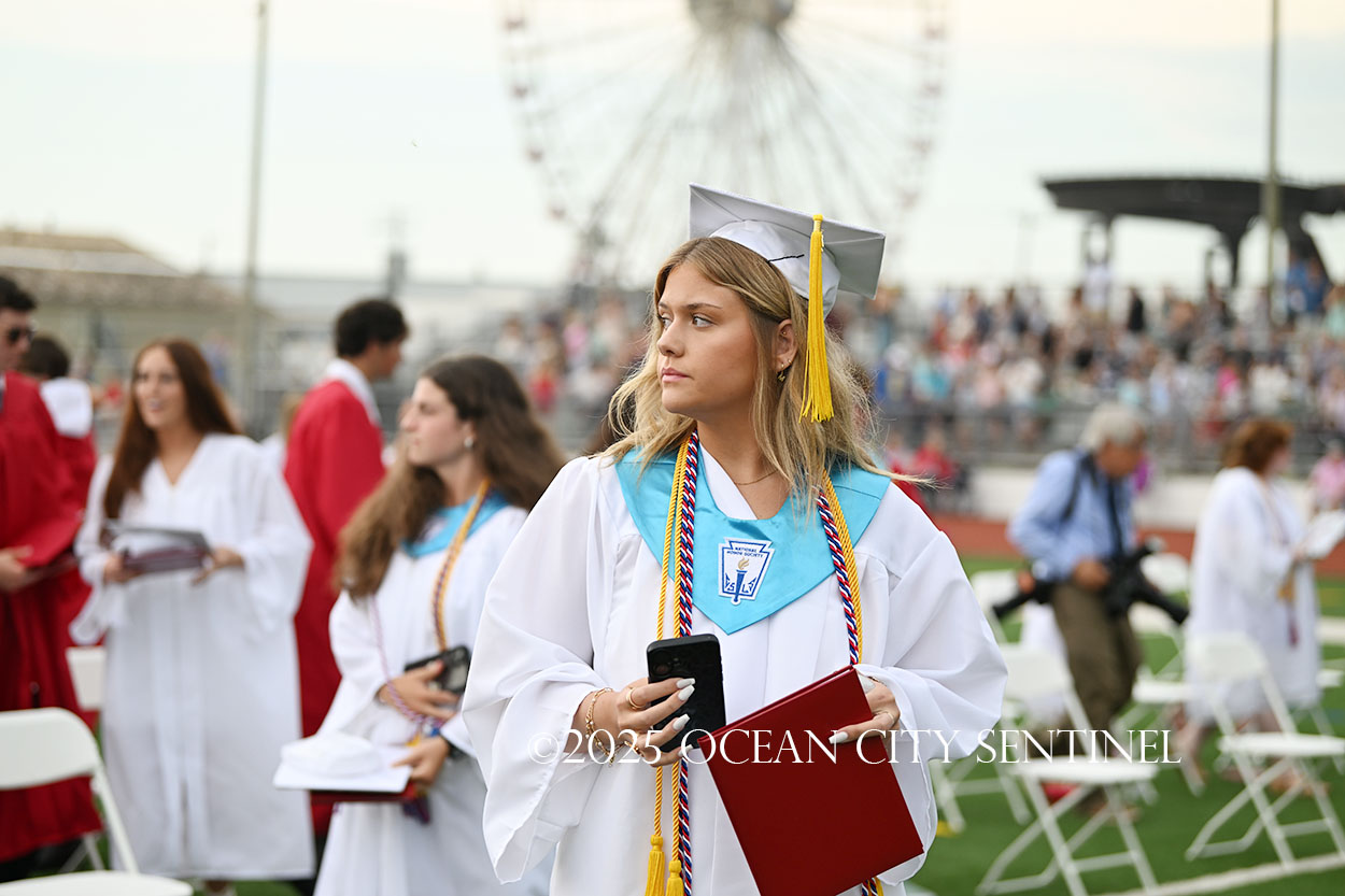 OCEAN CITY — The Class of 2025 walked out onto the field at the oceanfront Carey Stadium under blue skies June 18 to the tunes of “Pomp and Circumstance,” gathering for the final time as high school seniors.