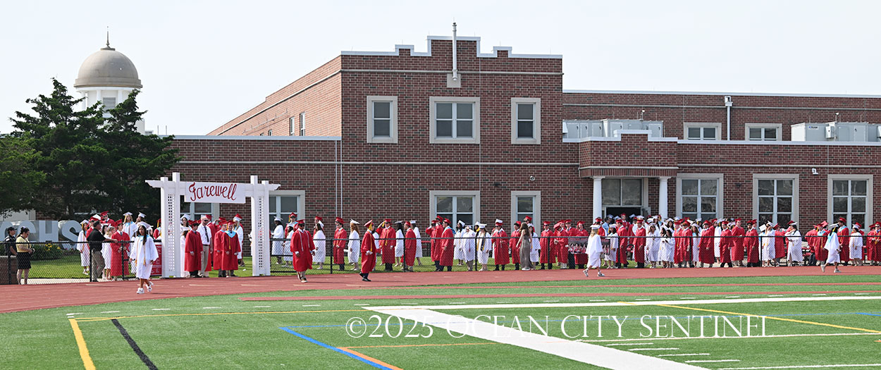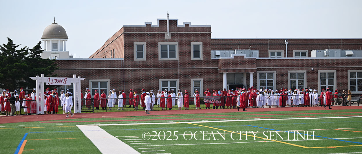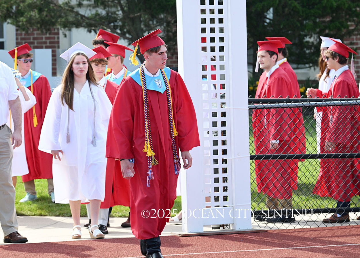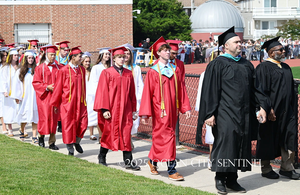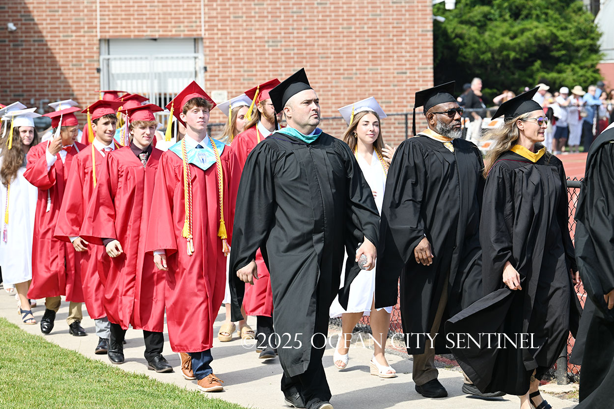 OCEAN CITY — The Class of 2025 walked out onto the field at the oceanfront Carey Stadium under blue skies June 18 to the tunes of “Pomp and Circumstance,” gathering for the final time as high school seniors.