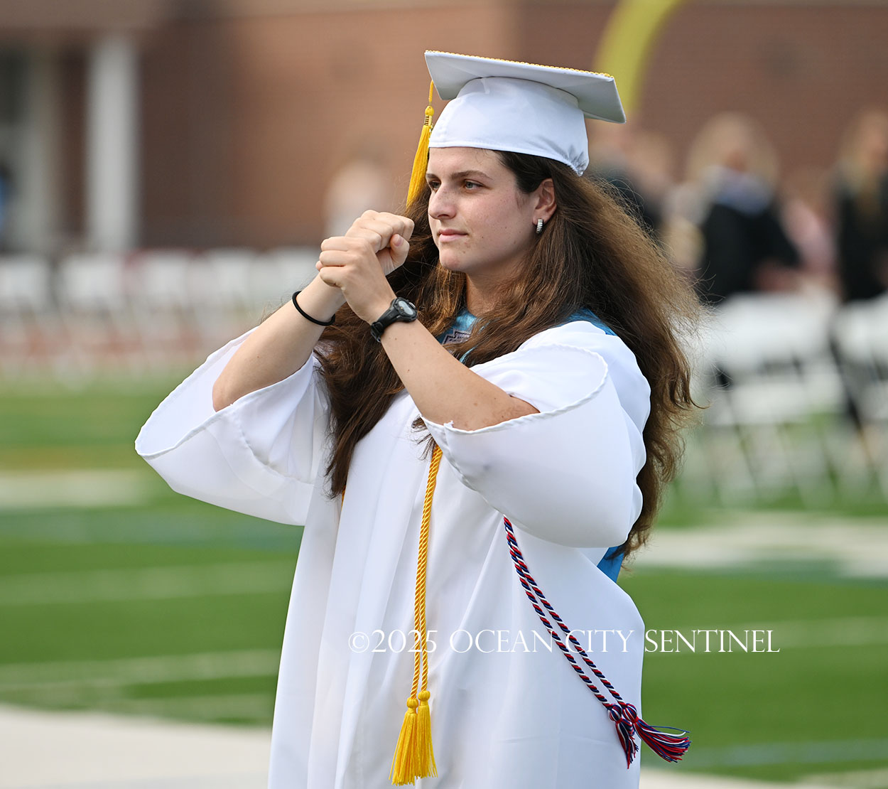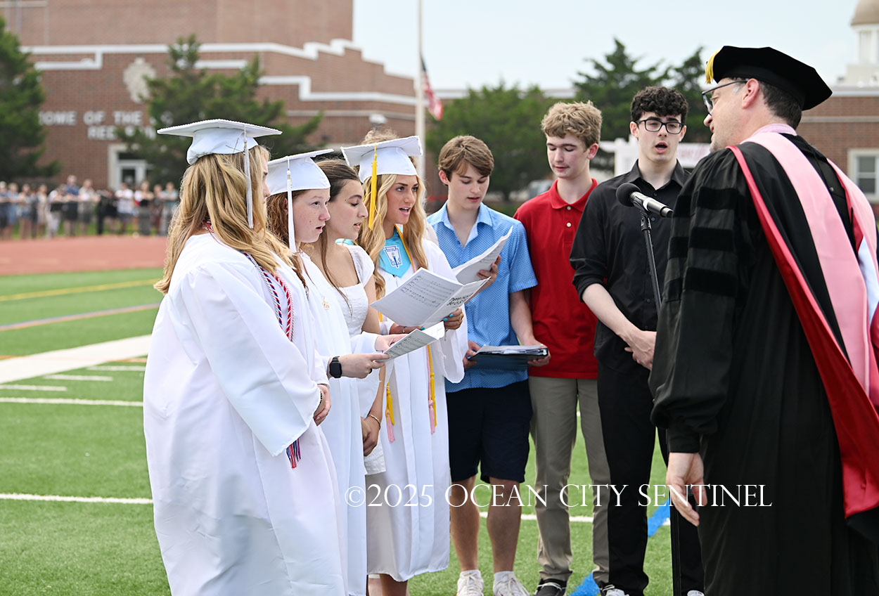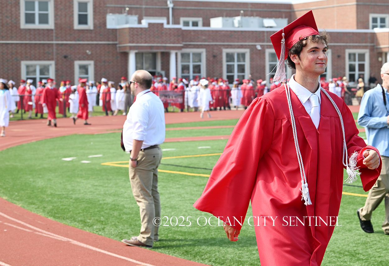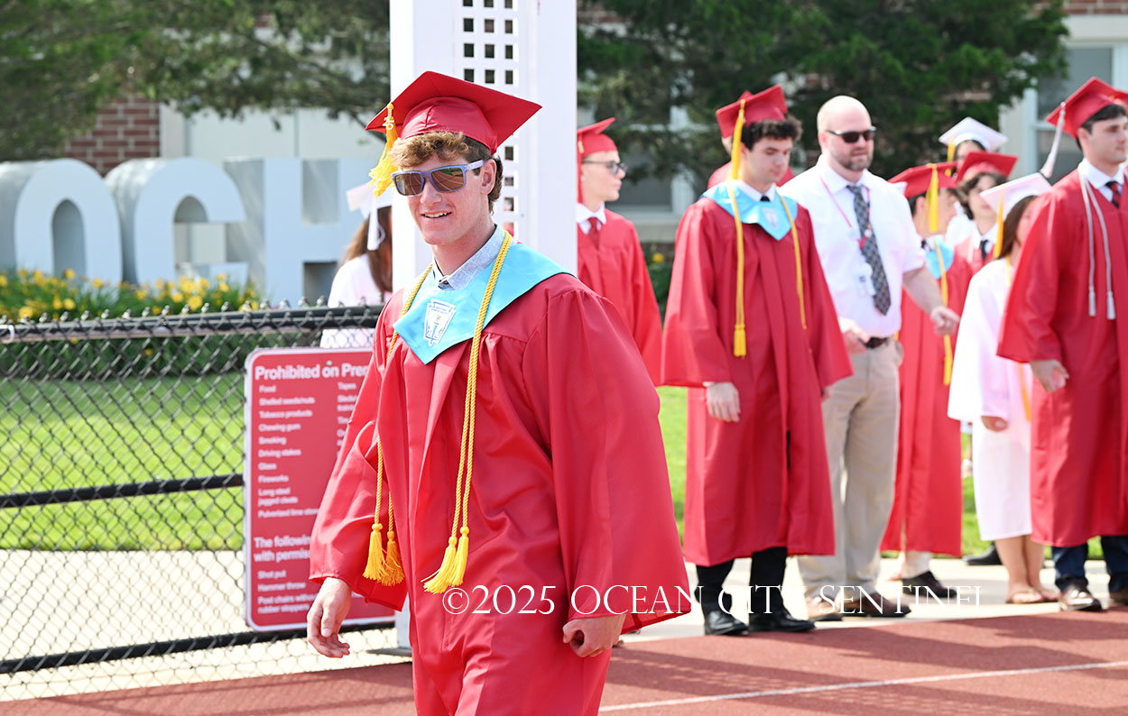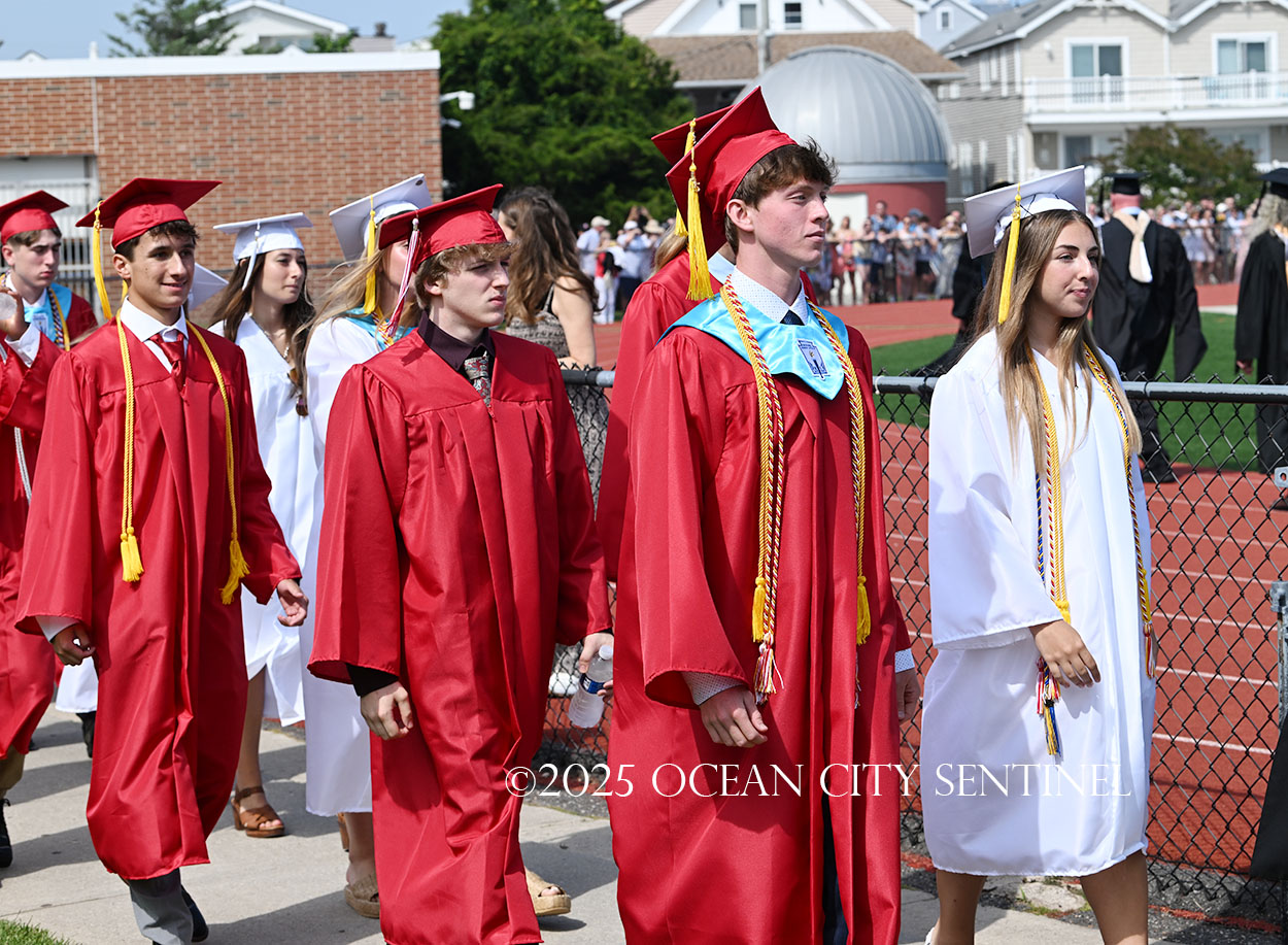 OCEAN CITY — The Class of 2025 walked out onto the field at the oceanfront Carey Stadium under blue skies June 18 to the tunes of “Pomp and Circumstance,” gathering for the final time as high school seniors.