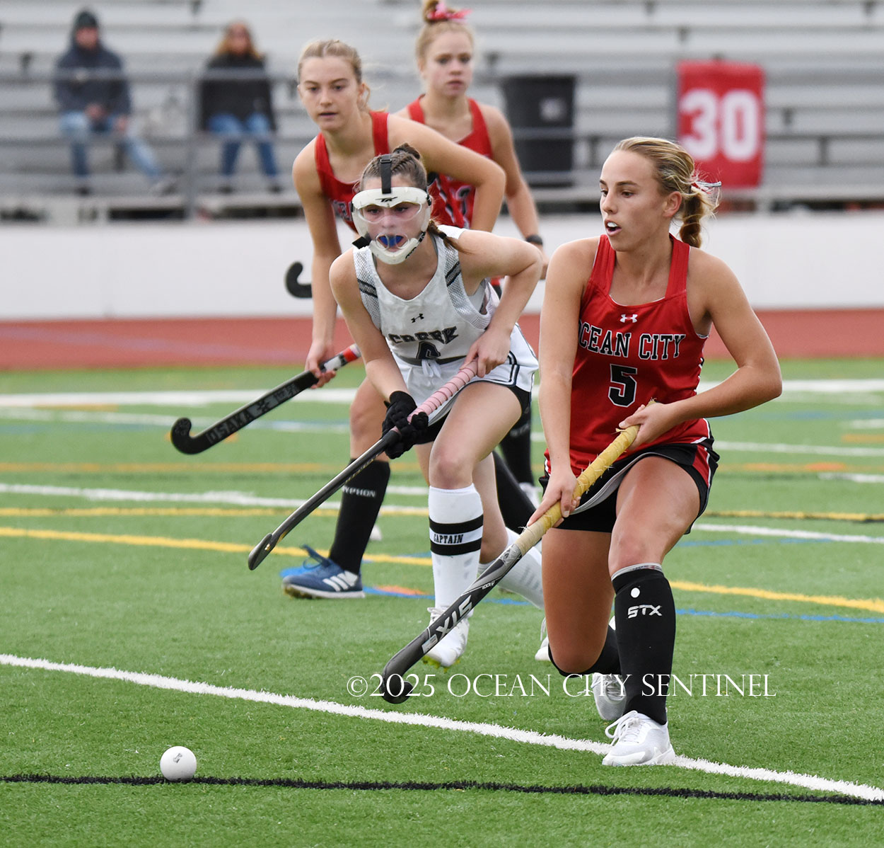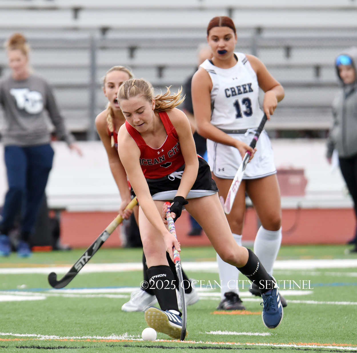 Less than three minutes into the game, the Ocean City girls led 2-0 courtesy of a goal by Caroline Bickings and Lyla Clark a half-minute later. Adamson got her first goal at the 4:11 mark for a 3-0 first-period lead.