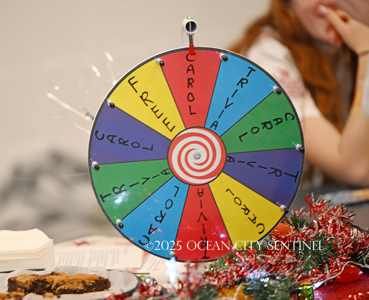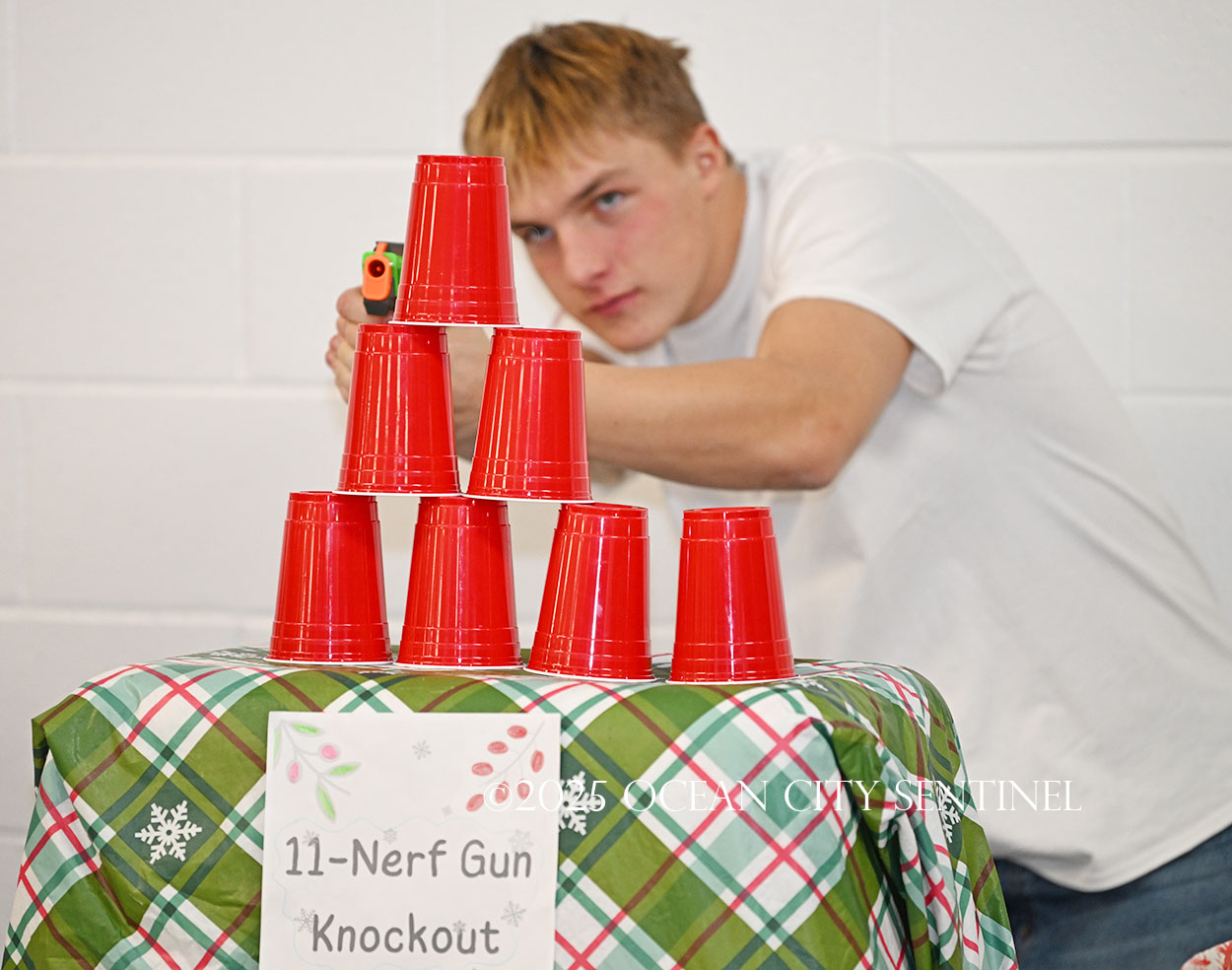 The honor society members filled the school cafeteria Dec. 23 with games of chance and skill — such as spinning a wheel, rolling a ping pong ball into a cup, making a putt or using a Nerf dart to knock down plastic cups — enticing students and teachers to part with a buck to try to win little prizes and food treats for their donations.