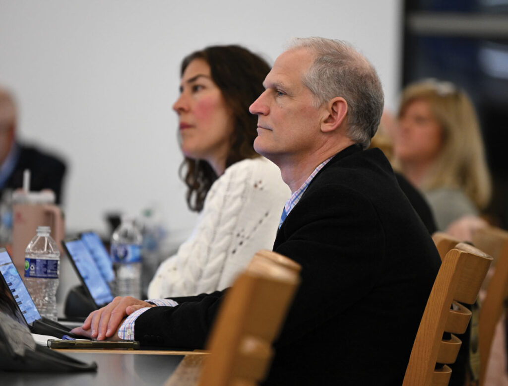 Ocean City Board of Education members Michael Allegretto and Jennifer Cawley-Black listen to the surf team request.