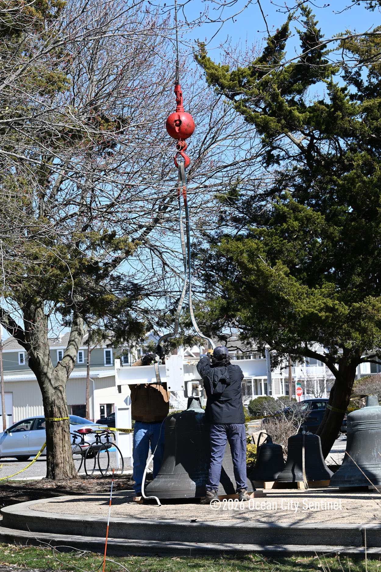 The plan — fingers crossed — is that with their restored copper luster and fixed mechanisms, they will ring out again this summer in time for the anniversary of the original dedication in Ocean City, or at least by the nation’s 250th birthday in July.