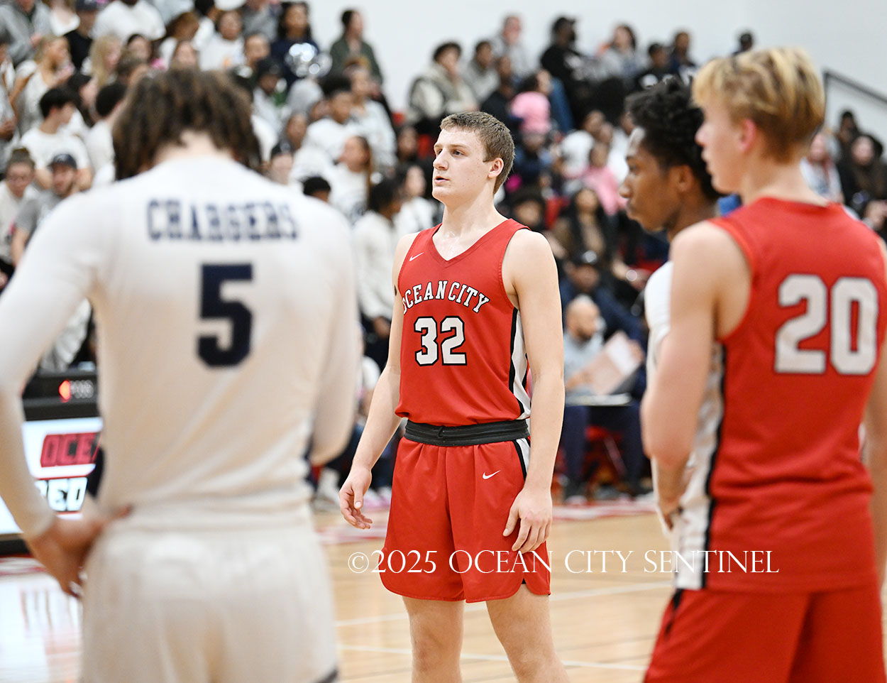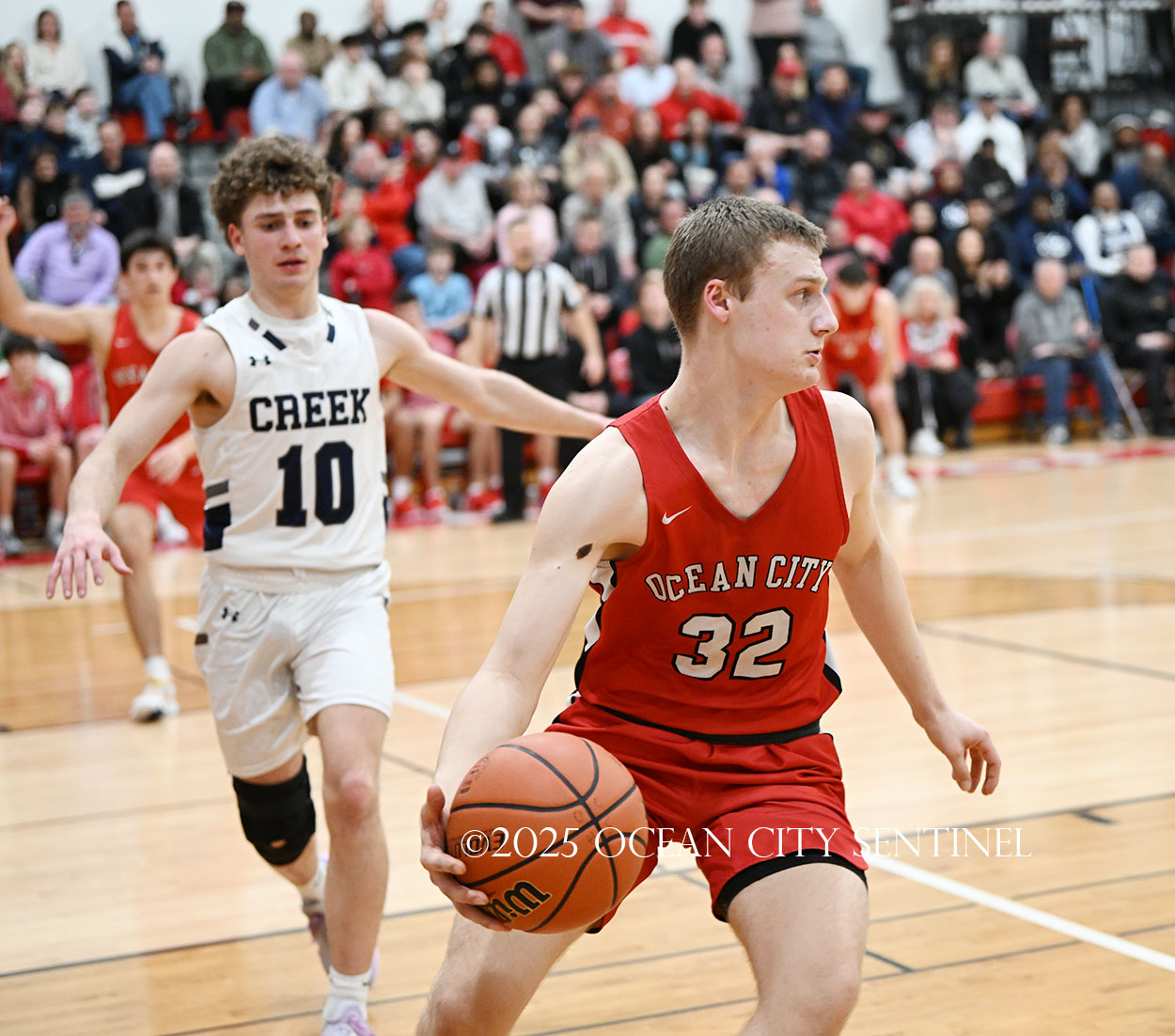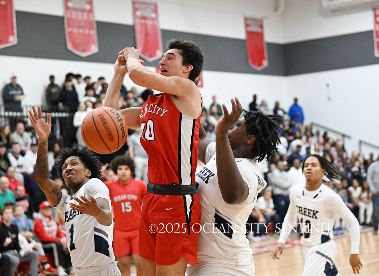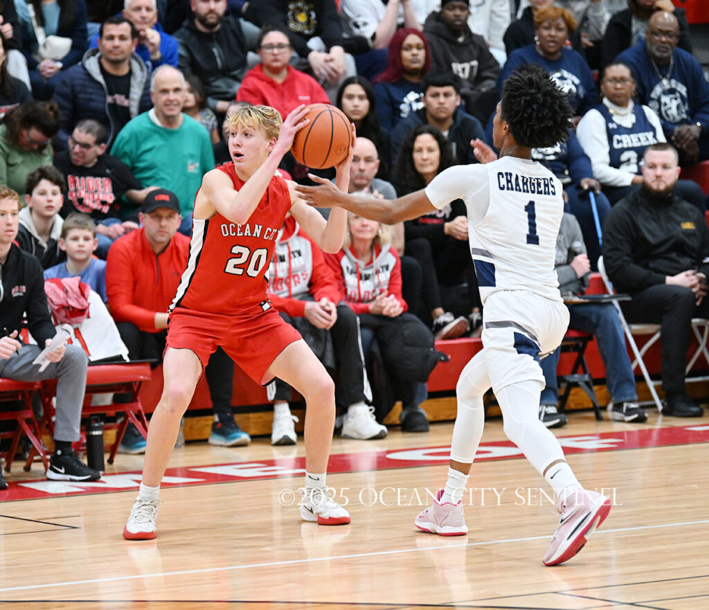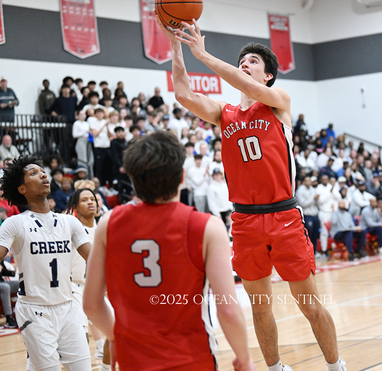 Four foul shots by Tjourmakaris and a three-pointer by Leon Brown helped put Ocean City up 33-24 early in the third quarter, but Timber Creek responded to narrow it to 35-32 with under two minutes to go. Lenko hit a trey with another score by the visitors for a four-point, 38-34 lead heading into the fourth quarter.