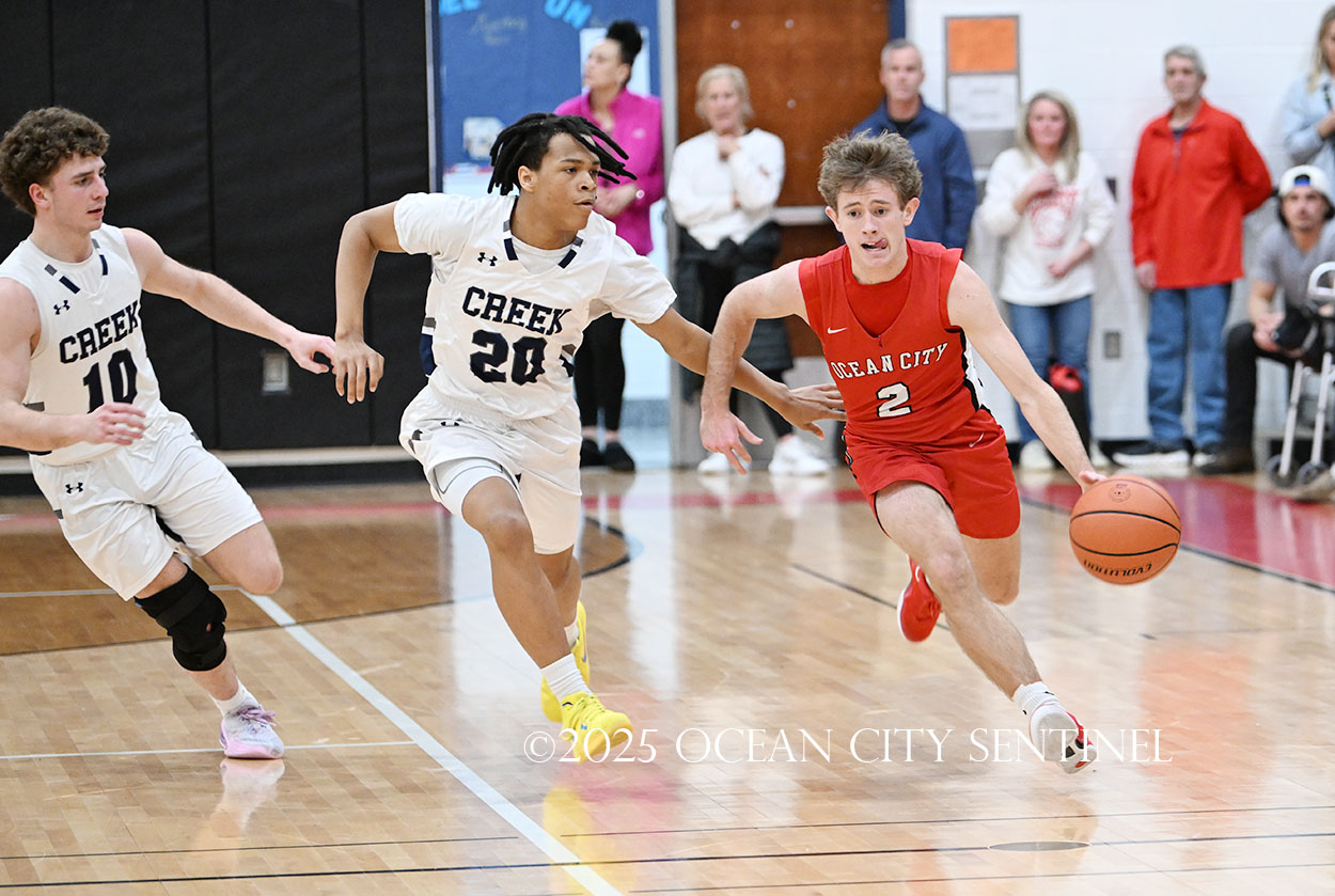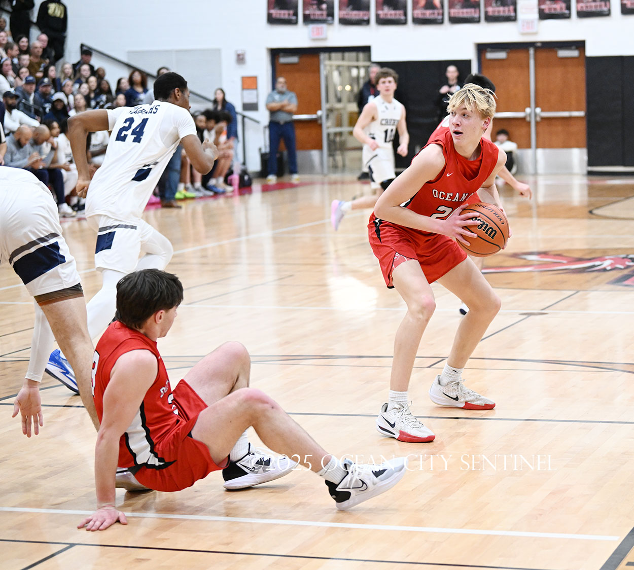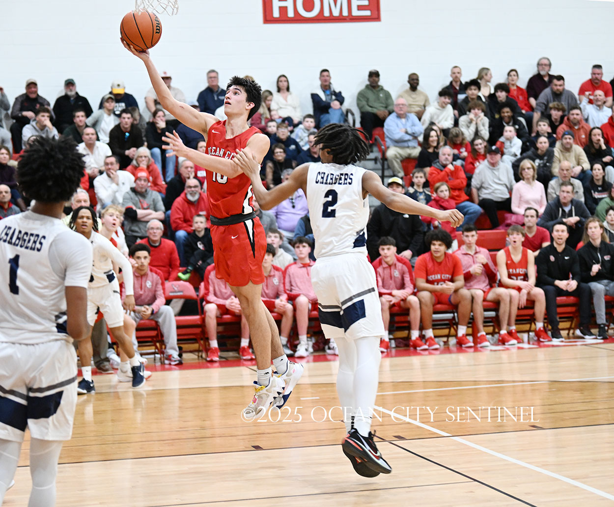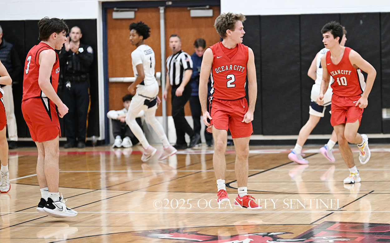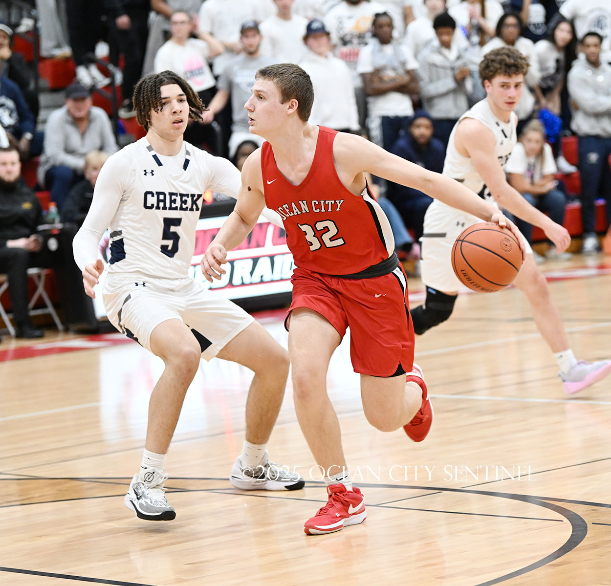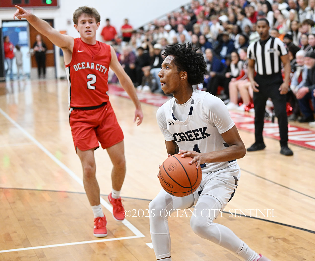 Four foul shots by Tjourmakaris and a three-pointer by Leon Brown helped put Ocean City up 33-24 early in the third quarter, but Timber Creek responded to narrow it to 35-32 with under two minutes to go. Lenko hit a trey with another score by the visitors for a four-point, 38-34 lead heading into the fourth quarter.