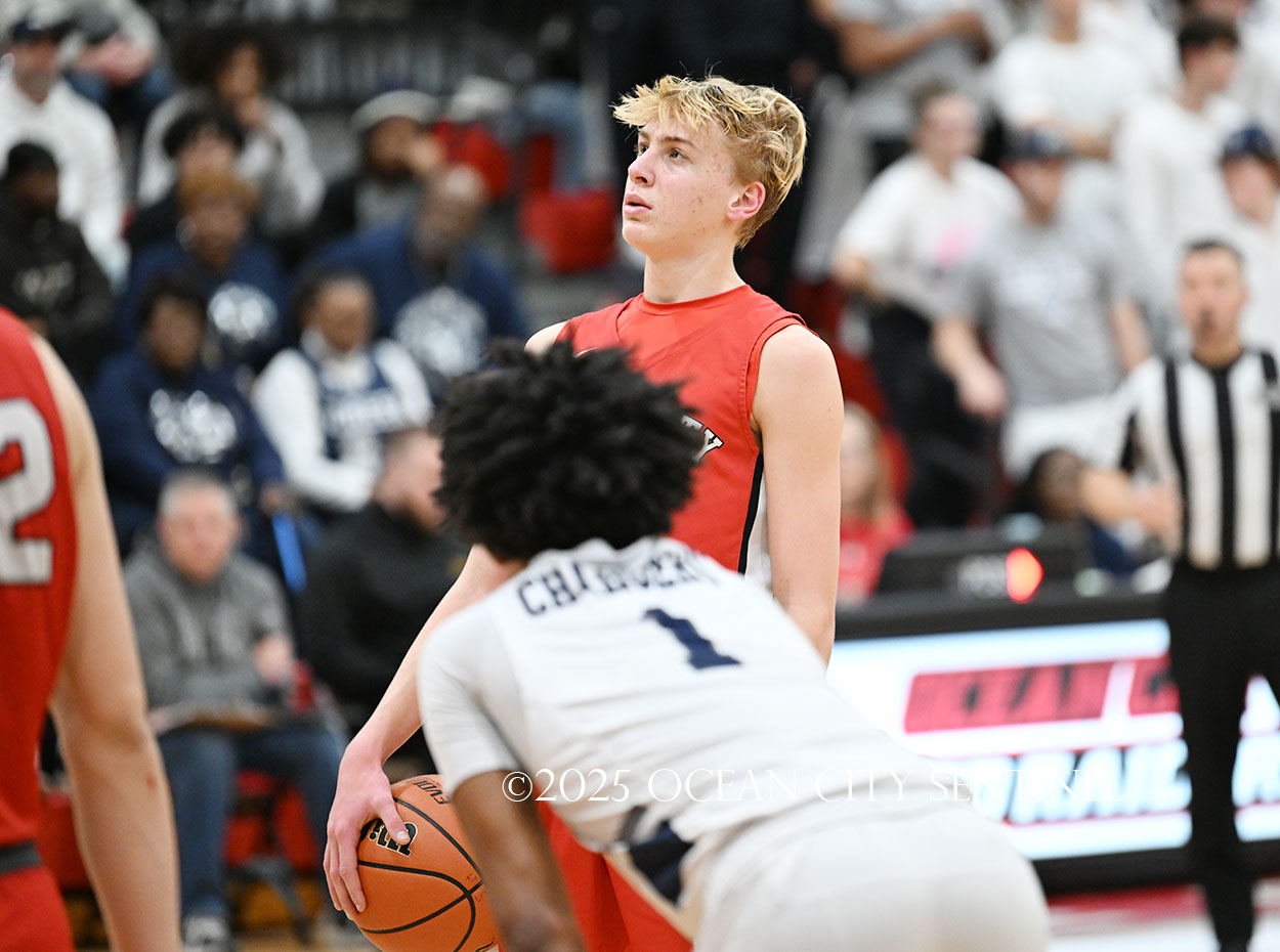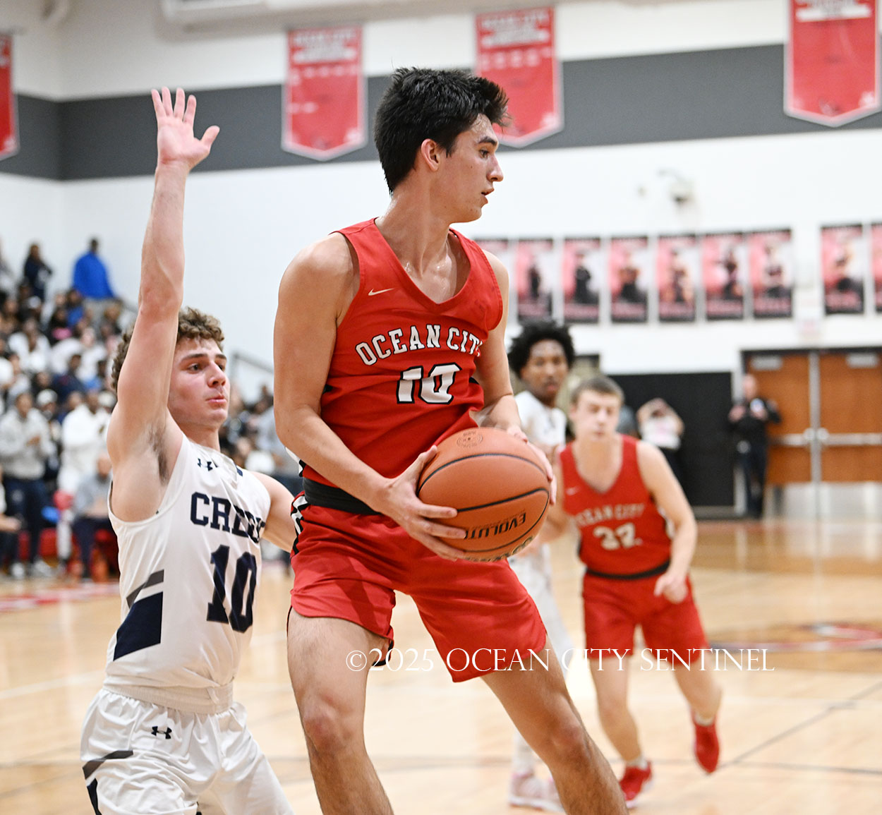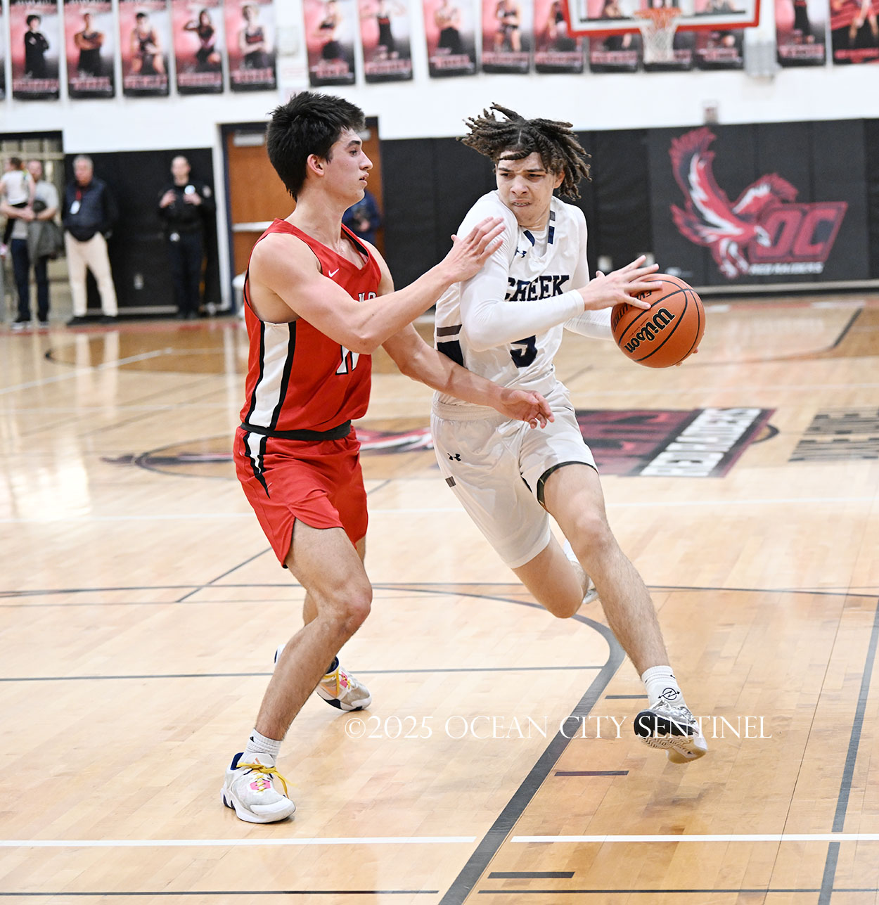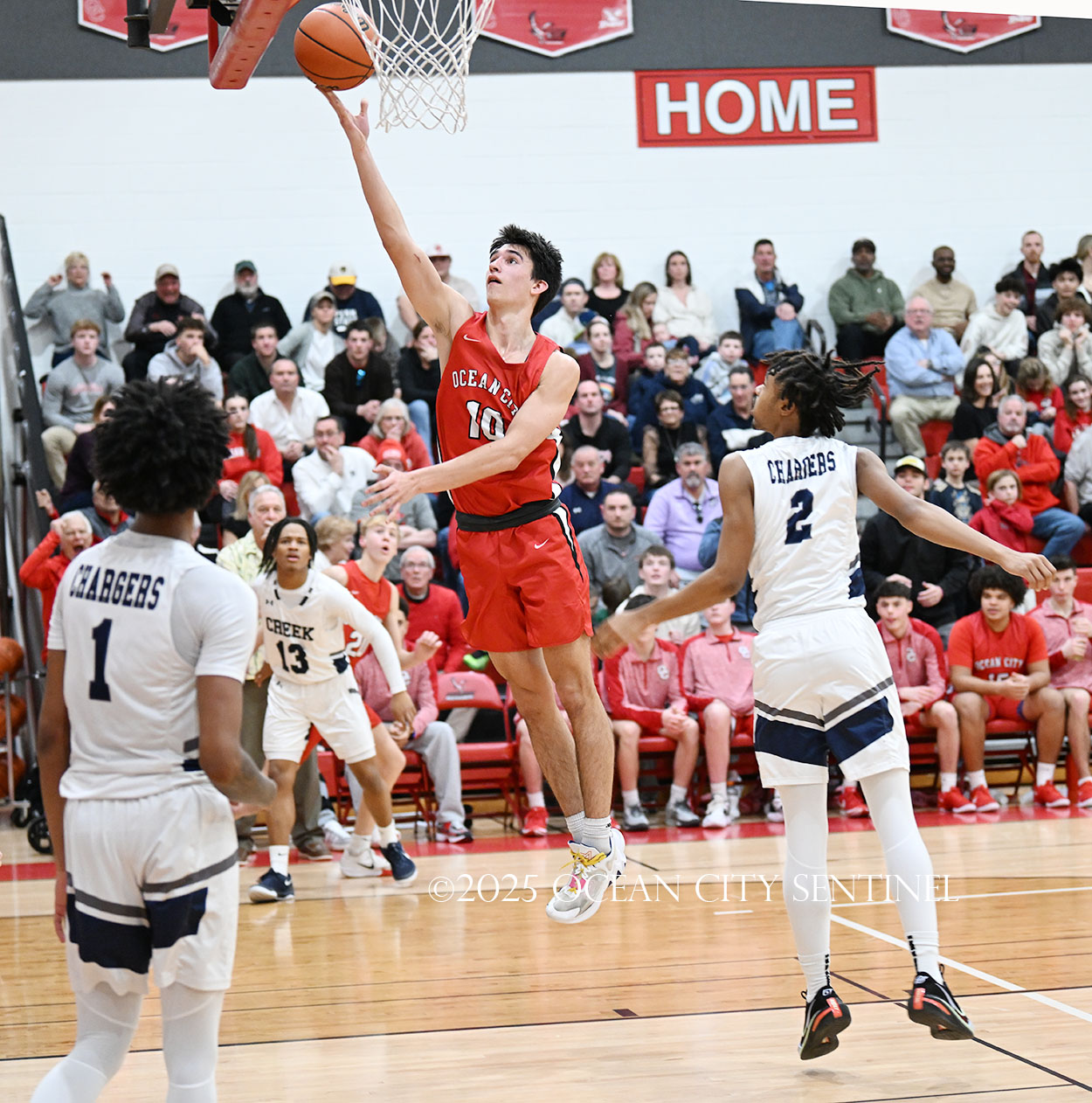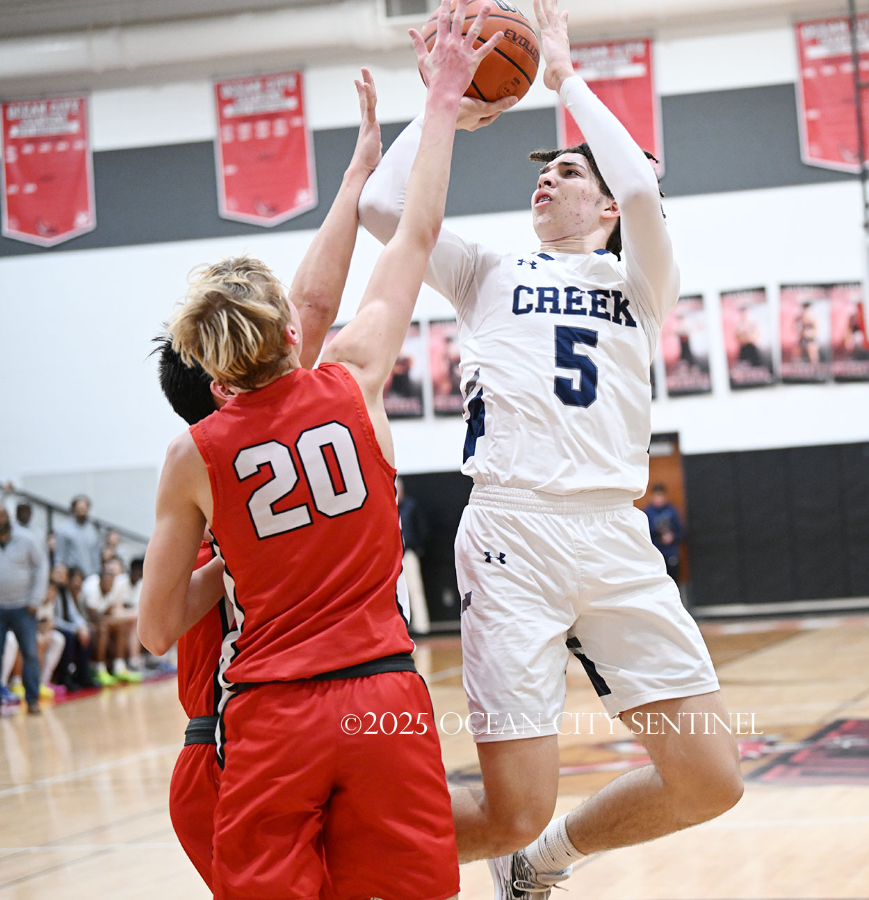 Four foul shots by Tjourmakaris and a three-pointer by Leon Brown helped put Ocean City up 33-24 early in the third quarter, but Timber Creek responded to narrow it to 35-32 with under two minutes to go. Lenko hit a trey with another score by the visitors for a four-point, 38-34 lead heading into the fourth quarter.