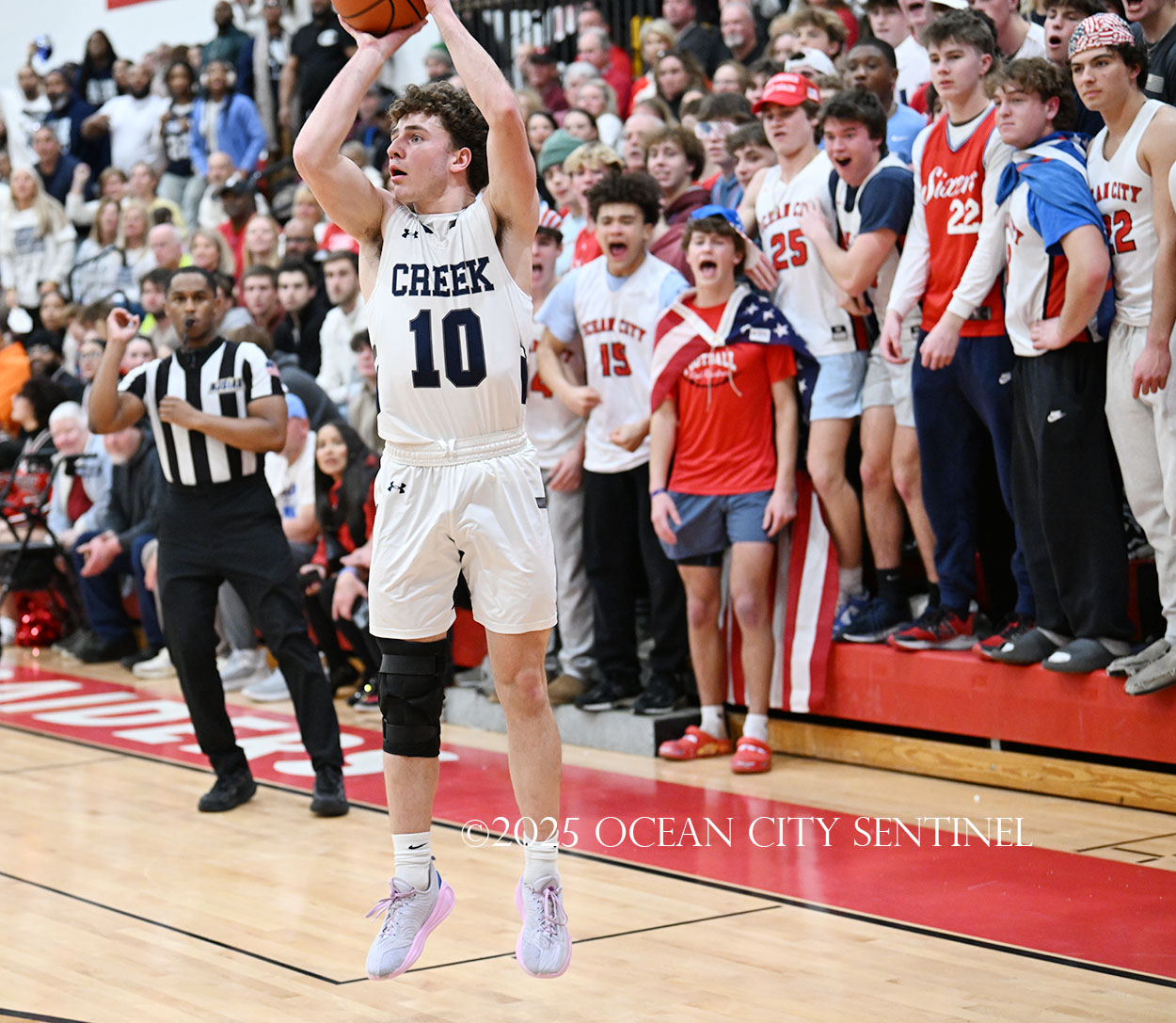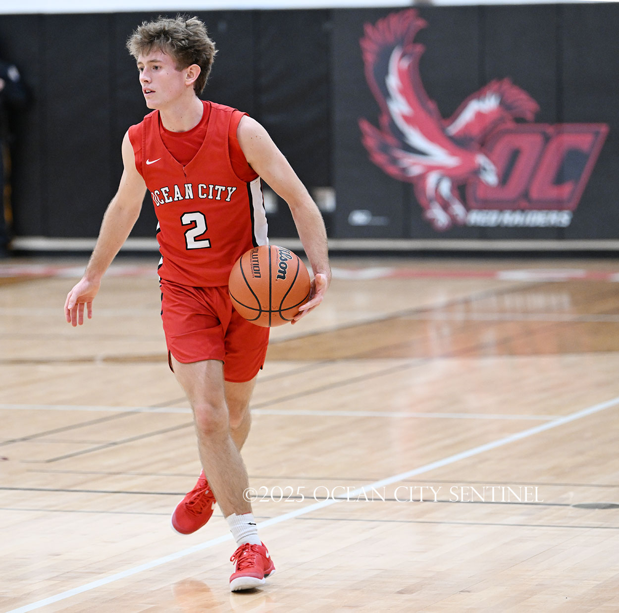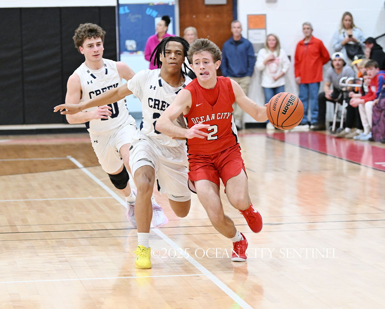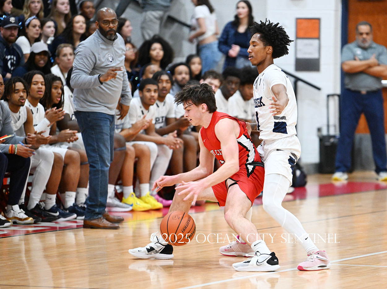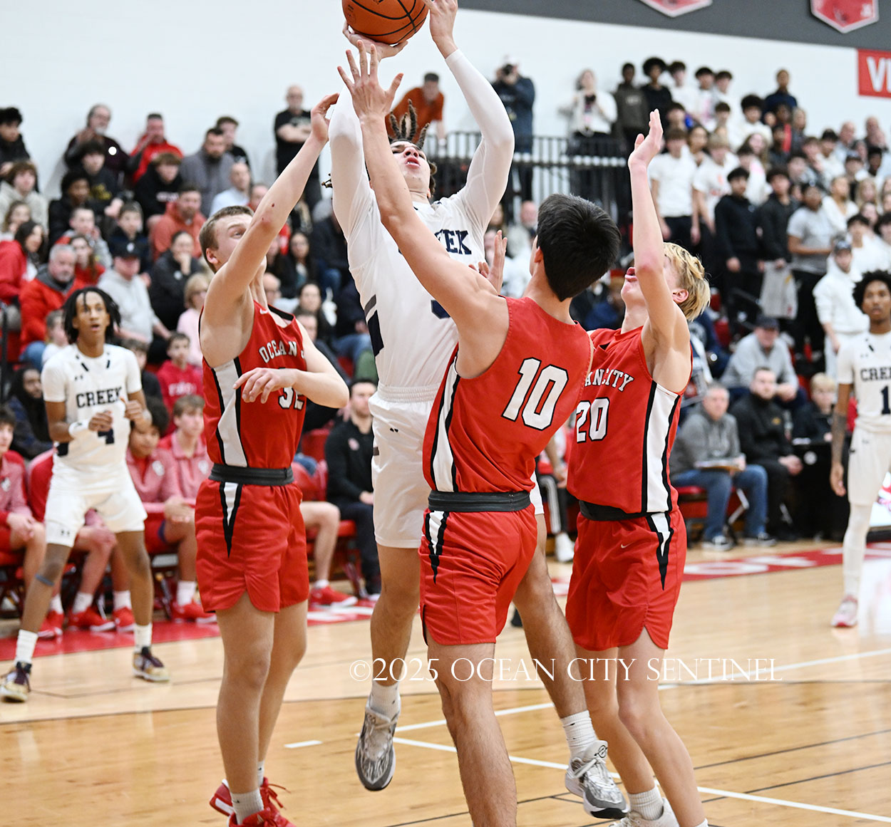 Four foul shots by Tjourmakaris and a three-pointer by Leon Brown helped put Ocean City up 33-24 early in the third quarter, but Timber Creek responded to narrow it to 35-32 with under two minutes to go. Lenko hit a trey with another score by the visitors for a four-point, 38-34 lead heading into the fourth quarter.
