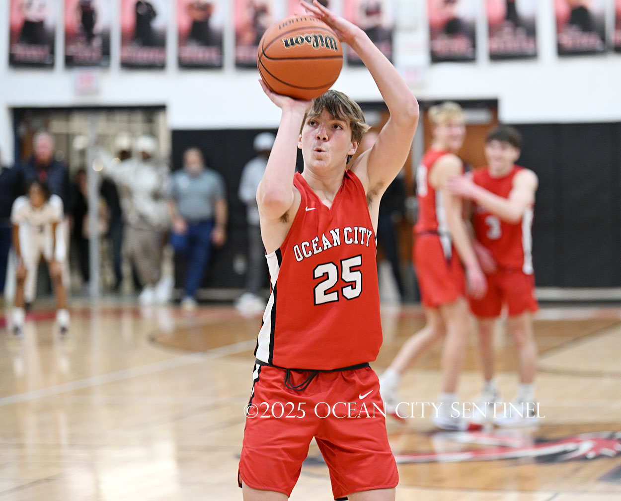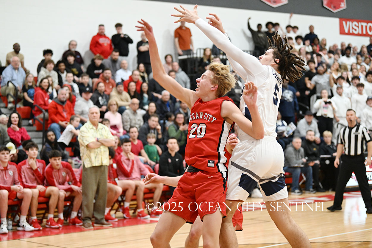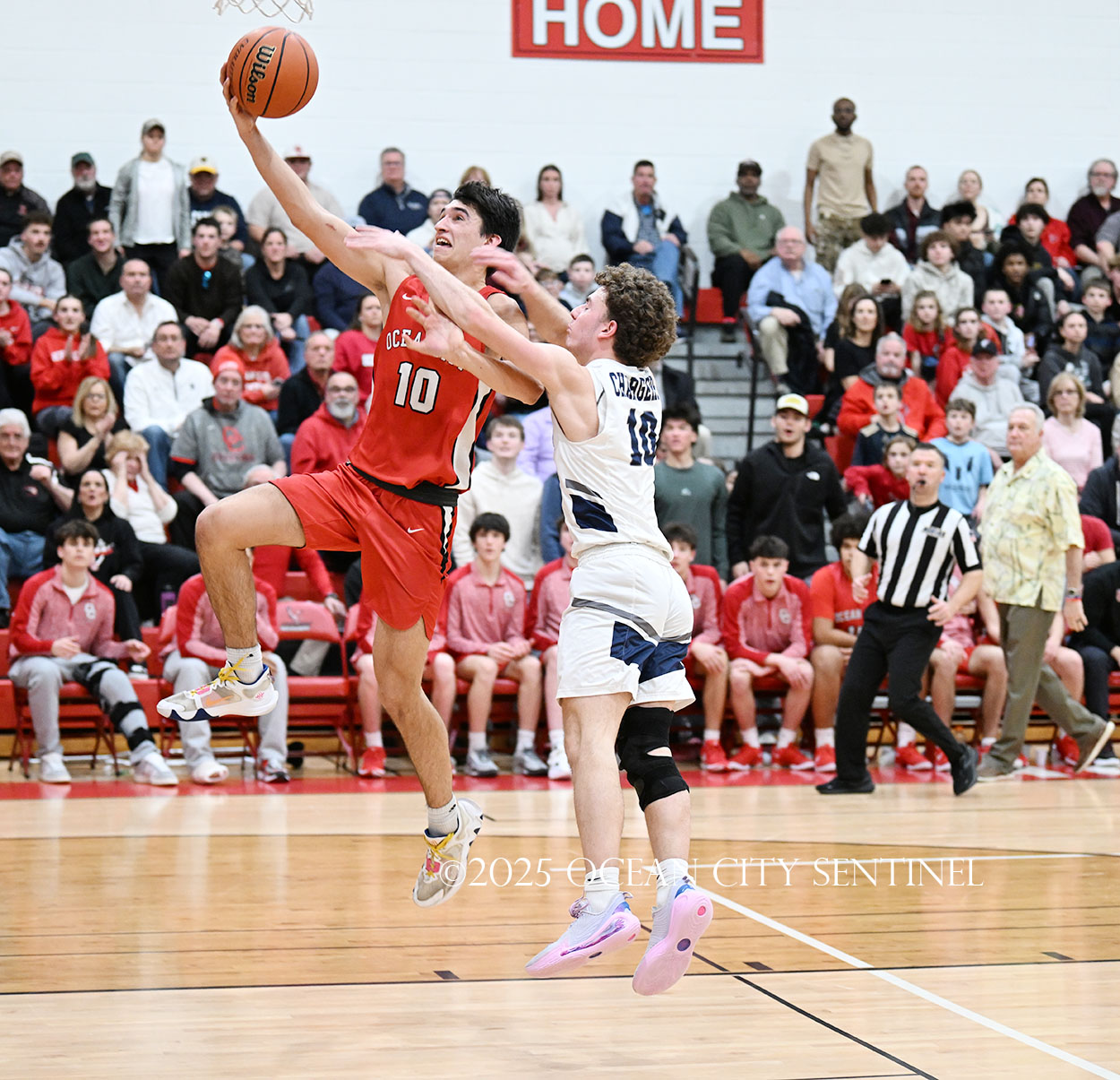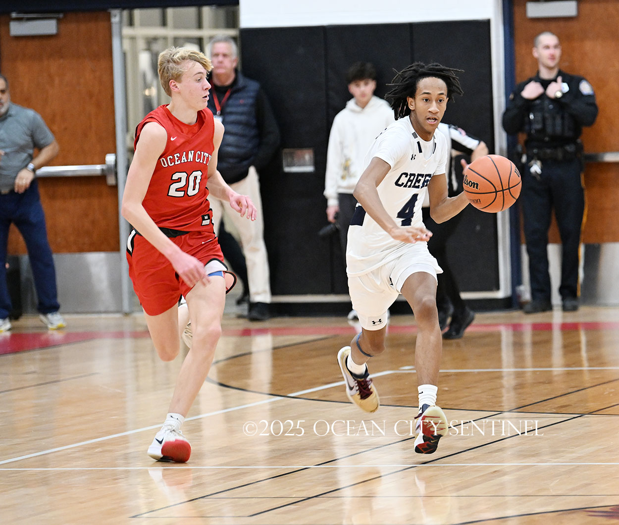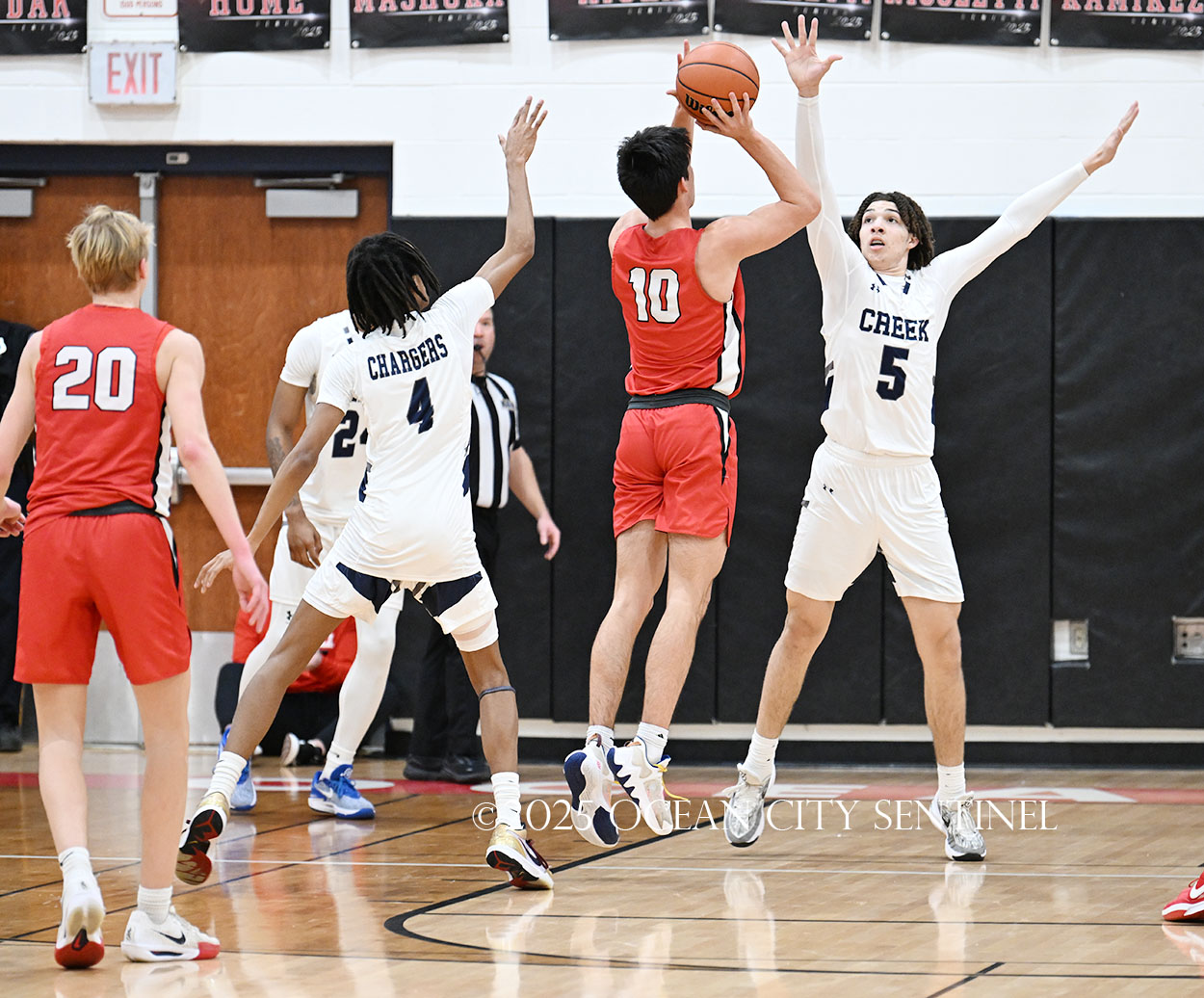 Four foul shots by Tjourmakaris and a three-pointer by Leon Brown helped put Ocean City up 33-24 early in the third quarter, but Timber Creek responded to narrow it to 35-32 with under two minutes to go. Lenko hit a trey with another score by the visitors for a four-point, 38-34 lead heading into the fourth quarter.