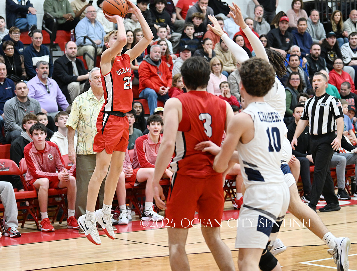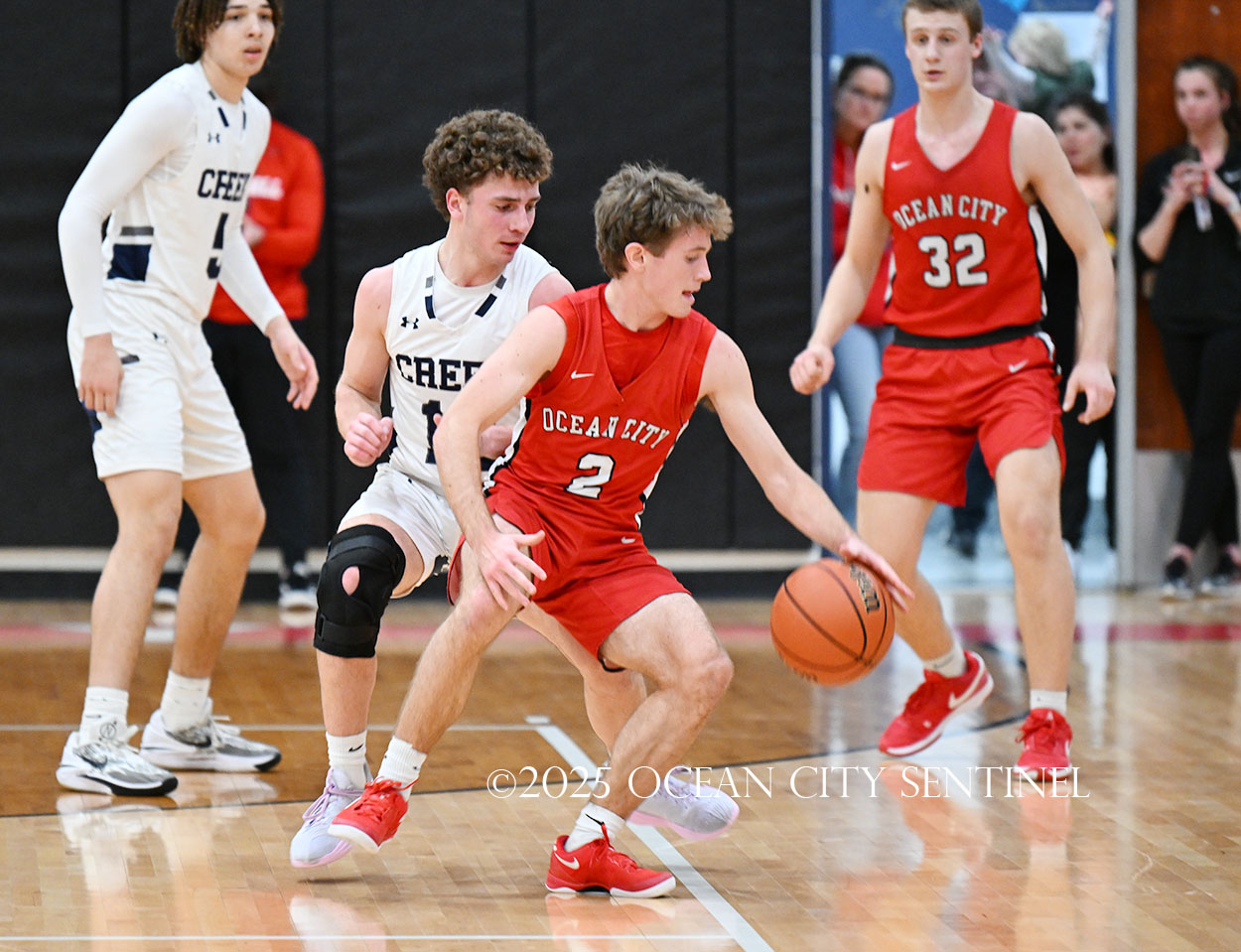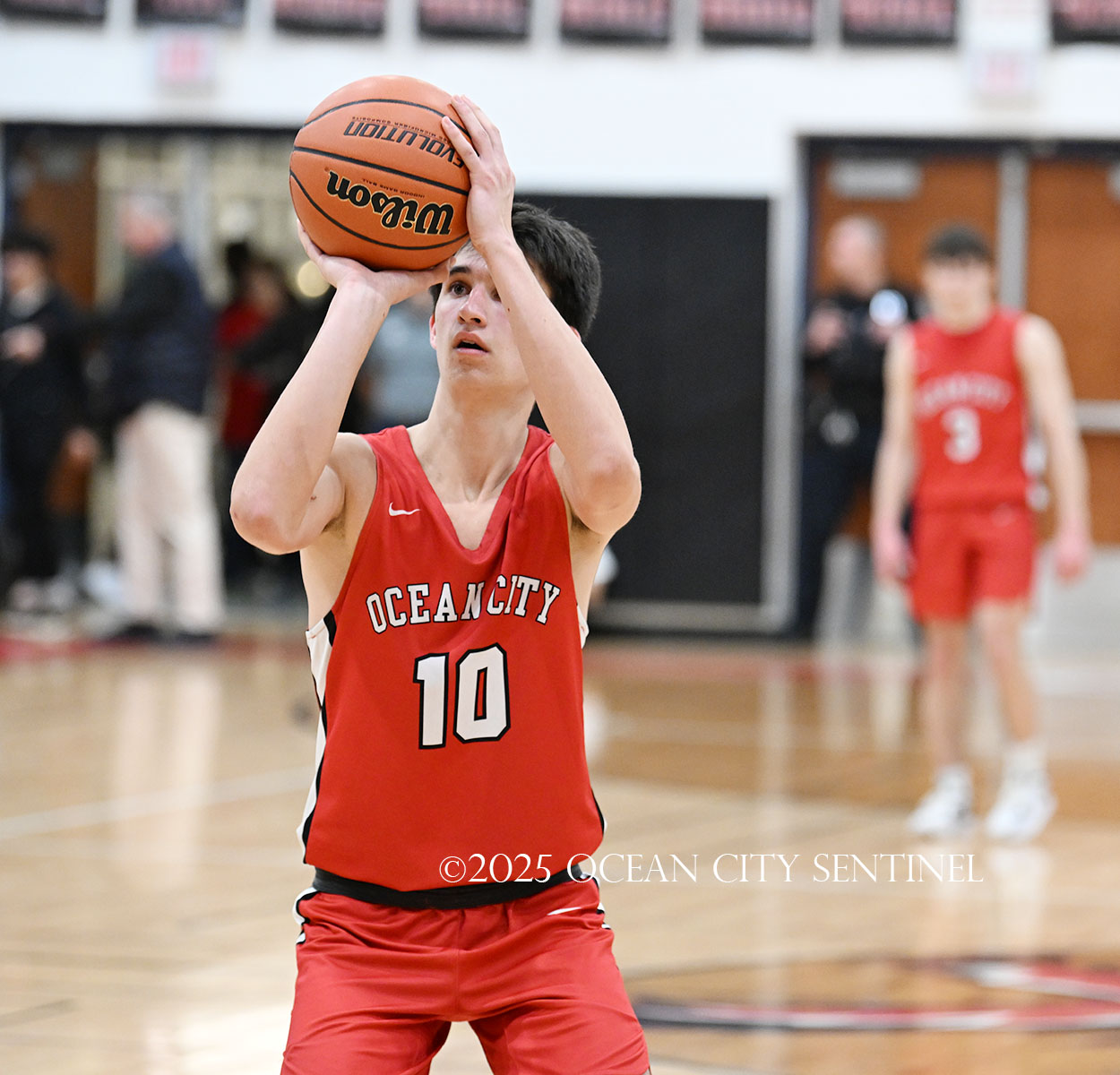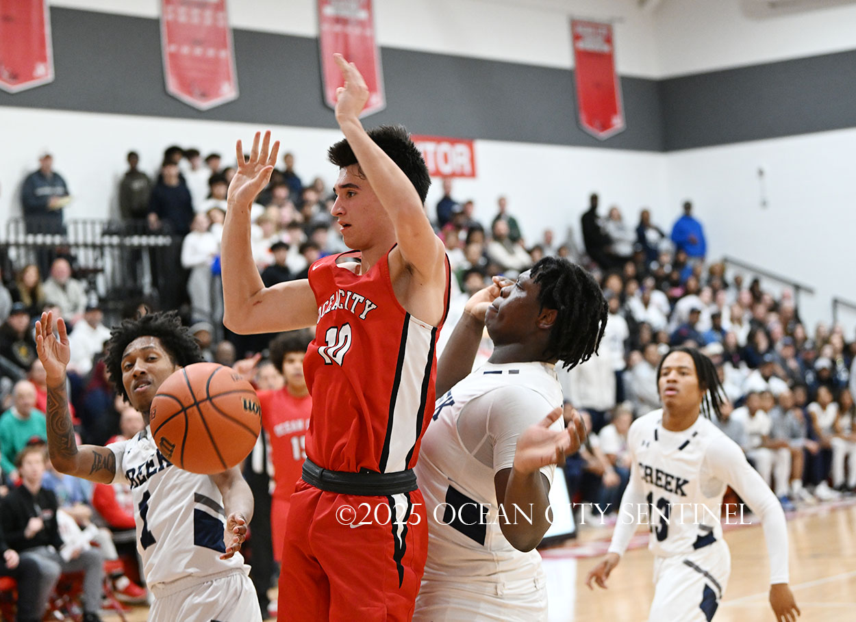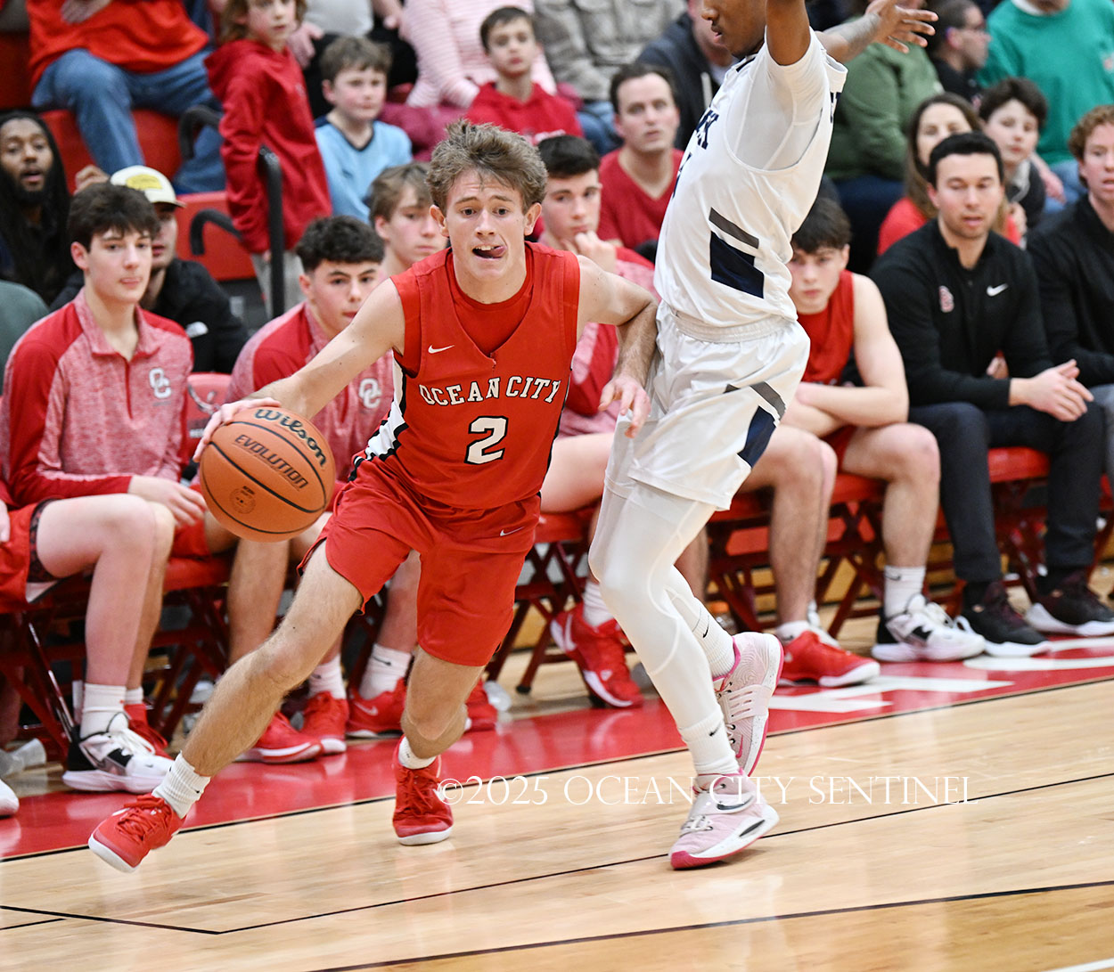 Four foul shots by Tjourmakaris and a three-pointer by Leon Brown helped put Ocean City up 33-24 early in the third quarter, but Timber Creek responded to narrow it to 35-32 with under two minutes to go. Lenko hit a trey with another score by the visitors for a four-point, 38-34 lead heading into the fourth quarter.