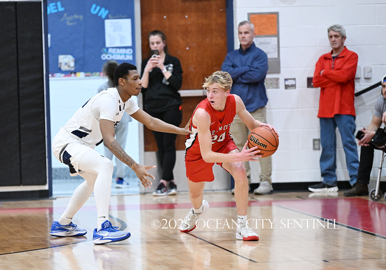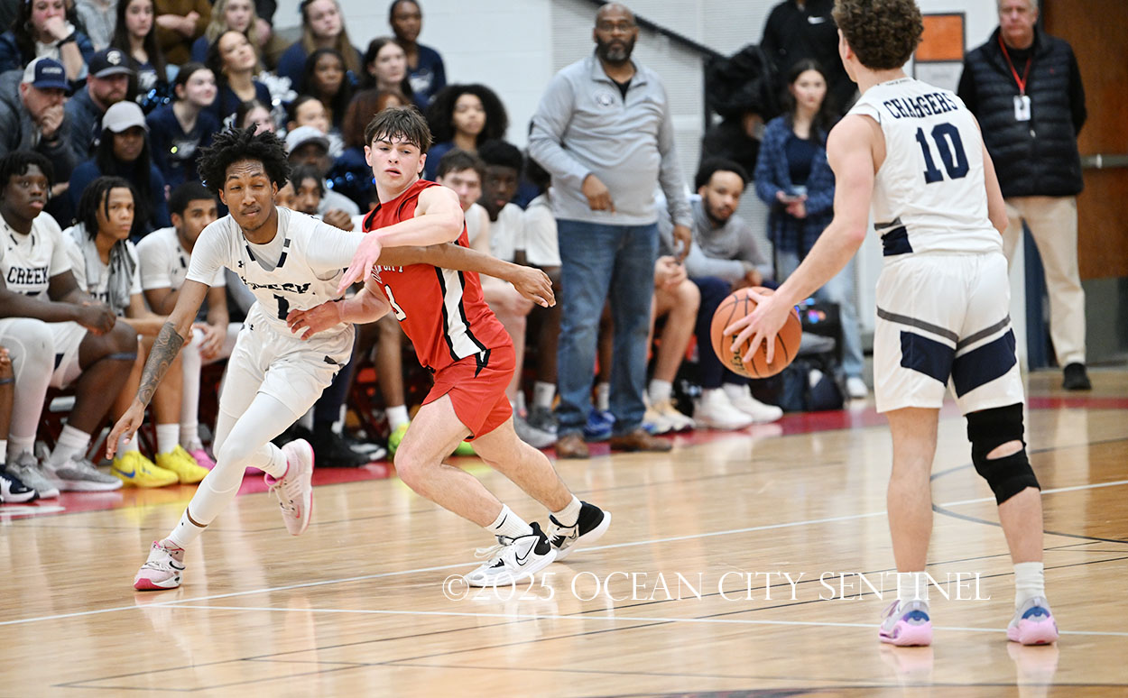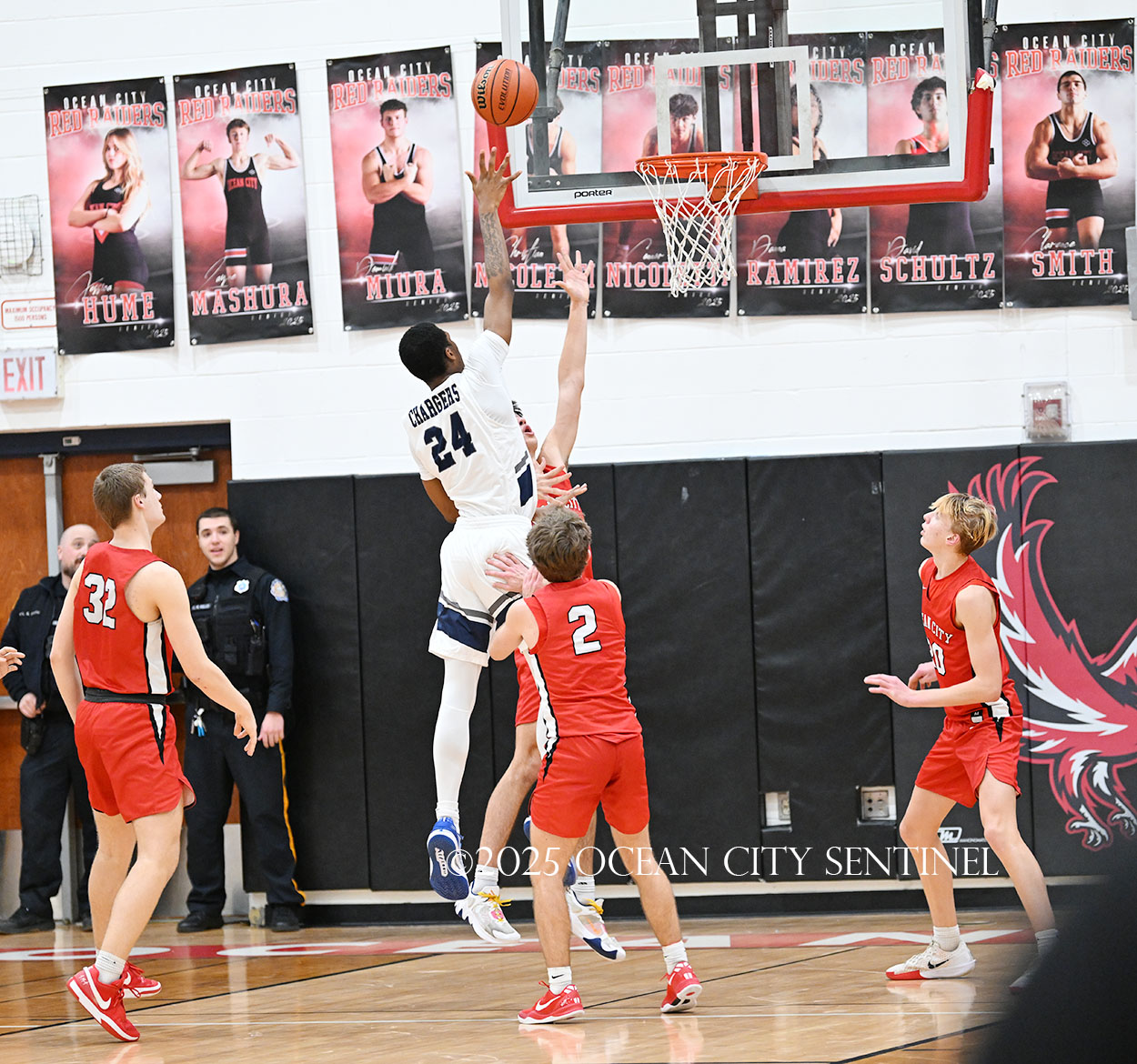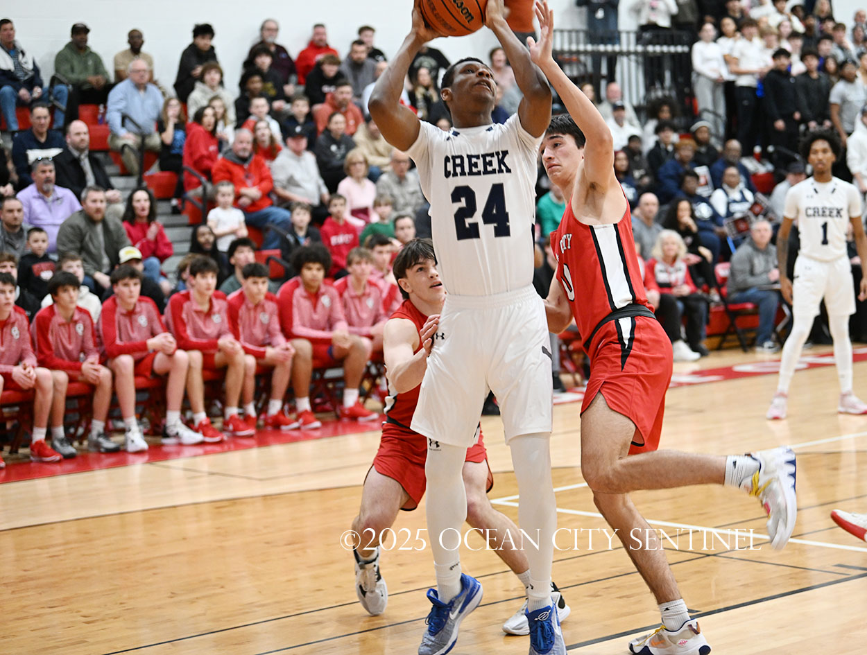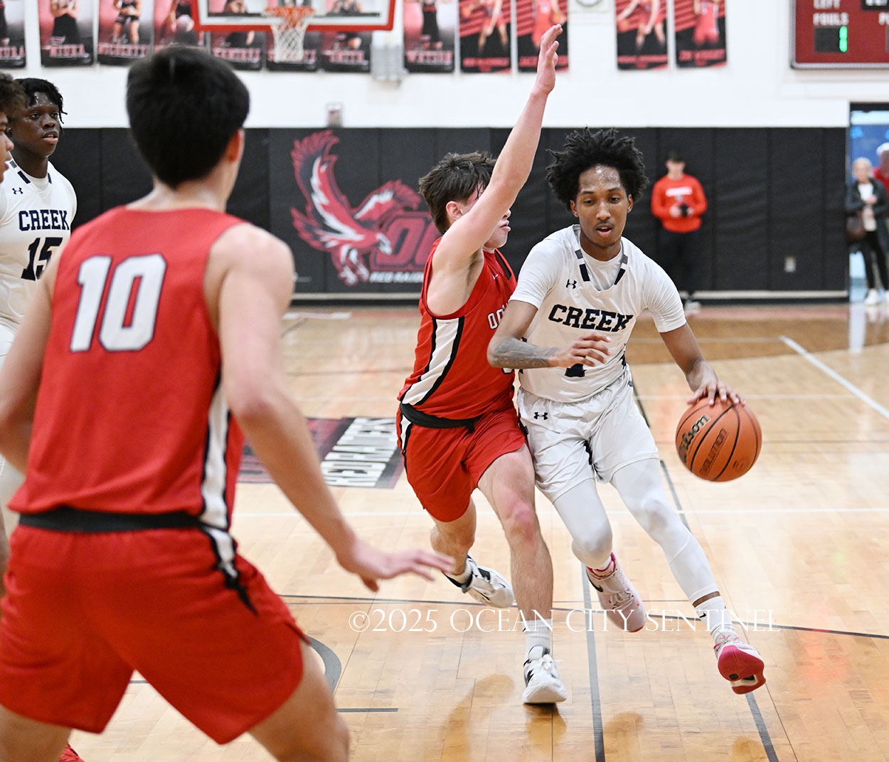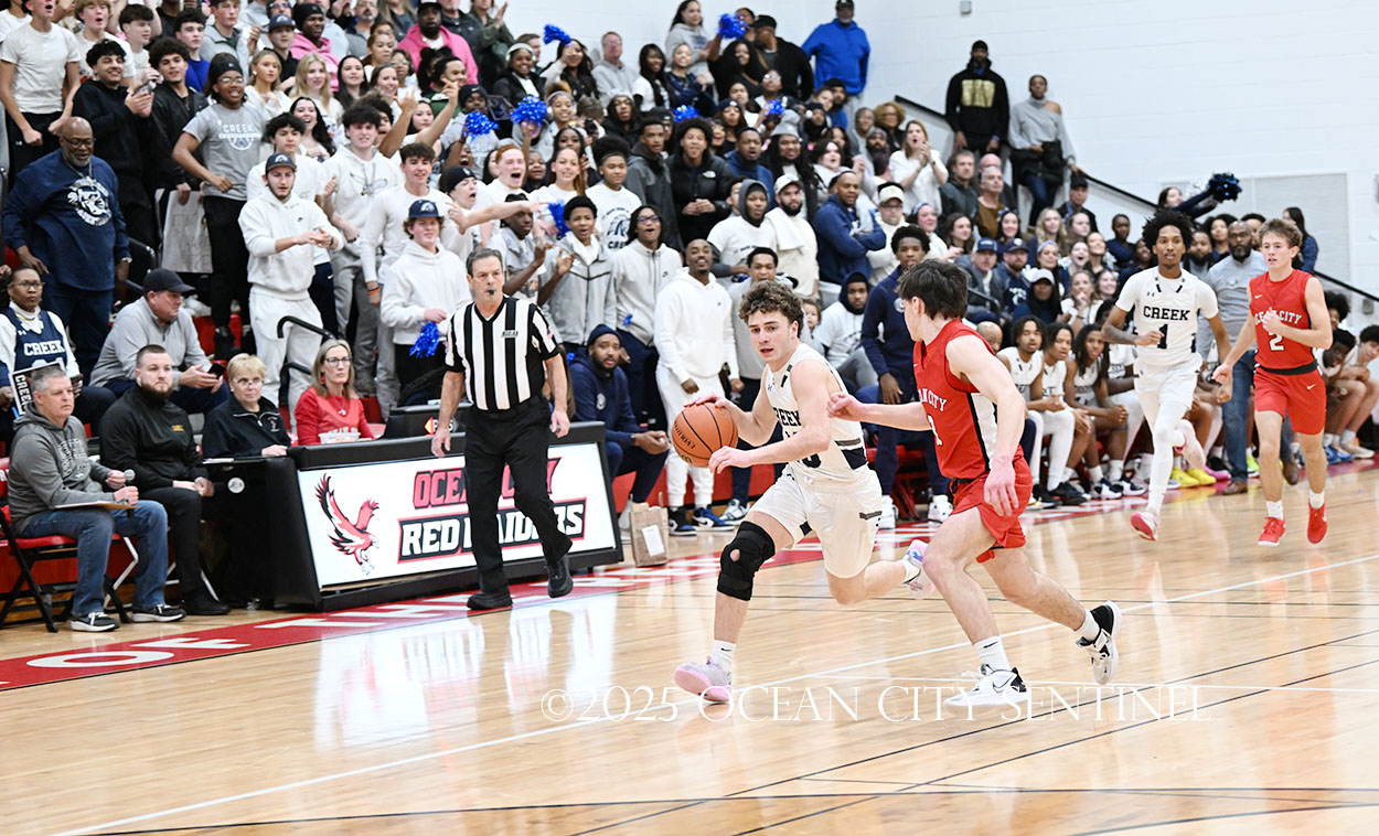 Four foul shots by Tjourmakaris and a three-pointer by Leon Brown helped put Ocean City up 33-24 early in the third quarter, but Timber Creek responded to narrow it to 35-32 with under two minutes to go. Lenko hit a trey with another score by the visitors for a four-point, 38-34 lead heading into the fourth quarter.