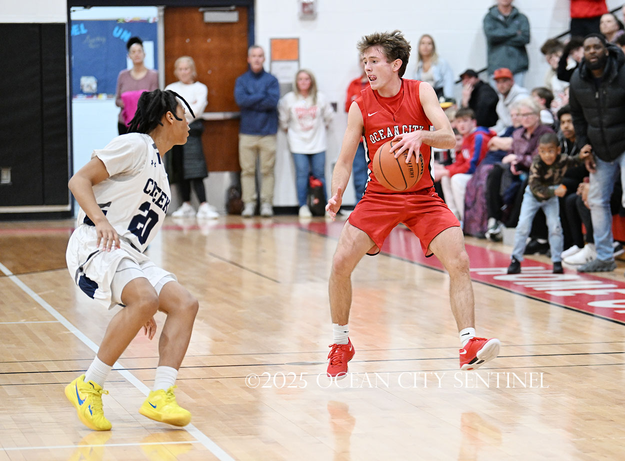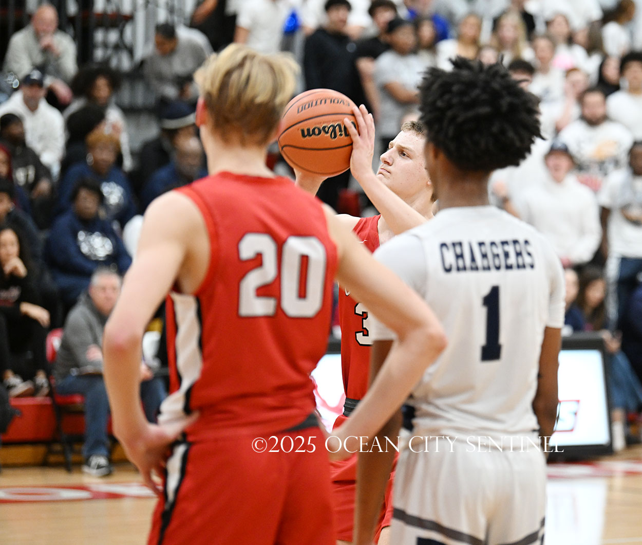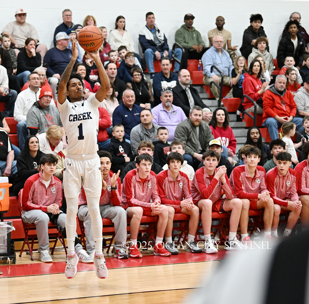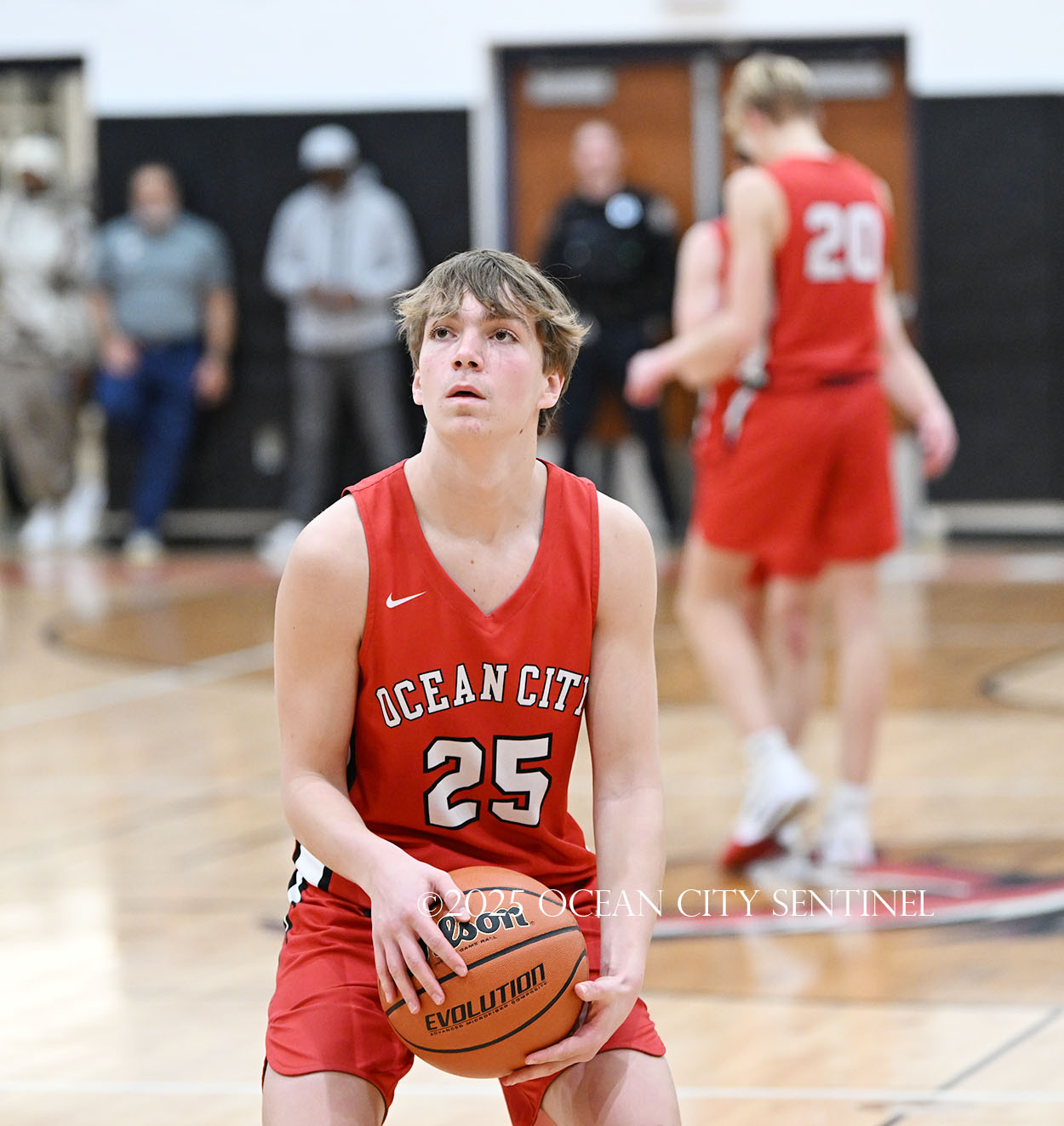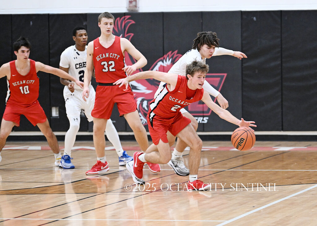 Four foul shots by Tjourmakaris and a three-pointer by Leon Brown helped put Ocean City up 33-24 early in the third quarter, but Timber Creek responded to narrow it to 35-32 with under two minutes to go. Lenko hit a trey with another score by the visitors for a four-point, 38-34 lead heading into the fourth quarter.